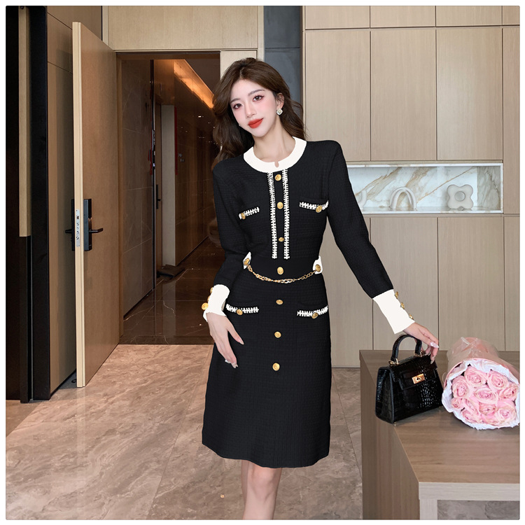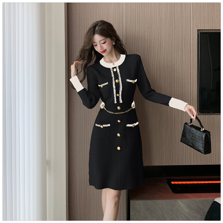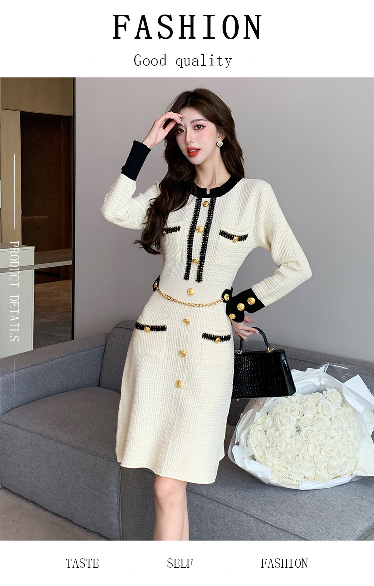 Chiếc đầm dệt kim này có thiết kế ôm dáng, tôn lên những đường nét cơ thể. Với cổ tròn và hàng cúc cài tinh tế phía trước, đầm toát lên vẻ thanh lịch và hiện đại. Chất vải dệt kim mềm mại, co giãn nhẹ, mang lại cảm giác dễ chịu khi mặc. Bạn có thể kết hợp cùng giày cao gót hoặc giày đế bằng để đi làm, dự tiệc hoặc tạo nên những bộ trang phục hàng ngày ấn tượng. | Tên sản phẩm: Váy Đầm Liền Thân Nữ Áo Len Dài Tay Hàng Mùa Xuân Thu Đông - Thời Trang Nữ | Mã sản phẩm: a7218 - Giá: 820.000đ | Mã nhà sản xuất: ZHOUT-G03Hình ảnh sản phẩm