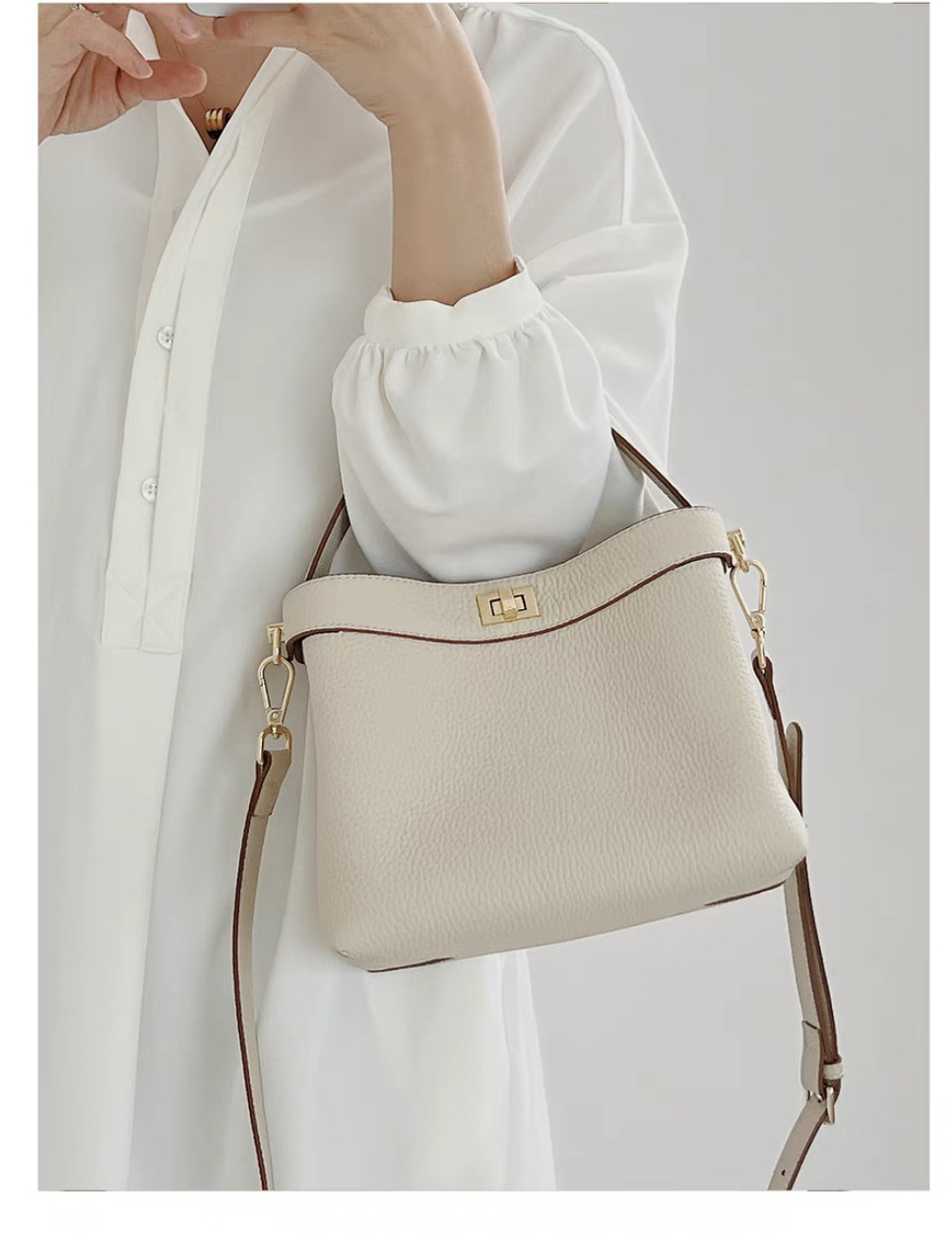 Túi đeo chéo dáng thùng dành cho nữ, thiết kế mới cho mùa hè năm 2024. Kiểu dáng đơn giản, dễ phối đồ với nhiều trang phục khác nhau. Chất túi có họa tiết vân mịn tạo điểm nhấn tinh tế, phù hợp cho việc sử dụng hàng ngày hoặc khi đi làm. Có thể đeo chéo một cách thoải mái, đựng vừa các vật dụng cá nhân cần thiết như ví, điện thoại và một số đồ dùng nhỏ. | Tên sản phẩm: Túi Xách Nữ Hàng Mùa Hè - Túi Ví Nữ | Mã sản phẩm: A7223 - Giá: 1.350.000đ | Mã nhà sản xuất: GUDEA-G04Hình ảnh sản phẩm