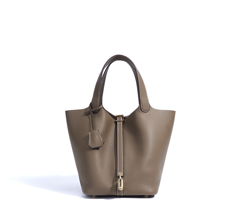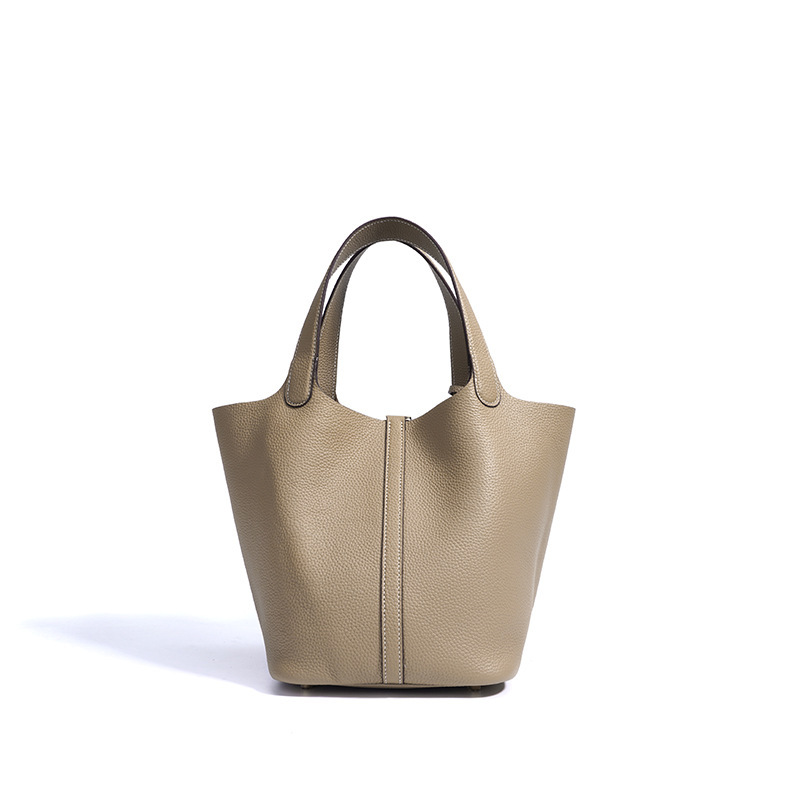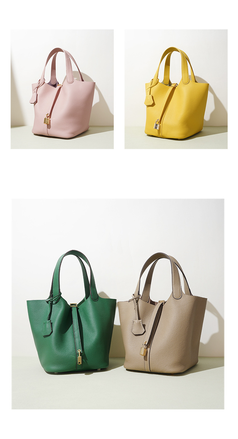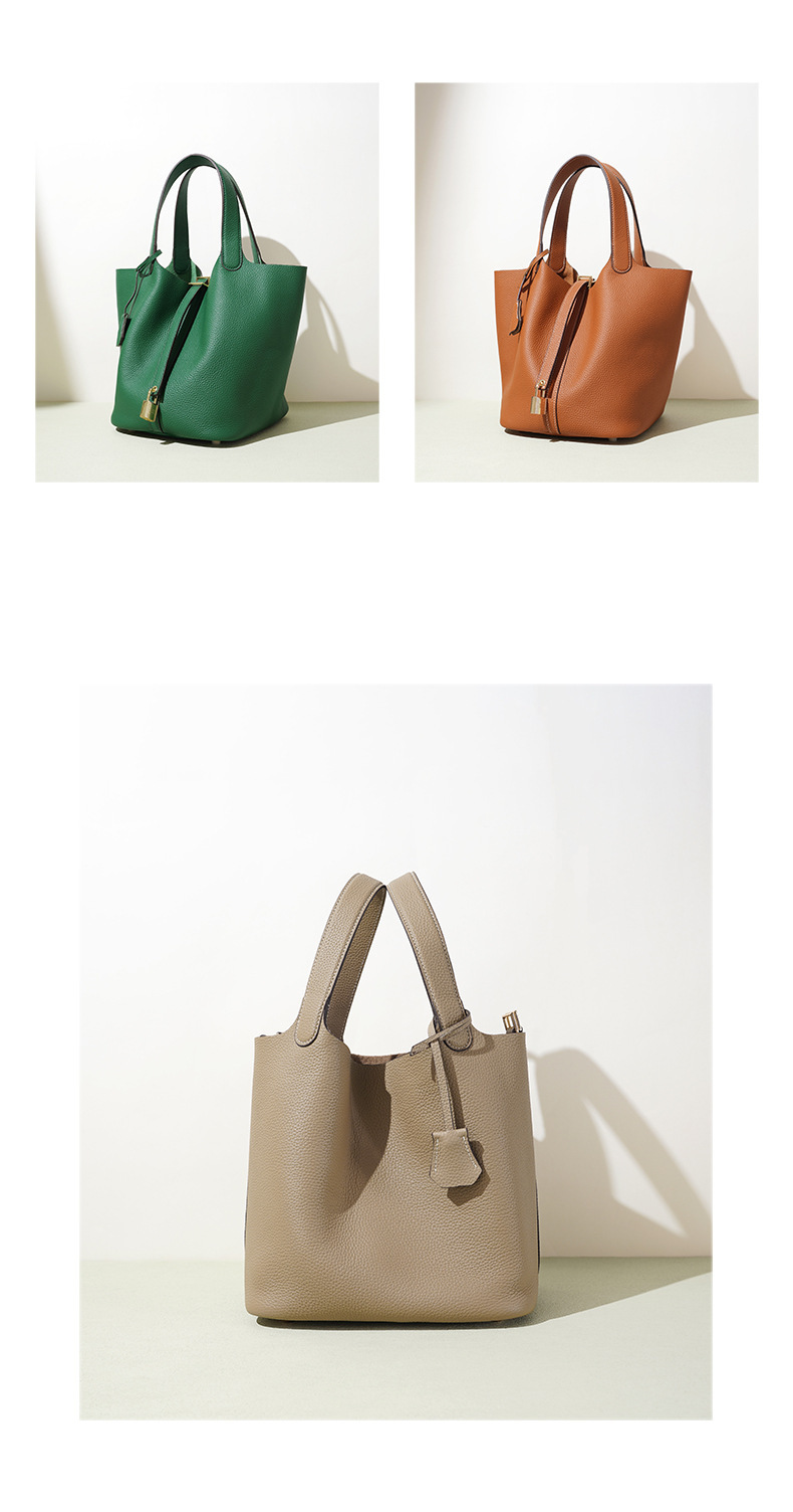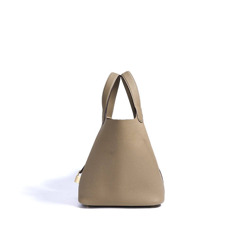 Túi xách tay kiểu dáng giỏ đi chợ, được làm từ chất liệu da thật, mang đến cảm giác mềm mại và bền bỉ. Thiết kế thùng tròn độc đáo kết hợp với phong cách đơn giản, dễ dàng phối hợp với nhiều trang phục khác nhau. Đây là người bạn đồng hành lý tưởng cho những buổi đi làm hay dạo phố. Bạn có thể đeo trên tay hoặc khoác dưới cánh tay một cách thoải mái. Màu sắc trang nhã phù hợp để sử dụng hàng ngày. | Tên sản phẩm: Túi Xách Nữ Chất Liệu Da Bò - Túi Ví Nữ | Mã sản phẩm: A7235 - Giá: 1.180.000đ | Mã nhà sản xuất: GUDEA-G04Hình ảnh sản phẩm