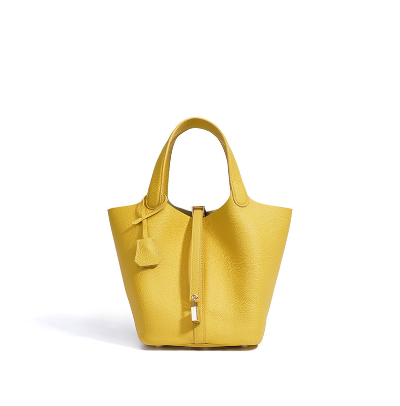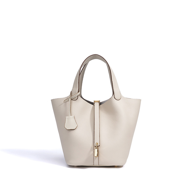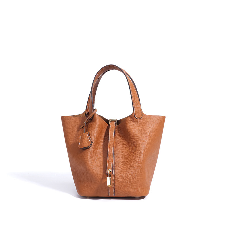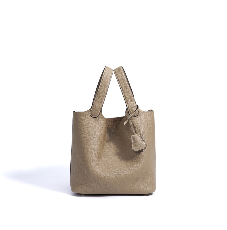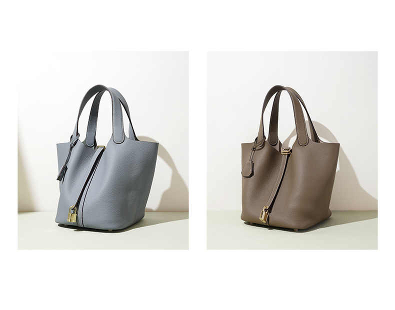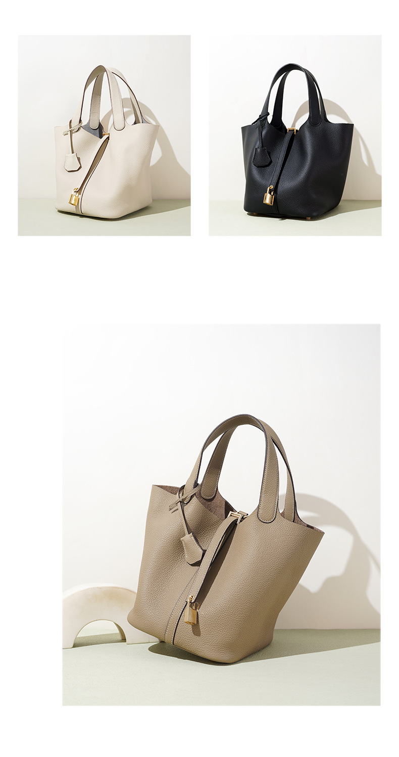 Túi xách tay kiểu dáng giỏ đi chợ, được làm từ chất liệu da thật, mang đến cảm giác mềm mại và bền bỉ. Thiết kế thùng tròn độc đáo kết hợp với phong cách đơn giản, dễ dàng phối hợp với nhiều trang phục khác nhau. Đây là người bạn đồng hành lý tưởng cho những buổi đi làm hay dạo phố. Bạn có thể đeo trên tay hoặc khoác dưới cánh tay một cách thoải mái. Màu sắc trang nhã phù hợp để sử dụng hàng ngày. | Tên sản phẩm: Túi Xách Nữ Chất Liệu Da Bò - Túi Ví Nữ | Mã sản phẩm: A7235 - Giá: 1.180.000đ | Mã nhà sản xuất: GUDEA-G04Hình ảnh sản phẩm