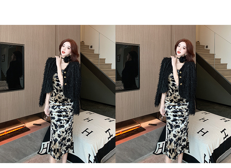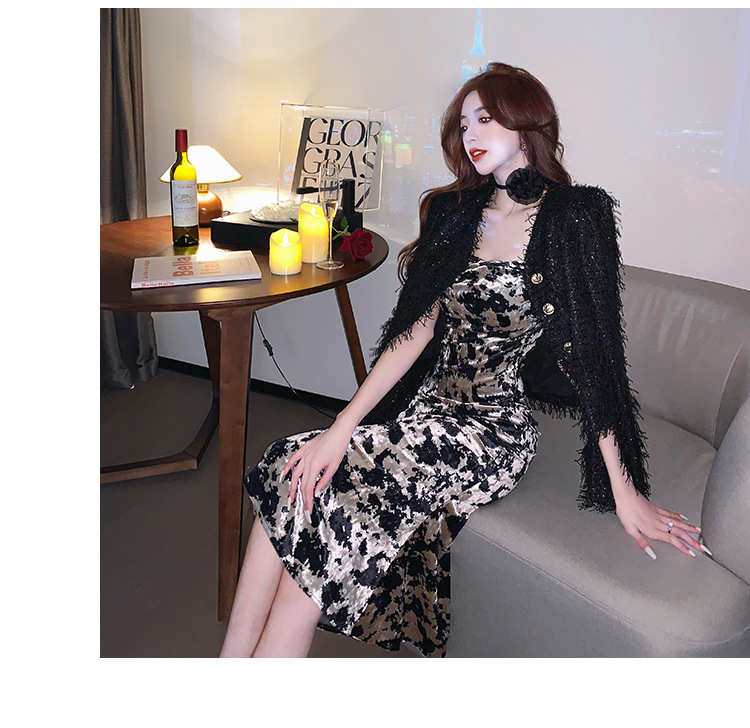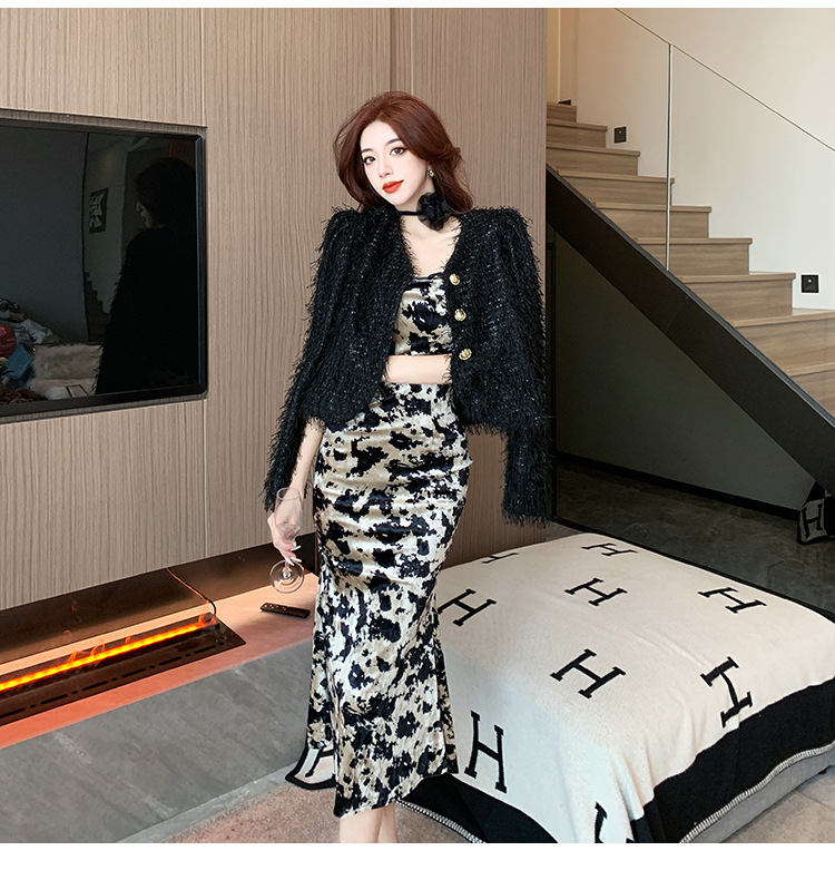 Bộ trang phục hai mảnh này gồm áo khoác kiểu dáng thanh lịch và chân váy dáng đuôi cá họa tiết da thú. Áo khoác có form dáng ôn hòa, phù hợp mặc trong tiết trời thu đông. Chân váy thiết kế xòe nhẹ ở phần gấu, tôn lên nét duyên dáng cho người mặc. Có thể phối cùng áo thun hoặc áo len bên trong để tạo nên những bộ trang phục đa dạng, phù hợp cho nhiều hoàn cảnh sử dụng. | Tên sản phẩm: Áo Khoác Nữ Cả Bộ 2 Món Kiểu Đuôi Cá Hàng Mùa Xuân Thu Đông - Thời Trang Nữ | Mã sản phẩm: a7277 - Giá: 610.000đ | Mã nhà sản xuất: ZHOUT-G02Hình ảnh sản phẩm