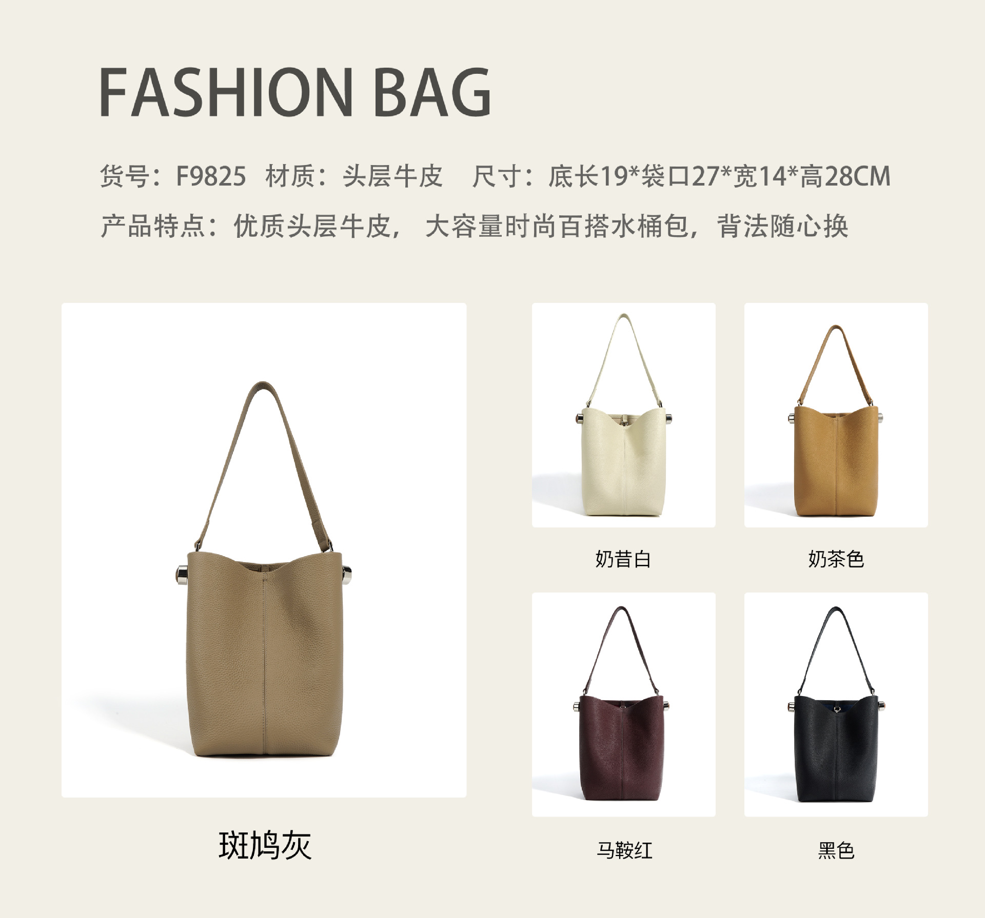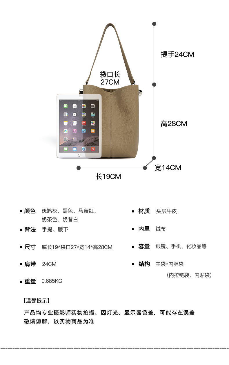 Túi xách kiểu thùng nước, thiết kế đơn giản và dễ phối đồ. Chất liệu từ lớp da bò thật đầu tiên, bền đẹp và mềm mại theo thời gian. Ngăn chứa rộng rãi, dễ dàng đựng vừa máy tính bảng cùng các vật dụng cá nhân cần thiết cho công việc hằng ngày. Có thể mang trên v một cách thoải mái, rất phù hợp cho việc di chuyển và sử dụng mỗi ngày. | Tên sản phẩm: Túi Đeo Vai Nữ Chất Liệu Da Bò - Túi Ví Nữ | Mã sản phẩm: A7283 - Giá: 1.590.000đ | Mã nhà sản xuất: GUDEA-G04Hình ảnh sản phẩm