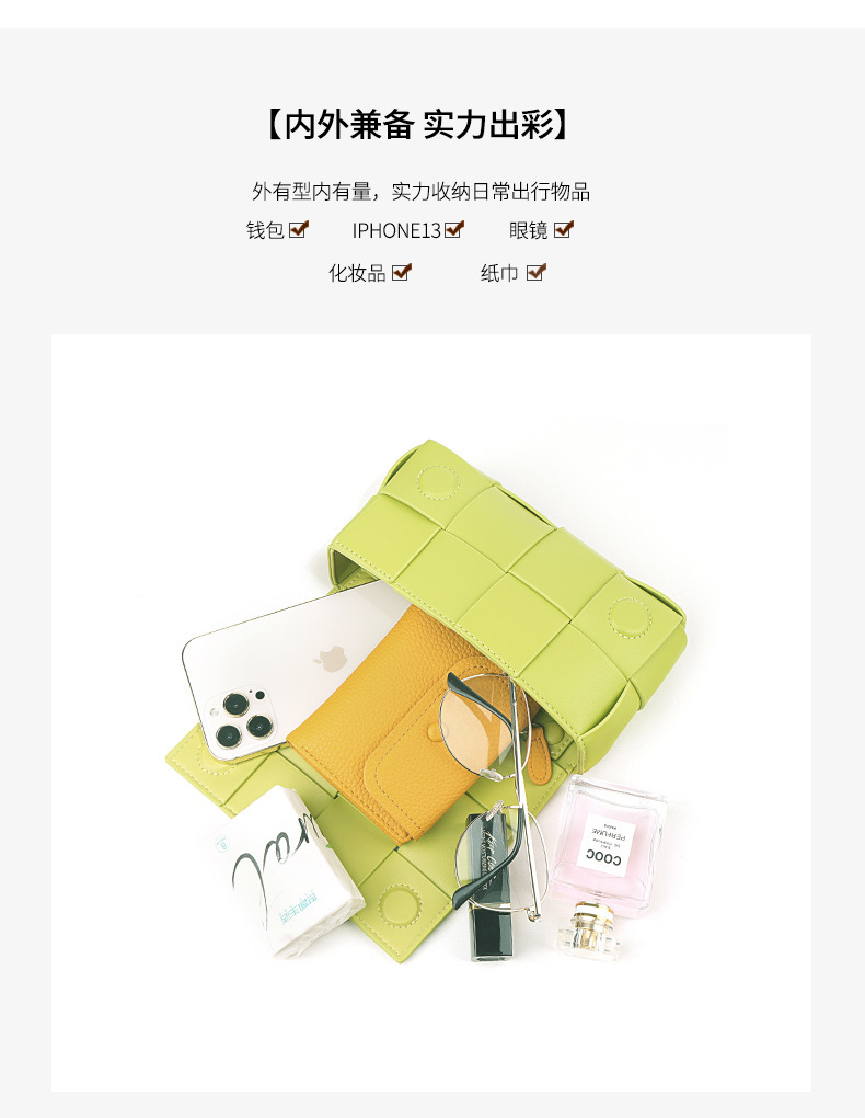 Chiếc túi nhỏ vuông vức này có nhiều kiểu dệt da mềm mại kết hợp tinh tế. Kiểu dáng như một chiếc gối nhỏ xinh xắn, mang phong cách trẻ trung và hiện đại. Túi có dây đeo chéo điều chỉnh được, dễ dàng mang trên v một cách thoải mái. Bạn có thể đựng vừa điện thoại, ví và một vài món đồ cá nhân bên trong. Phối cùng trang phục hàng ngày để tạo điểm nhấn vui tươi. | Tên sản phẩm: Túi Xách Nữ Chất Liệu Da Bò - Túi Ví Nữ | Mã sản phẩm: A7310 - Giá: 1.130.000đ | Mã nhà sản xuất: GUDEA-G04Hình ảnh sản phẩm