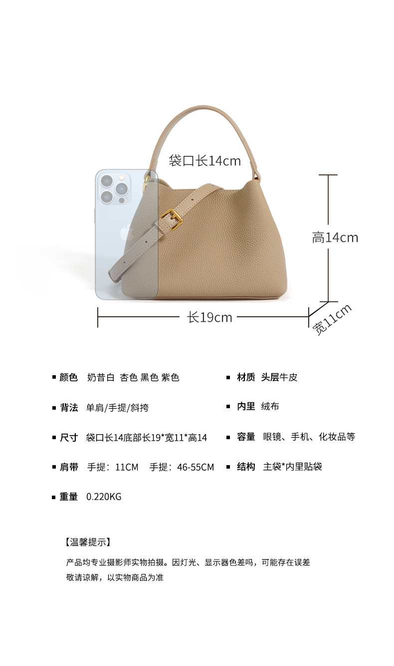 Chiếc túi xách kiểu giỏ đi chợ nhỏ gọn dành cho nữ, được làm từ chất da bò mềm mại tự nhiên. Thiết kế dáng tròn, thân túi mềm tạo cảm giác thoải mái. Bạn có thể xách tay bằng qu ngắn hoặc mang hằng ngày như túi đeo chéo với dây da dài. Màu sắc nhẹ nhàng như quả mơ chín, dễ dàng phối hợp với nhiều trang phục khác nhau. | Tên sản phẩm: Túi Xách Nữ Chất Liệu Da Bò - Túi Ví Nữ | Mã sản phẩm: A7326 - Giá: 1.140.000đ | Mã nhà sản xuất: GUDEA-G04Hình ảnh sản phẩm