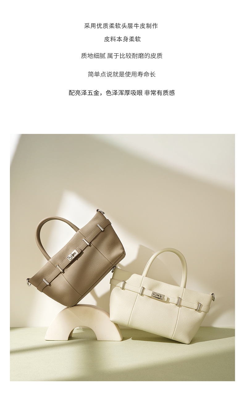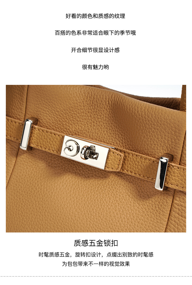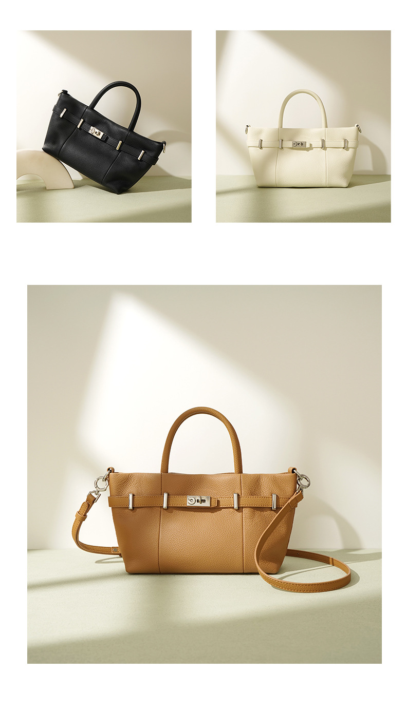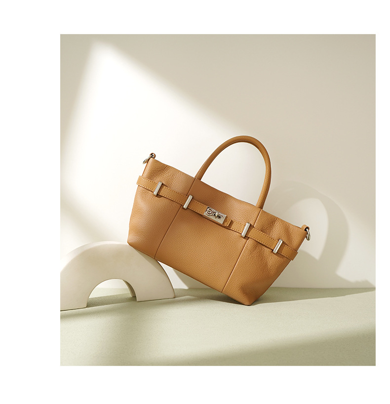 Túi xách tay kiểu dáng ngang, phù hợp cho việc đi làm hằng ngày. Chất liệu làm từ lớp da bò mềm mại bên ngoài, bề mặt có đường vân nhỏ giống như vỏ quả vải, tạo cảm giác dễ chịu khi cầm nắm. Bạn có thể đeo túi bằng cách xách tay, khoác v hoặc mang chéo người một cách linh hoạt. Thiết kế đơn giản, dễ dàng phối hợp với nhiều loại trang phục khác nhau, tiện lợi cho mọi hoạt động thường ngày. | Tên sản phẩm: Túi Xách Nữ Chất Liệu Da Bò - Túi Ví Nữ | Mã sản phẩm: A7347 - Giá: 1.400.000đ | Mã nhà sản xuất: GUDEA-G04Hình ảnh sản phẩm