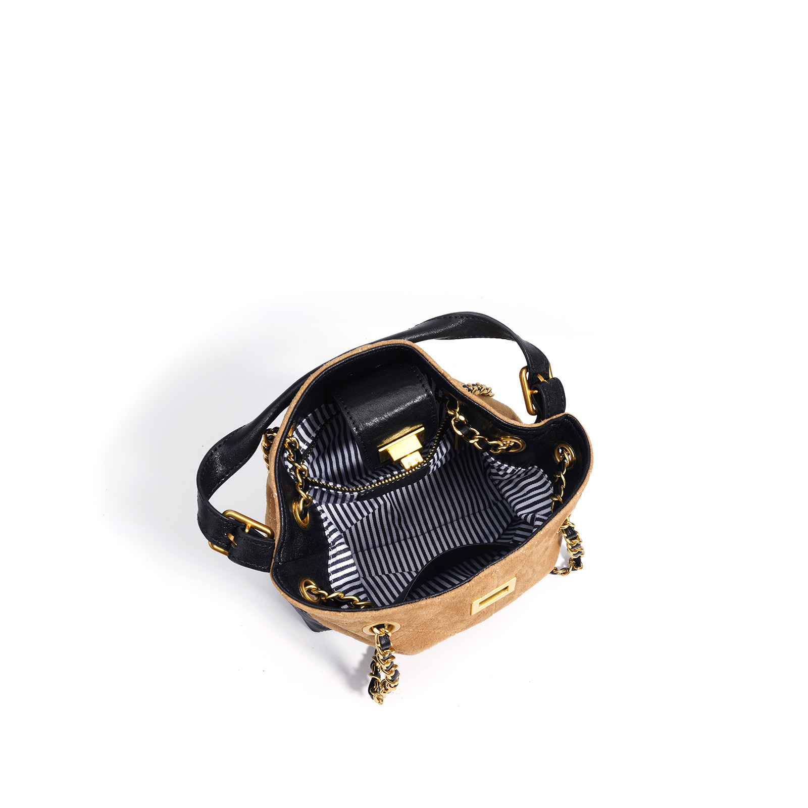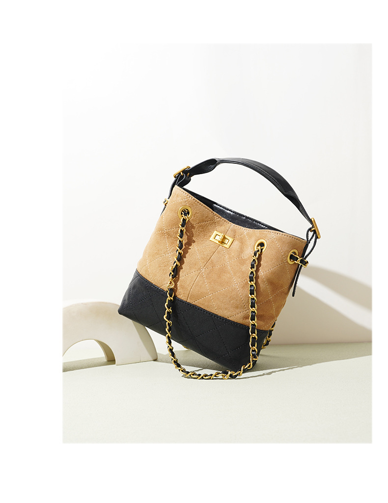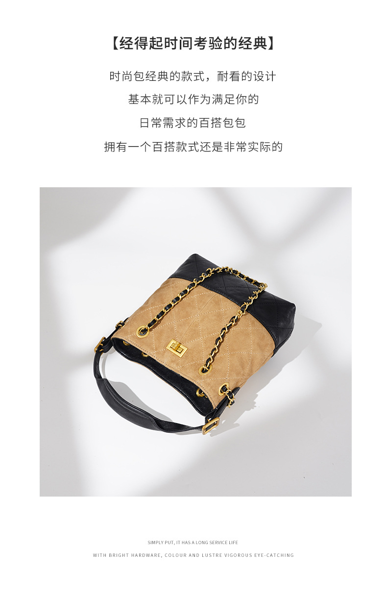 Chiếc túi xách tay kiểu dáng thùng tròn này có điểm nhấn từ sự kết hợp hai màu da thật. Dây đeo chuỗi mắt xích giúp bạn dễ dàng mang trên v hoặc khoác chéo người một cách thoải mái. Kiểu túi này phù hợp với nhiều cách phối đồ khác nhau, từ dạo phố đến gặp gỡ bạn bè. Bạn có thể sử dụng như một phụ kiện điểm xuyết cho bộ trang phục thêm phần nổi bật. | Tên sản phẩm: Túi Xách Nữ Chất Liệu Da Bò Phục Cổ Cổ Điển - Túi Ví Nữ | Mã sản phẩm: A7366 - Giá: 1.920.000đ | Mã nhà sản xuất: GUDEA-G05Hình ảnh sản phẩm