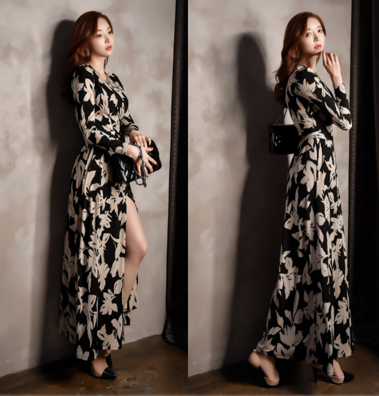 Chiếc đầm dài dành cho những ngày thu. Kiểu dáng ôm nhẹ cơ thể, tôn lên những đường nét duyên dáng. Cổ khoét hình chữ V tạo cảm giác thanh thoát, eo được thiết kế thắt nhẹ nhàng. Điểm nhấn là họa tiết in nổi bật trên nền vải mềm mại, cùng phần tà xẻ nhẹ giúp bạn dễ dàng di chuyển. Phù hợp để mặc đi làm, gặp gỡ bạn bè hay dạo phố. | Tên sản phẩm: Váy Đầm Liền Thân Dáng Dài Nữ Dáng Ôm Họa Tiết Hoa Cổ Chữ V Hàng Mùa Xuân Thu Đông Phong Cách Hàn Quốc - Thời Trang Nữ | Mã sản phẩm: a7384 - Giá: 710.000đ | Mã nhà sản xuất: ZHOUT-G02Hình ảnh sản phẩm