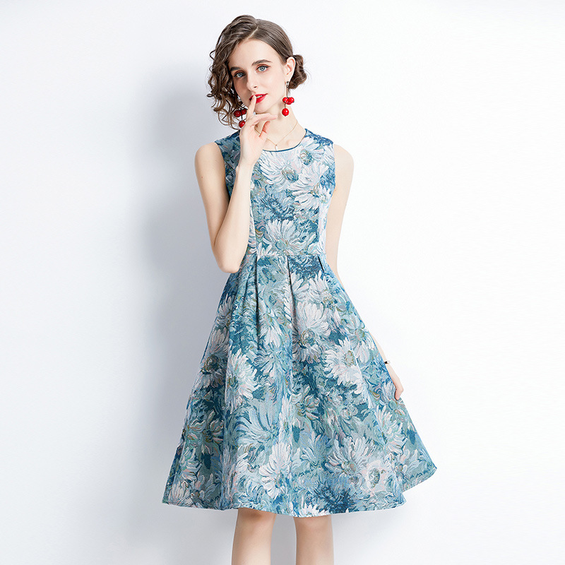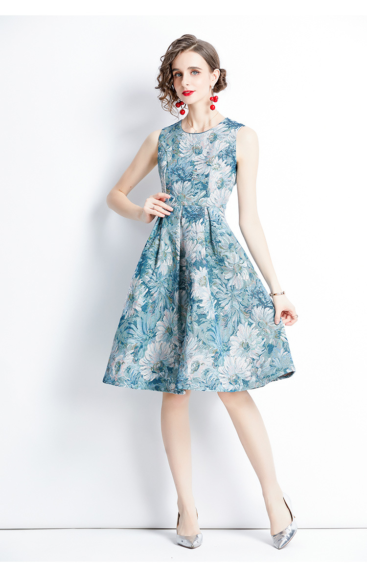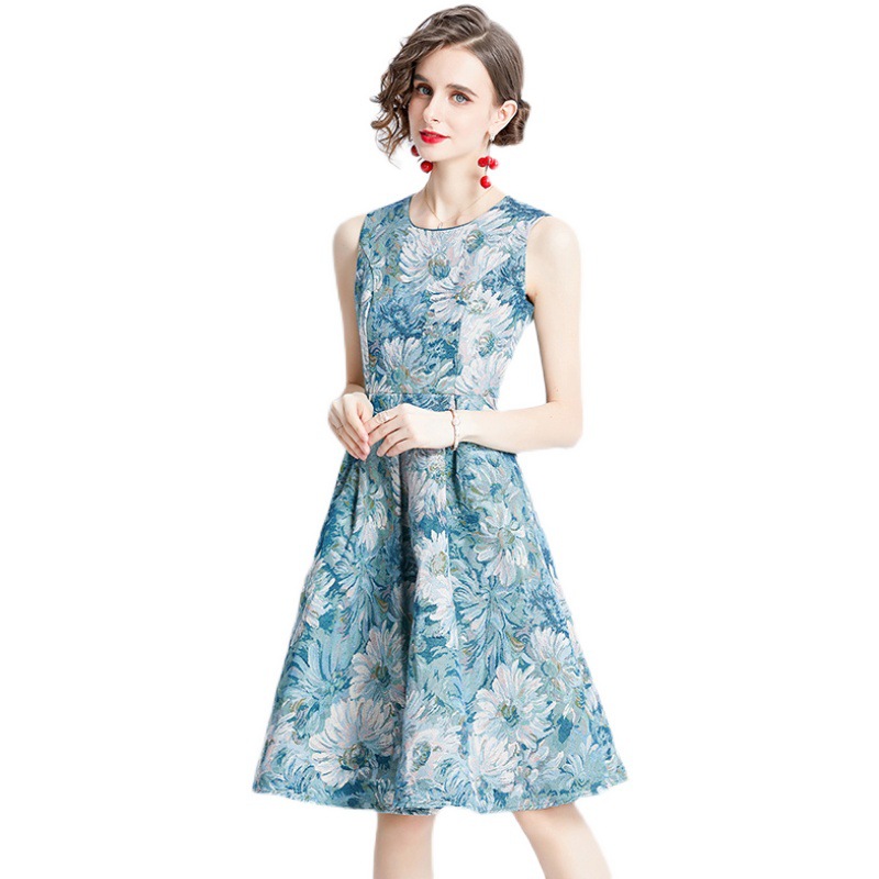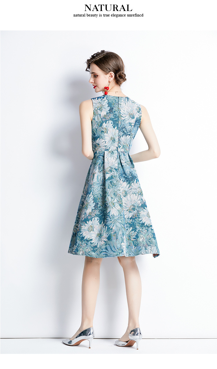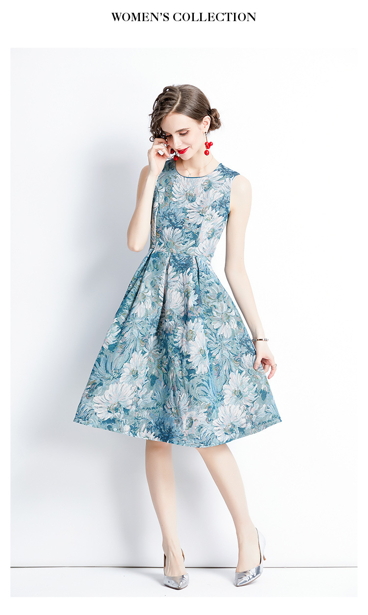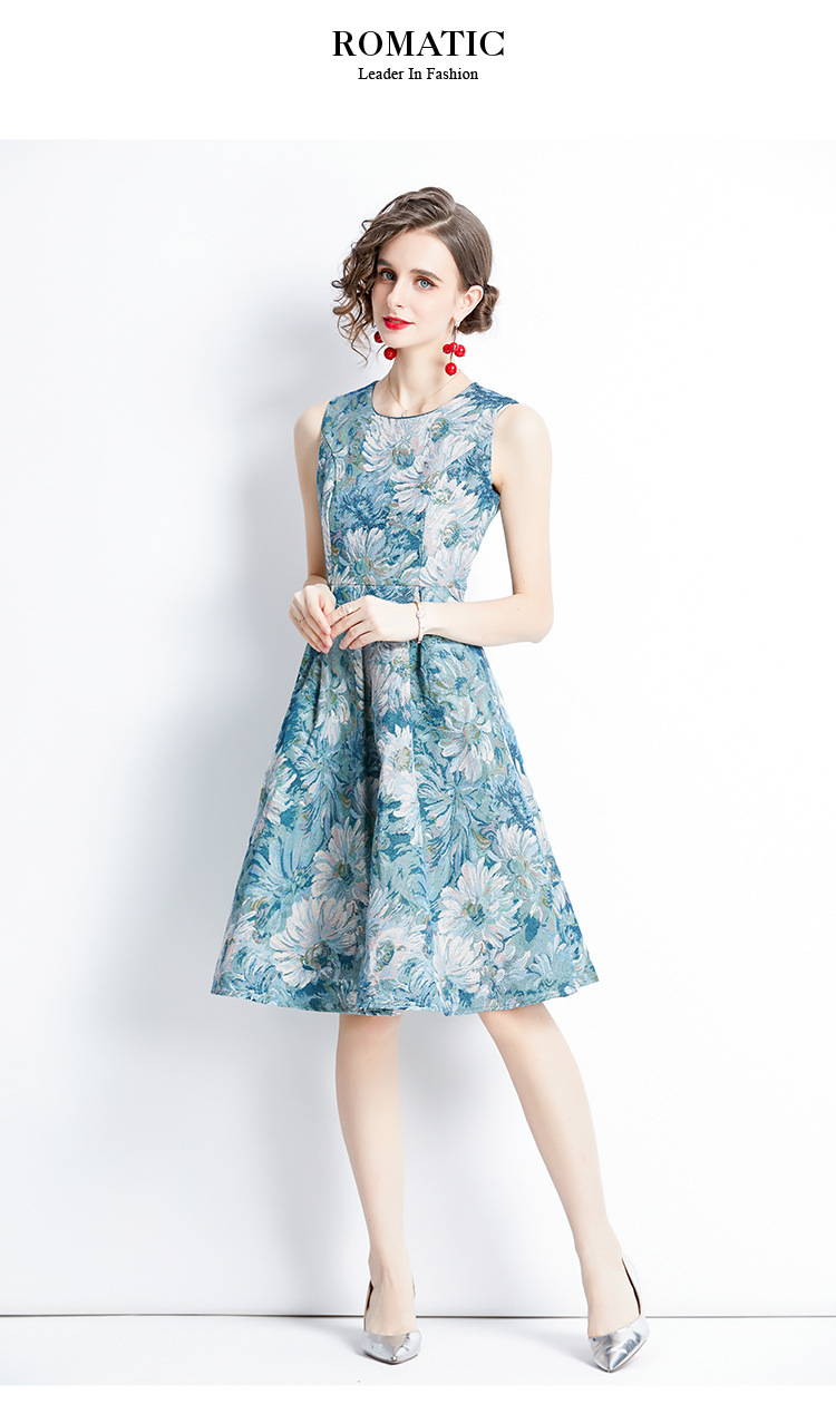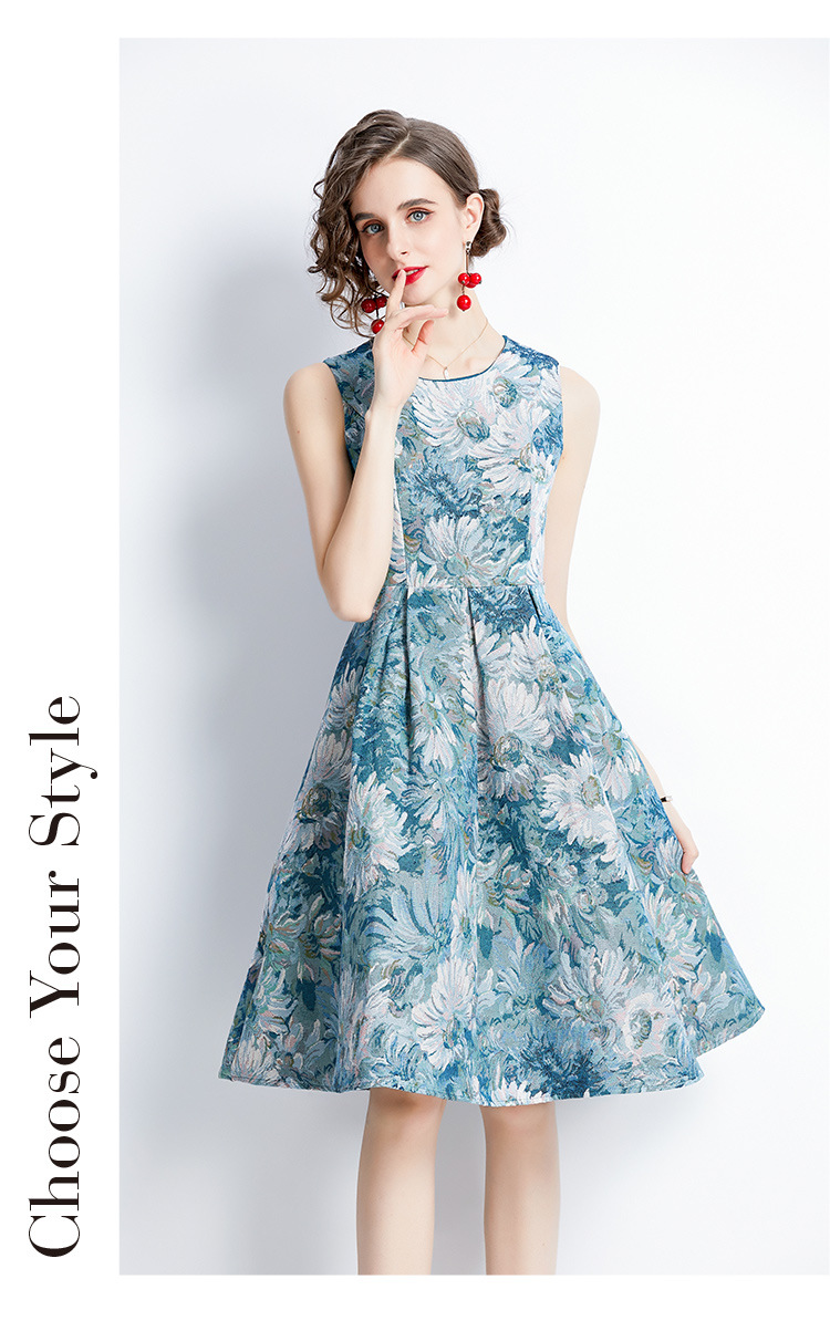 Chiếc váy không tay dáng dài, lấy cảm hứng từ phong cách thời trang Pháp cổ điển. Chất vải dệt hoa văn tinh tế tạo nên điểm nhấn đặc biệt. Thiết kế ôm nhẹ vòng eo, phần thân váy xòe nhẹ giúp tôn dáng người mặc. Kiểu dáng phù hợp cho những dịp đi chơi, dự tiệc nhẹ hoặc tạo điểm nhấn khi kết hợp cùng áo khoác mỏng. Sản phẩm dễ dàng phối cùng giày cao gót hoặc giày đế bằng. | Tên sản phẩm: Váy Đầm Liền Thân Nữ Họa Tiết Hoa Hàng Mùa Hè Phục Cổ Cổ Điển - Thời Trang Nữ | Mã sản phẩm: A7497 - Giá: 880.000đ | Mã nhà sản xuất: GUDG-G03Hình ảnh sản phẩm