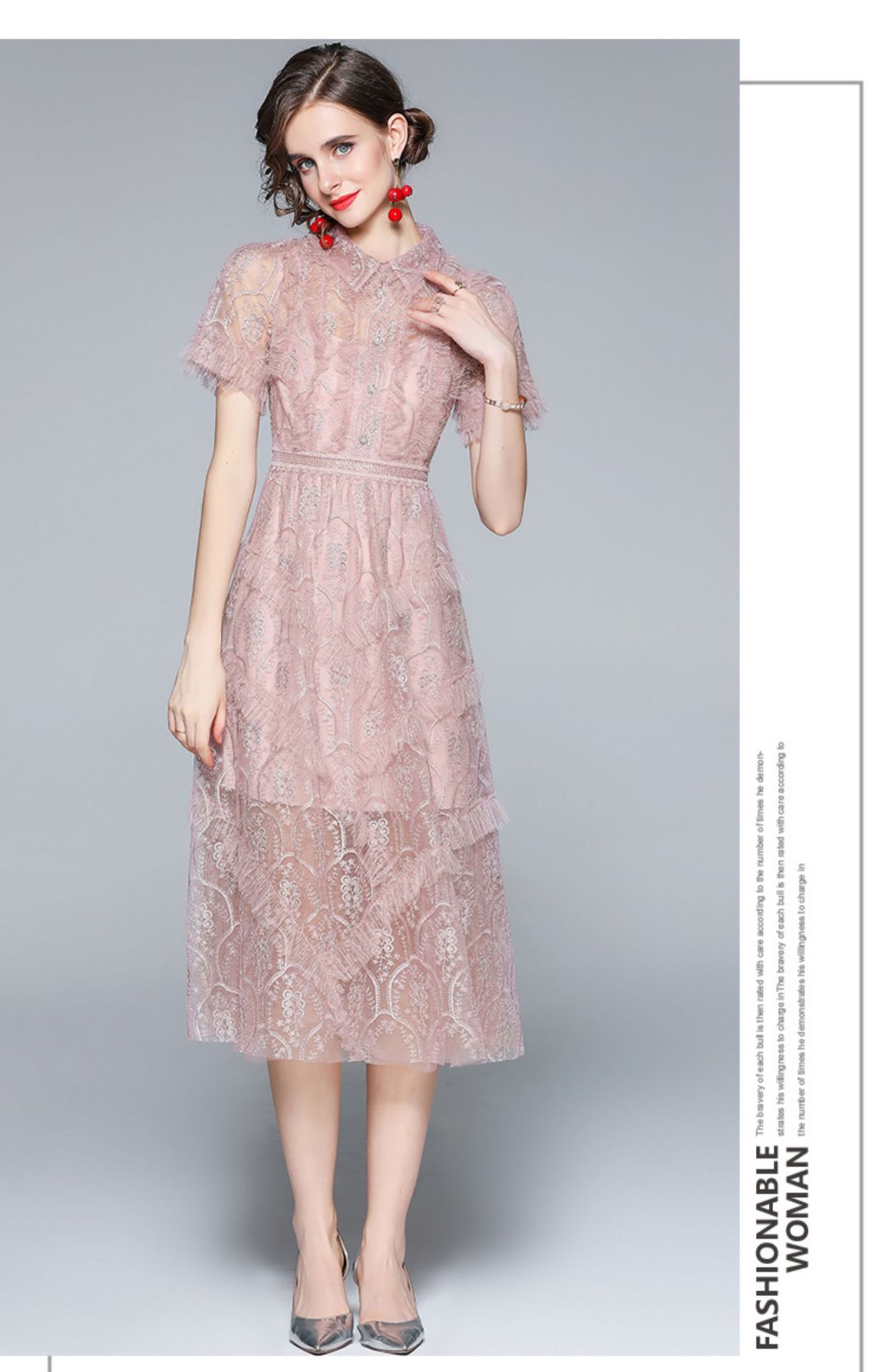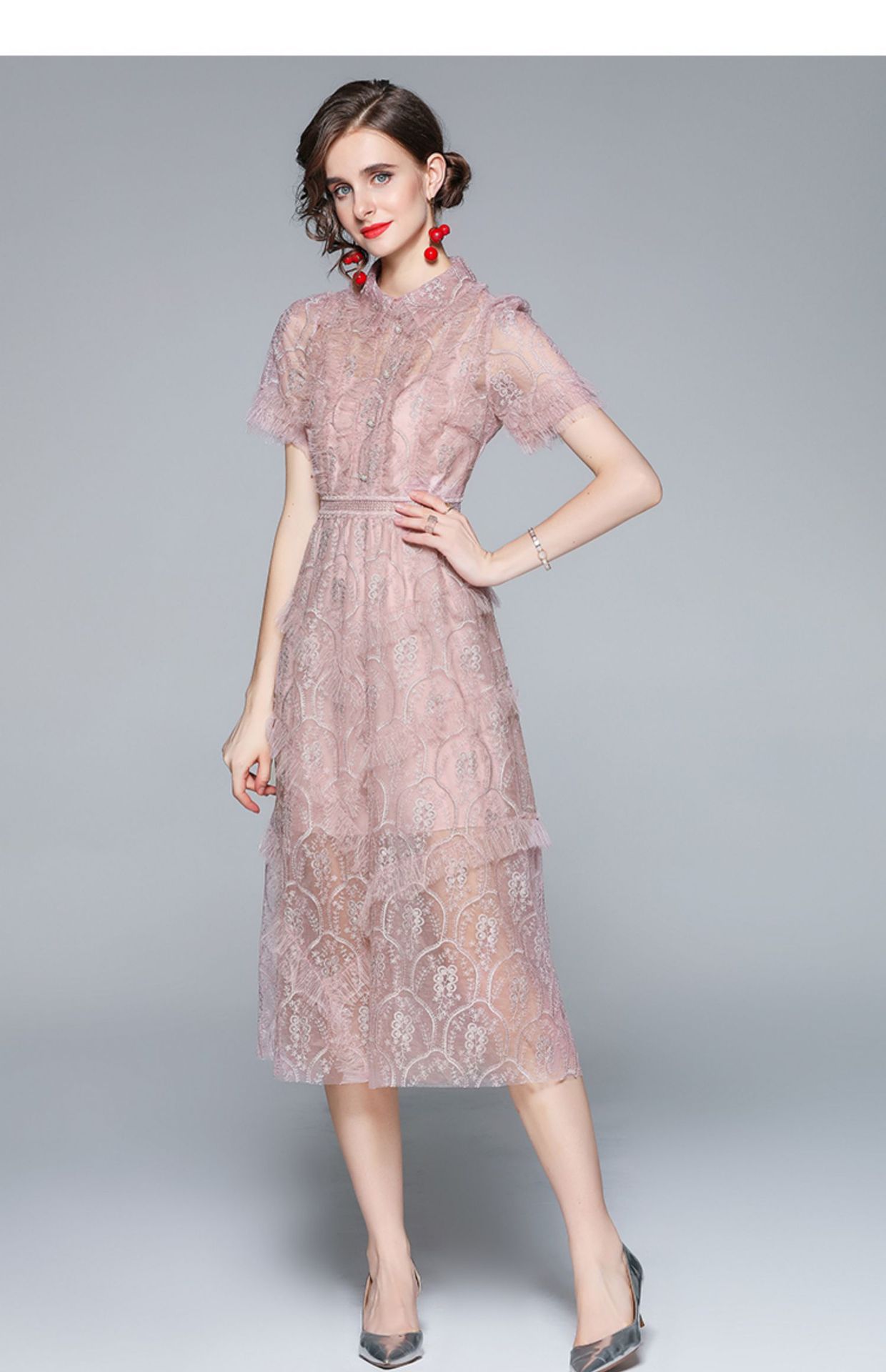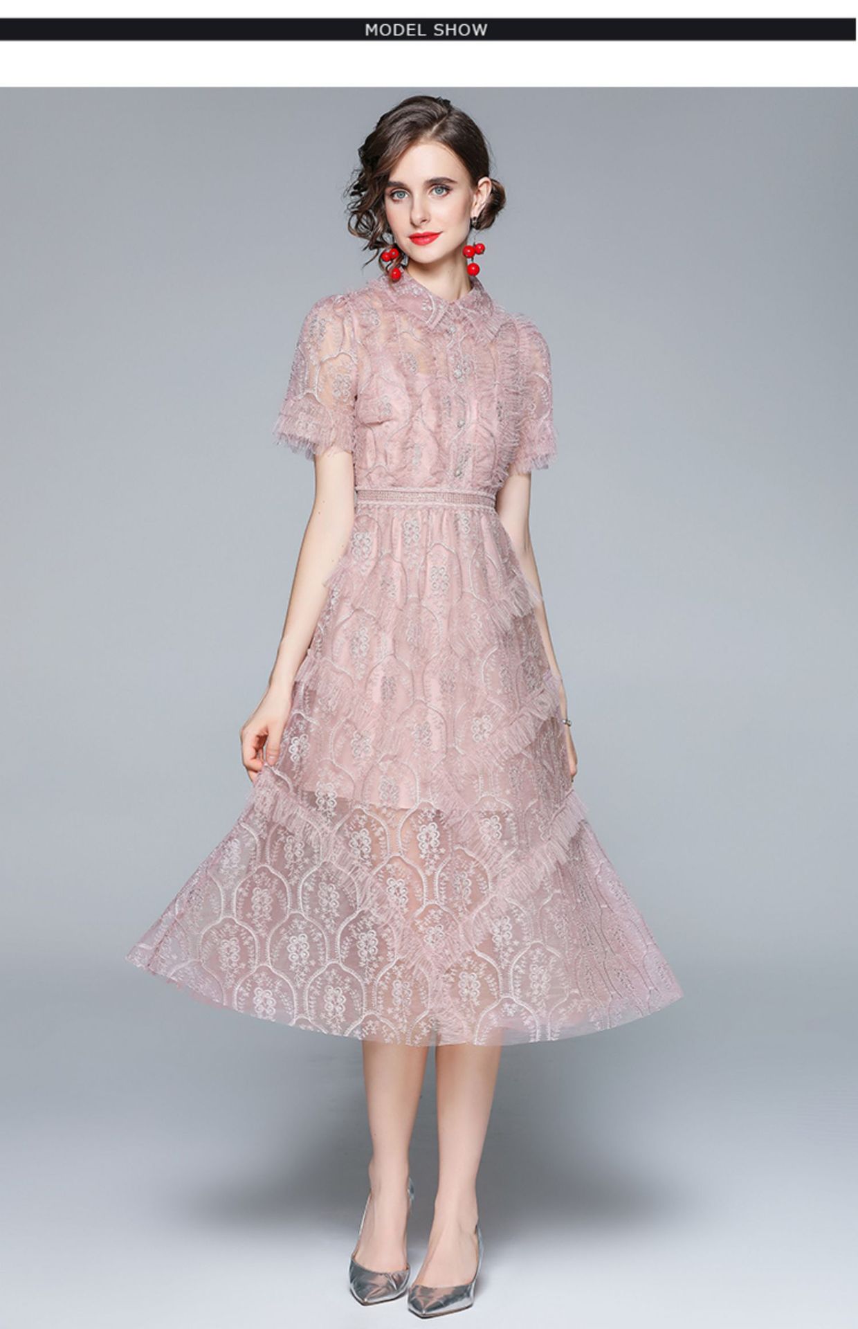 Chiếc đầm dành cho những ngày hè, kết hợp hài hòa giữa phần cổ bẻ cách điệu và thân ôm tôn dáng. Điểm nhấn là những đường thêu tinh xảo cùng hàng cúc được đính hạt lấp lánh, tạo nên vẻ đẹp nữ tính. Chất liệu voan mỏng nhẹ và lớp lưới trong suốt mang đến sự thoải mái và duyên dáng. Mặc cùng giày sandal hoặc giày búp bê để hoàn thiện set đồ. | Tên sản phẩm: Váy Đầm Liền Thân Nữ Chất Liệu Ren Lưới Mỏng Thêu Họa Tiết Hoa Kín Cổ Hàng Mùa Hè - Thời Trang Nữ | Mã sản phẩm: A7515 - Giá: 1.140.000đ | Mã nhà sản xuất: GUDG-G04Hình ảnh sản phẩm