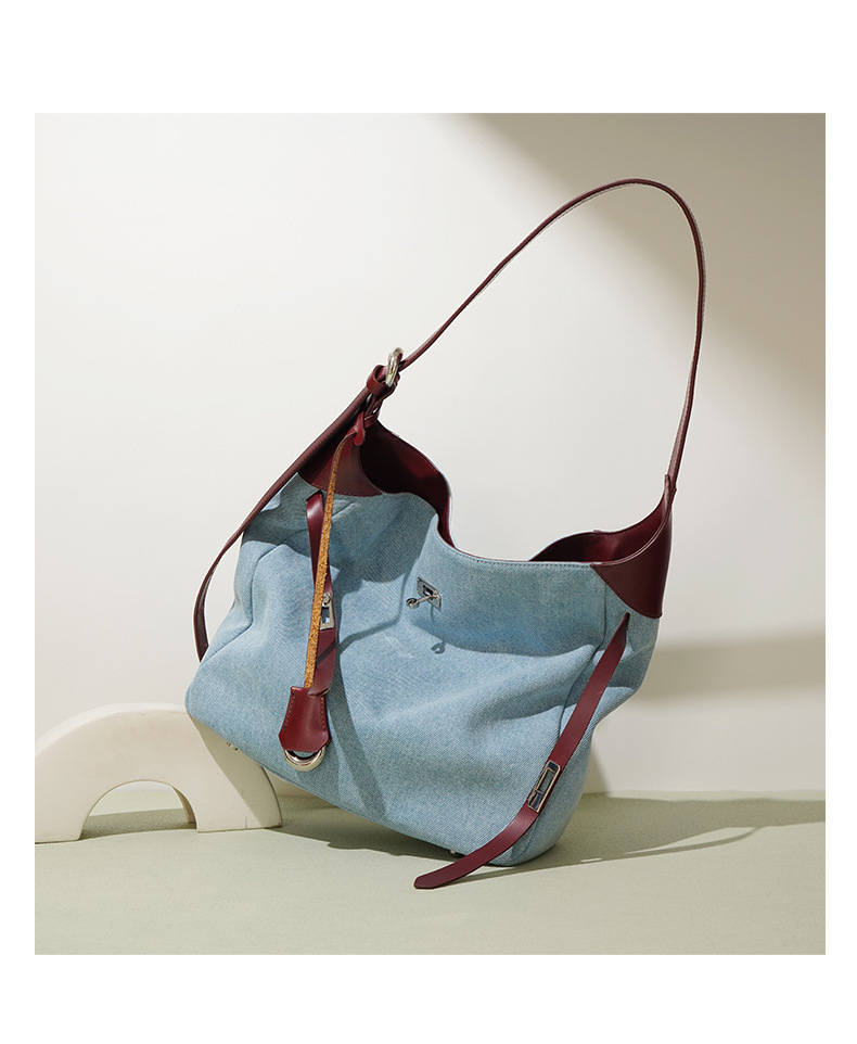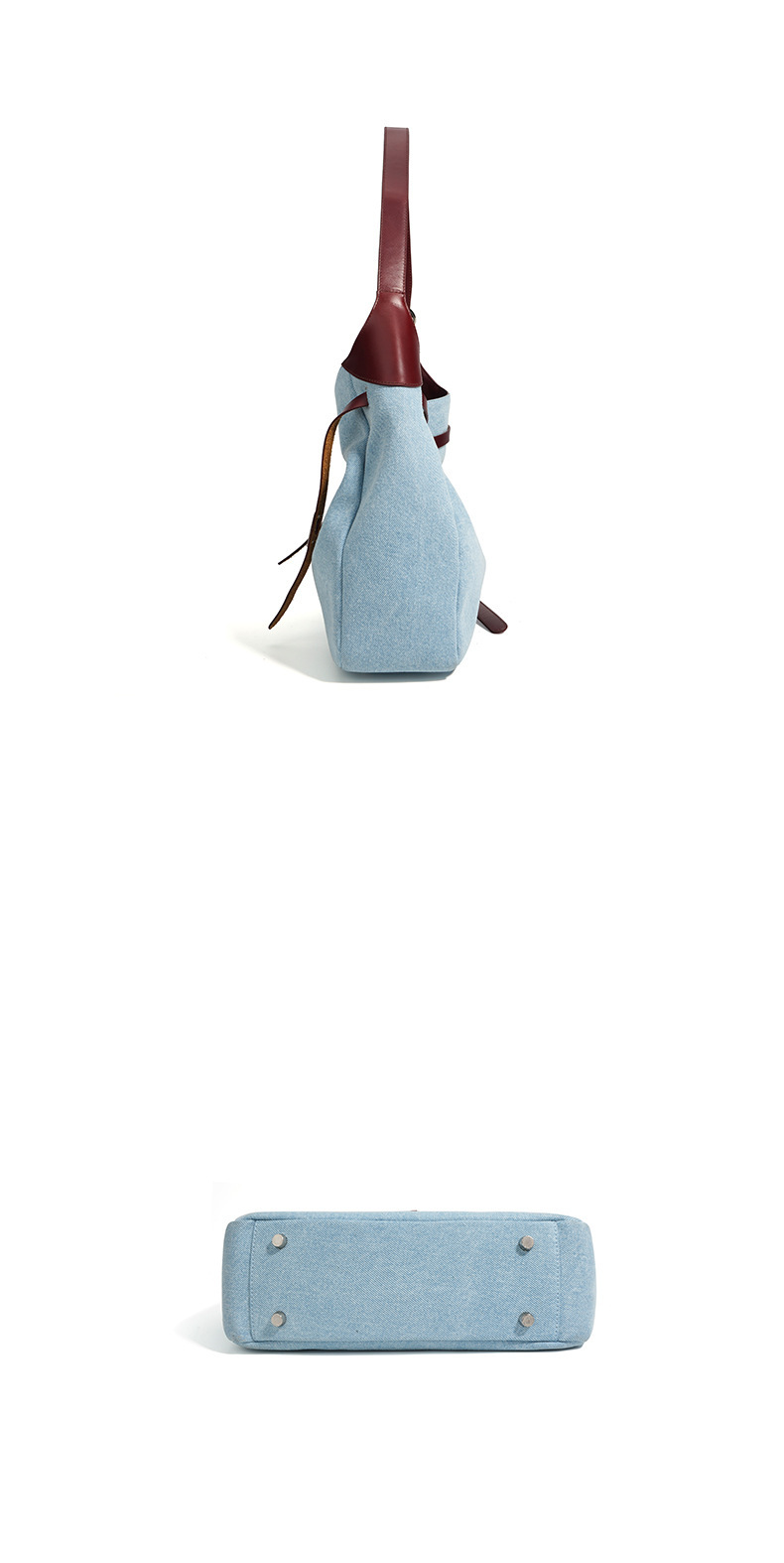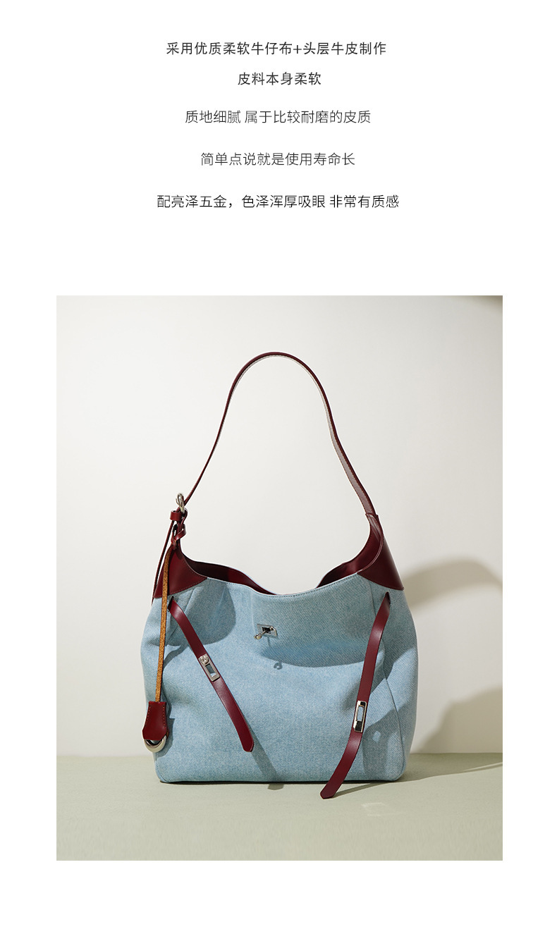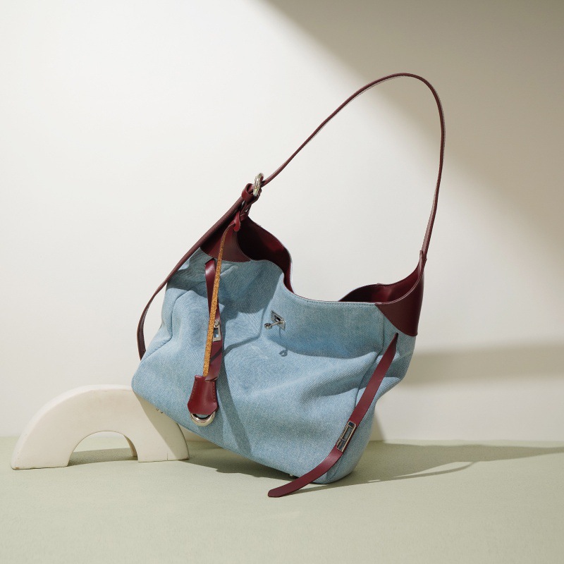 Túi xách kiểu dáng tote cỡ lớn, có thể đeo v hoặc mang vắt chéo người rất tiện lợi. Sản phẩm kết hợp hài hòa giữa chất liệu da thật tự nhiên ở phần thân chính và vải denim bền chắc. Điểm nhấn là sự phối màu xanh denim và đỏ rượu vang tạo nên vẻ ngoại hình trẻ trung, phá cách. Túi thích hợp để sử dụng hằng ngày, đựng vừa ví, điện thoại và các vật dụng cá nhân cần thiết. | Tên sản phẩm: Túi Xách Nữ Chất Liệu Da Bò - Túi Ví Nữ | Mã sản phẩm: A7577 - Giá: 1.490.000đ | Mã nhà sản xuất: GUDEA-G04Hình ảnh sản phẩm