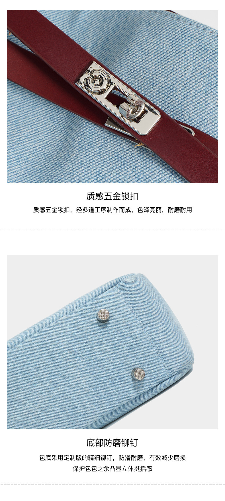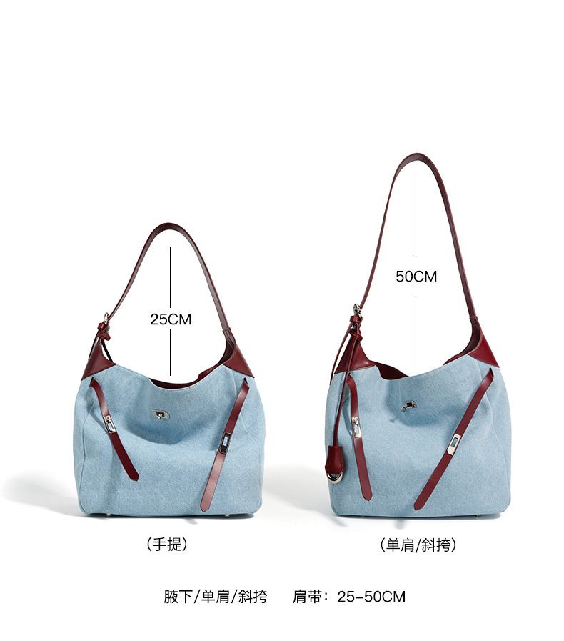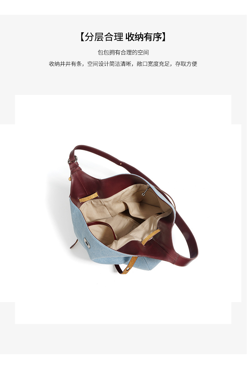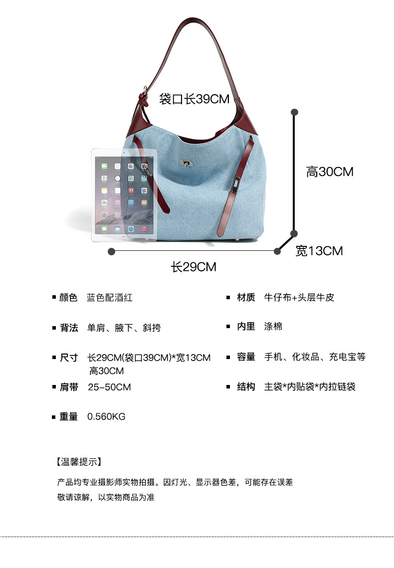 Túi xách kiểu dáng tote cỡ lớn, có thể đeo v hoặc mang vắt chéo người rất tiện lợi. Sản phẩm kết hợp hài hòa giữa chất liệu da thật tự nhiên ở phần thân chính và vải denim bền chắc. Điểm nhấn là sự phối màu xanh denim và đỏ rượu vang tạo nên vẻ ngoại hình trẻ trung, phá cách. Túi thích hợp để sử dụng hằng ngày, đựng vừa ví, điện thoại và các vật dụng cá nhân cần thiết. | Tên sản phẩm: Túi Xách Nữ Chất Liệu Da Bò - Túi Ví Nữ | Mã sản phẩm: A7577 - Giá: 1.490.000đ | Mã nhà sản xuất: GUDEA-G04Hình ảnh sản phẩm