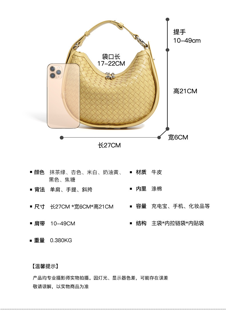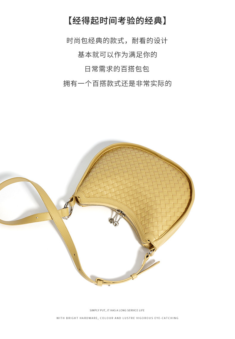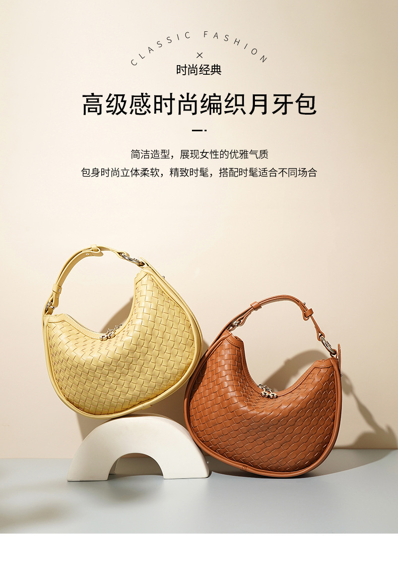 Chiếc túi dáng trăng lưỡi liềm mới ra mắt, được làm từ chất liệu da thật kết hợp kỹ thuật đan tinh xảo. Thiết kế này mang phong cách nhẹ nhàng, năng động, phù hợp cho những ngày xuân hè. Bạn có thể dễ dàng phối đồ với nhiều cách đeo linh hoạt như khoác v, đeo chéo người hoặc xách tay một cách thoải mái. Túi vừa vặn để đựng các vật dụng cá nhân cần thiết mỗi khi ra ngoài. | Tên sản phẩm: Túi Xách Nữ Chất Liệu Da Bò Hàng Mùa Hè - Túi Ví Nữ | Mã sản phẩm: A7653 - Giá: 1.370.000đ | Mã nhà sản xuất: GUDEA-G04Hình ảnh sản phẩm