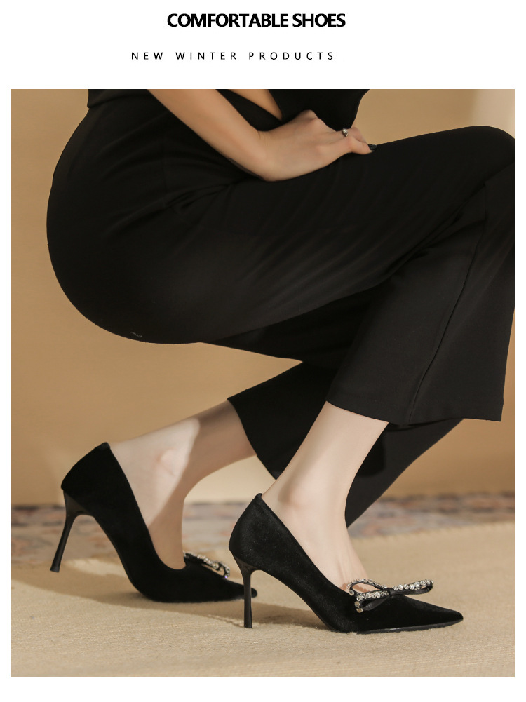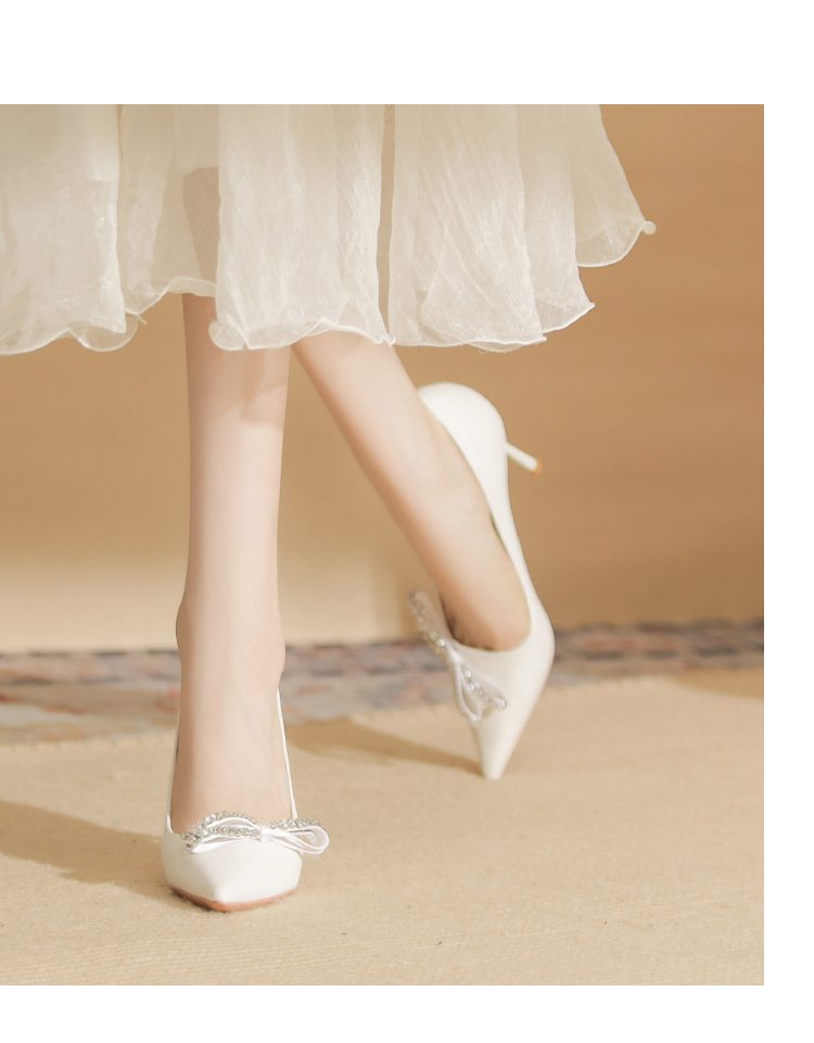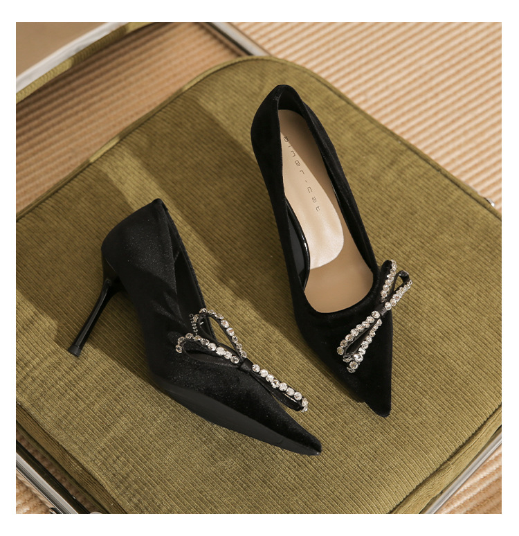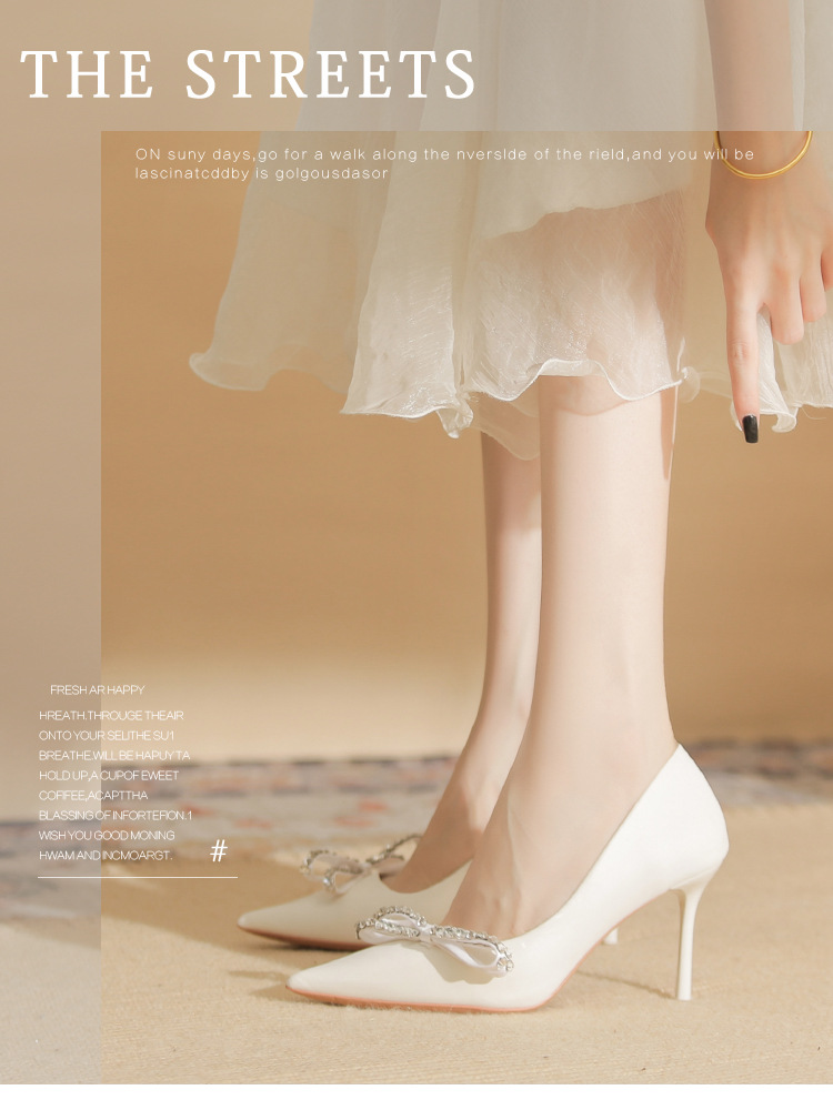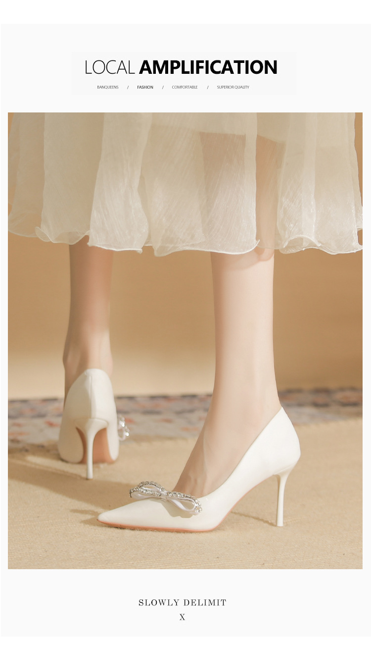 Giày cao gót nữ với phần mũi nhọn thanh thoát, được điểm xuyết nơ kết hợp đá lấp lánh tạo điểm nhấn tinh tế. Chất liệu da mềm mại, màu trắng dễ phối đồ. Gót nhọn vừa phải giúp tôn dáng, phù hợp cho mùa thu. Sản phẩm dễ dàng sử dụng, mang lại cảm giác thoải mái khi diện trong nhiều dịp. | Tên sản phẩm: Giày Cao Gót Nữ Thắt Nơ Bướm Gắn Đá Mũi Nhọn Gót Nhọn Hàng Mùa Xuân Thu Đông - Giày Dép Nữ | Mã sản phẩm: A7675 - Giá: 1.000.000đ | Mã nhà sản xuất: HUDS-G03Hình ảnh sản phẩm