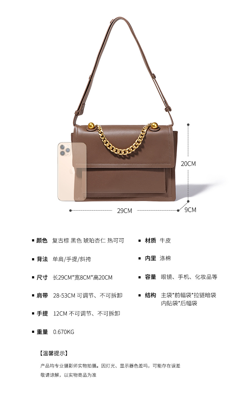 Chiếc túi xách chéo dành cho nữ này được làm từ chất liệu da bò mềm mại, mang đến cảm giác dễ chịu khi sử dụng. Thiết kế có dây đeo xích và dây rút điều chỉnh độ dài, giúp bạn đeo chéo người hoặc khoác v một cách thoải mái. Dung tích bên trong rộng rãi, thích hợp để đựng các vật dụng cá nhân cần thiết khi đi làm hay dạo phố. Bạn có thể dễ dàng phối hợp với nhiều trang phục khác nhau để tạo nên vẻ ngoài ưa nhìn. | Tên sản phẩm: Túi Xách Nữ Chất Liệu Da Bò - Túi Ví Nữ | Mã sản phẩm: A7712 - Giá: 1.540.000đ | Mã nhà sản xuất: GUDEA-G04Hình ảnh sản phẩm