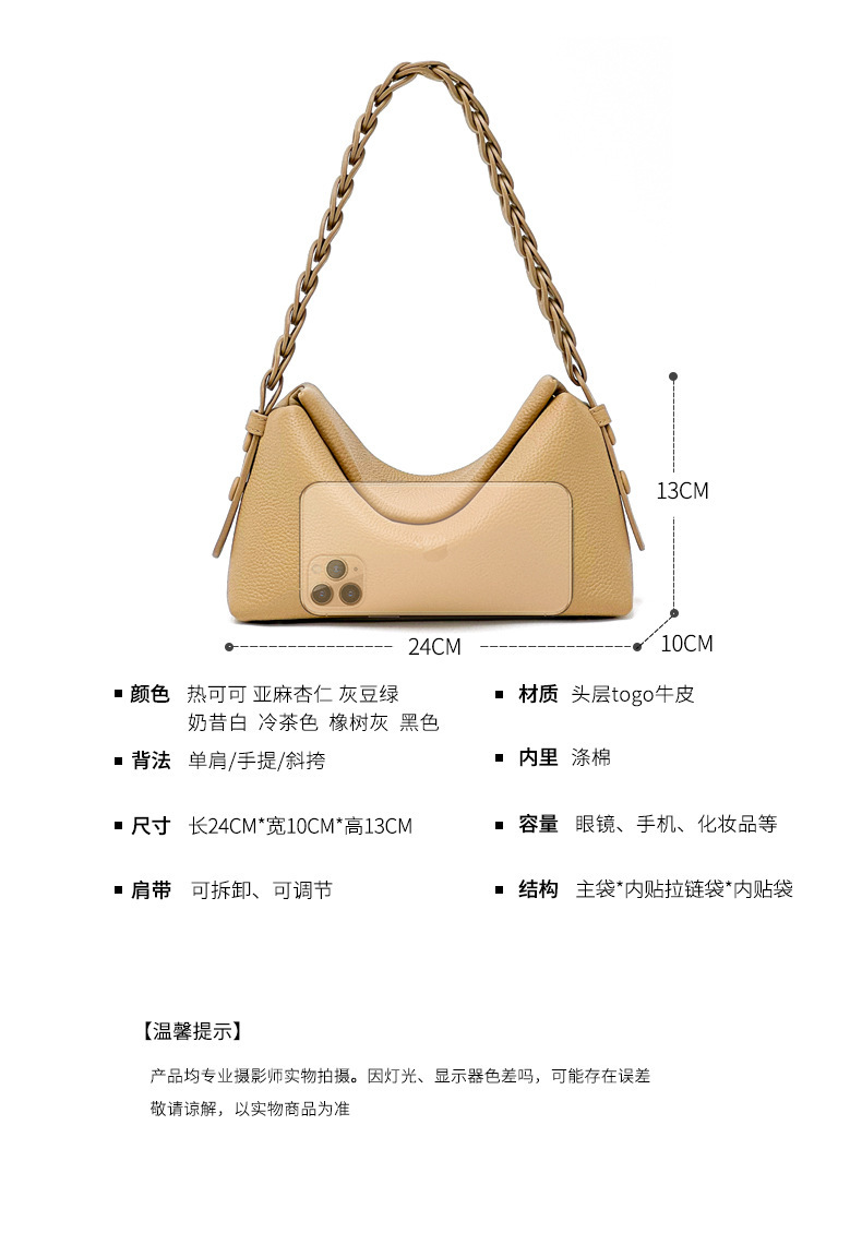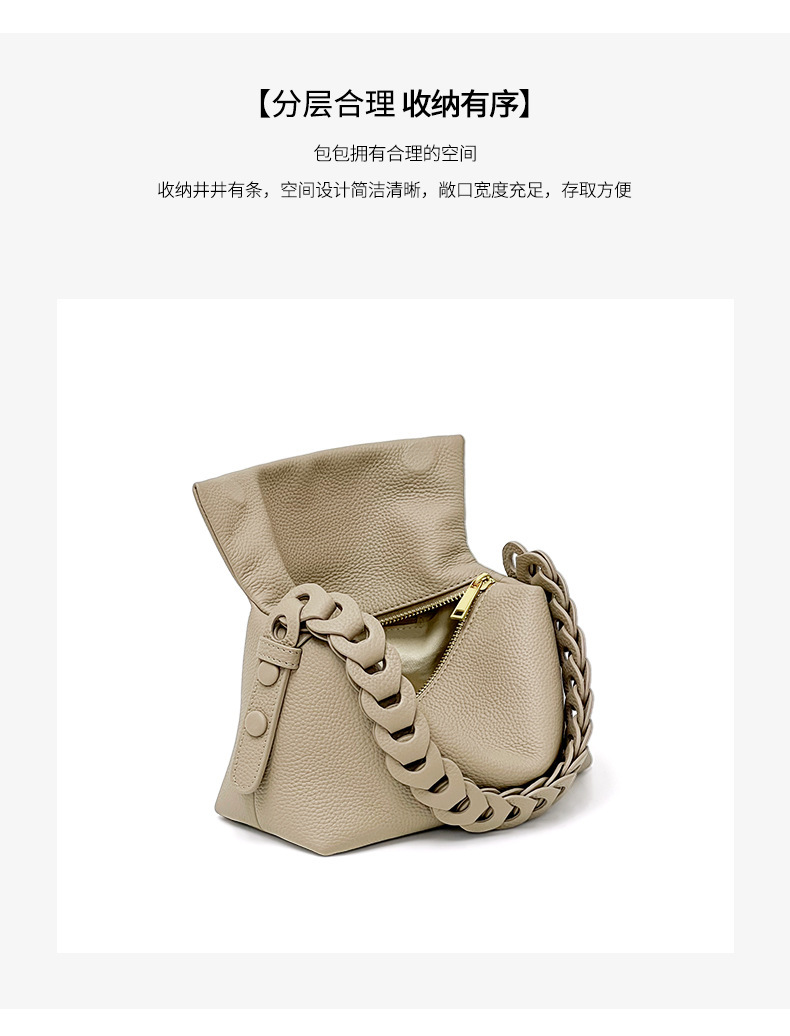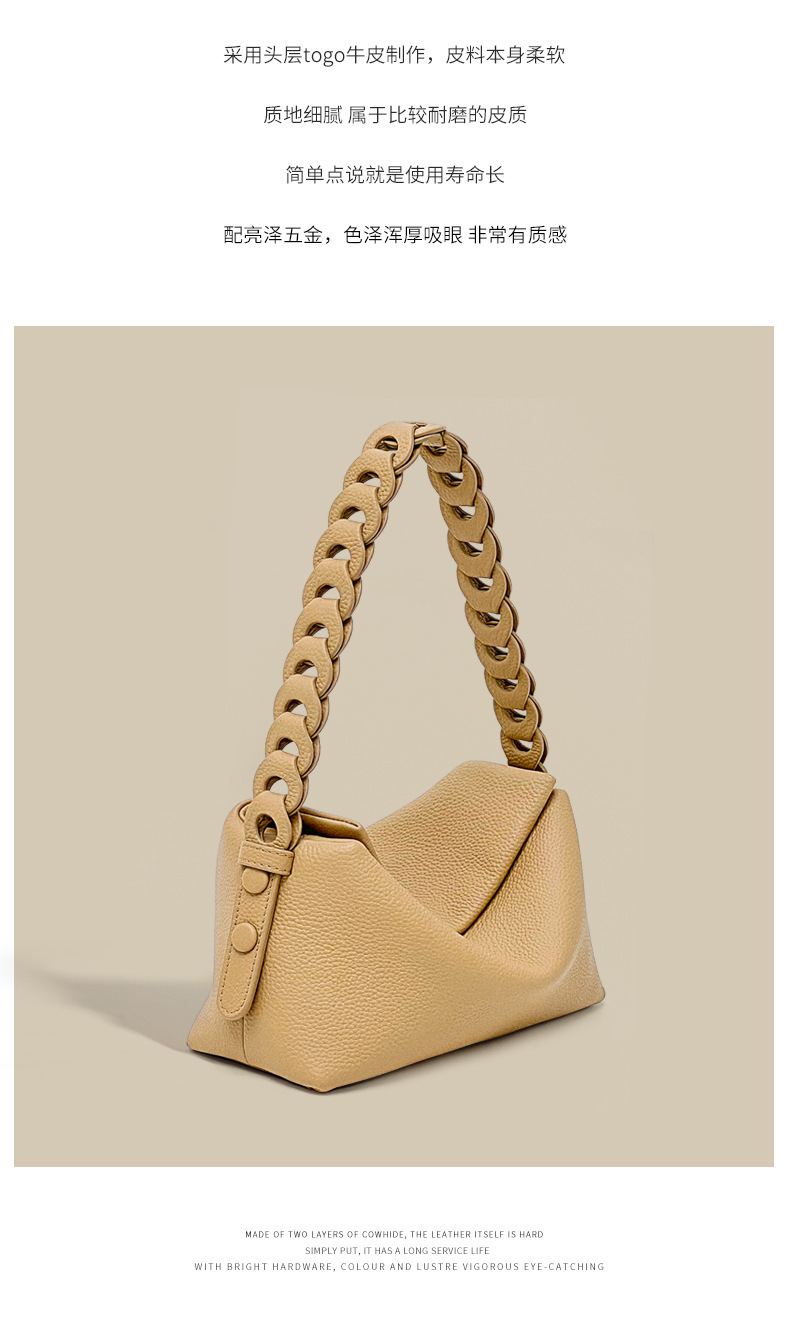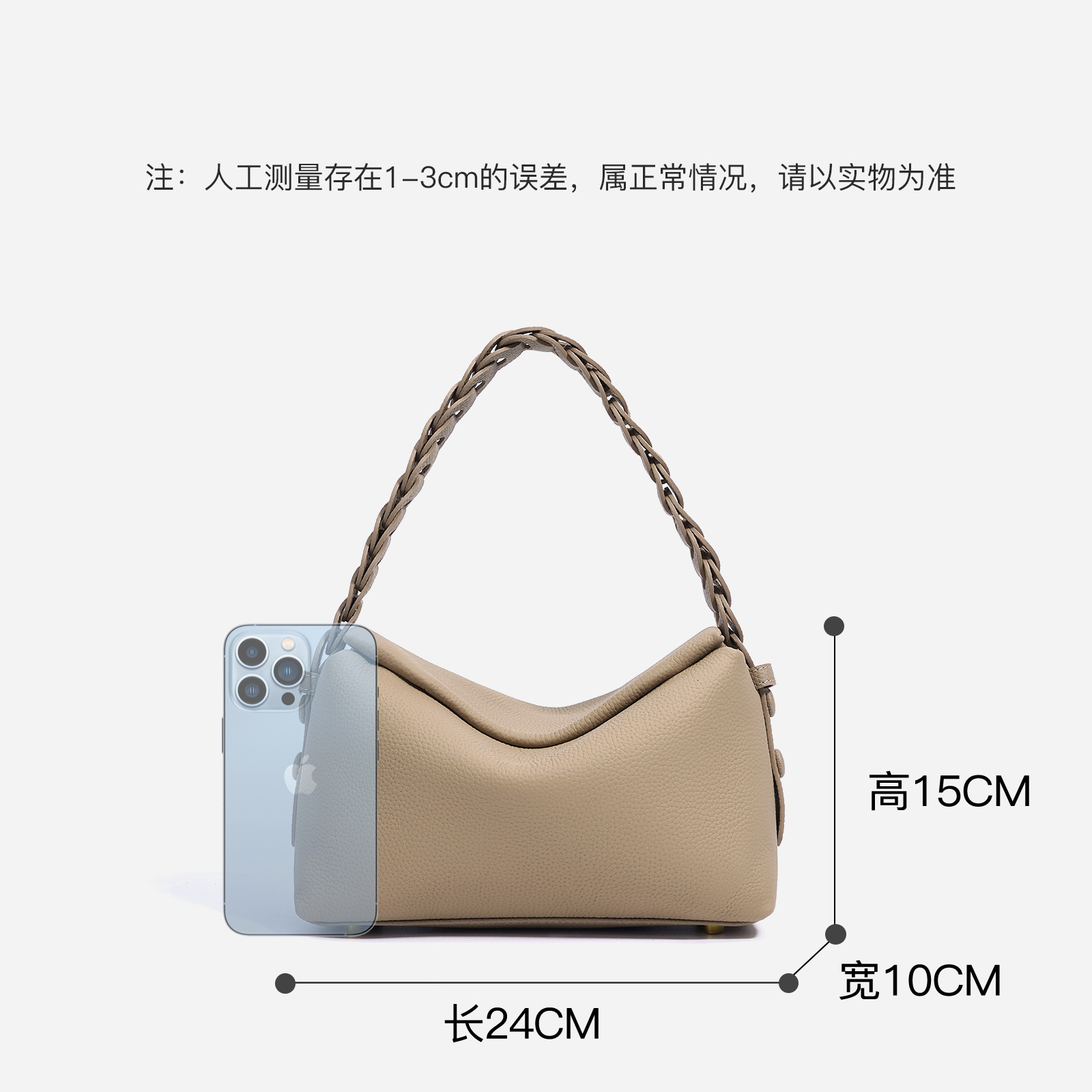 Chiếc túi này có kiểu dáng ôm gọn dưới cánh tay, tạo nên vẻ ngoại hình gọn gàng và thanh lịch. Chất liệu làm từ da bò thật tự nhiên, bề mặt được dệt tinh xảo giúp túi bền đẹp theo thời gian. Bạn có thể đeo túi làm ba cách linh hoạt: khoác v, xách tay hoặc đeo chéo người tùy theo sở thích. Thiết kế đơn giản nhưng tinh tế, dễ dàng phối hợp với nhiều loại trang phục khác nhau trong các dịp sử dụng hằng ngày. | Tên sản phẩm: Túi Xách Nữ Chất Liệu Da Bò - Túi Ví Nữ | Mã sản phẩm: A7756 - Giá: 423.710.000đ | Mã nhà sản xuất: GUDEA-Hình ảnh sản phẩm