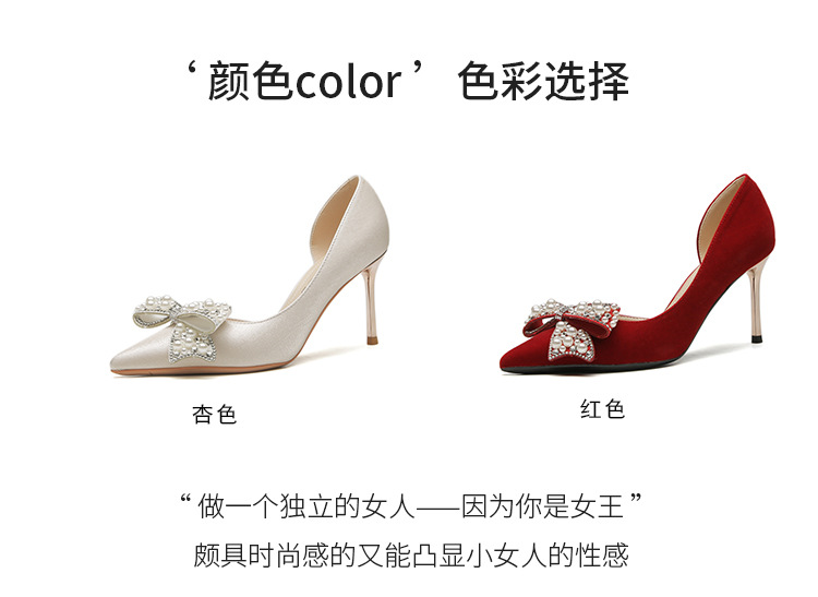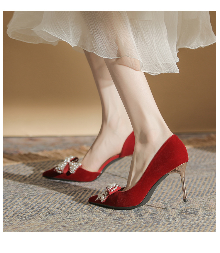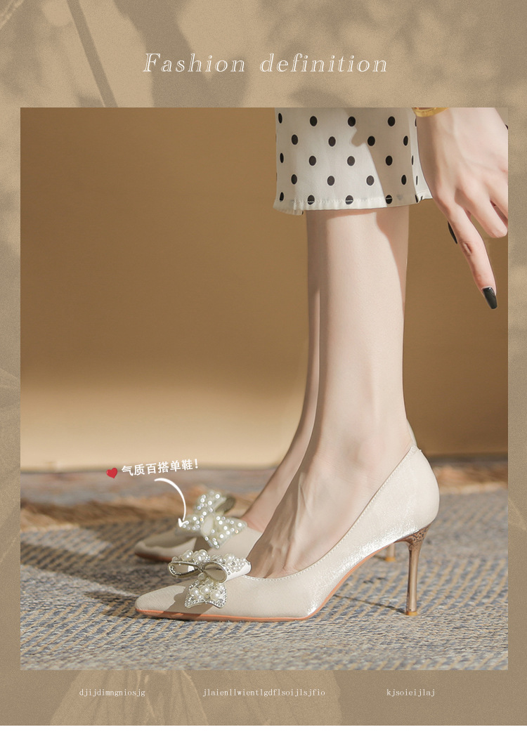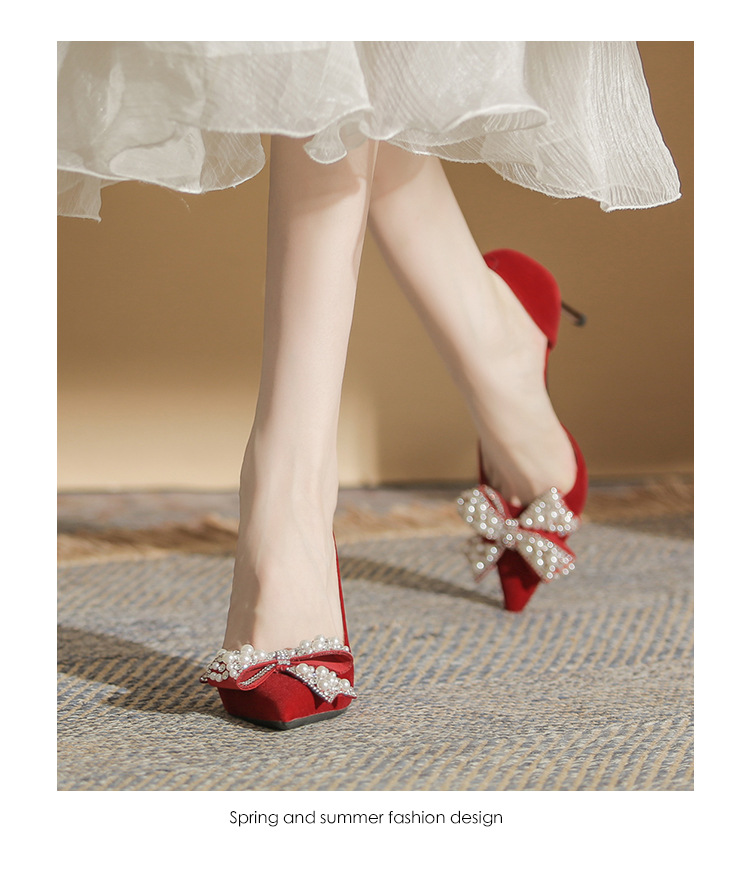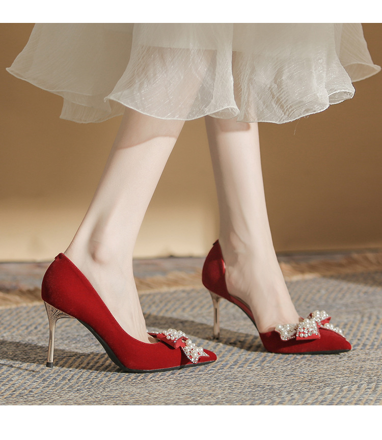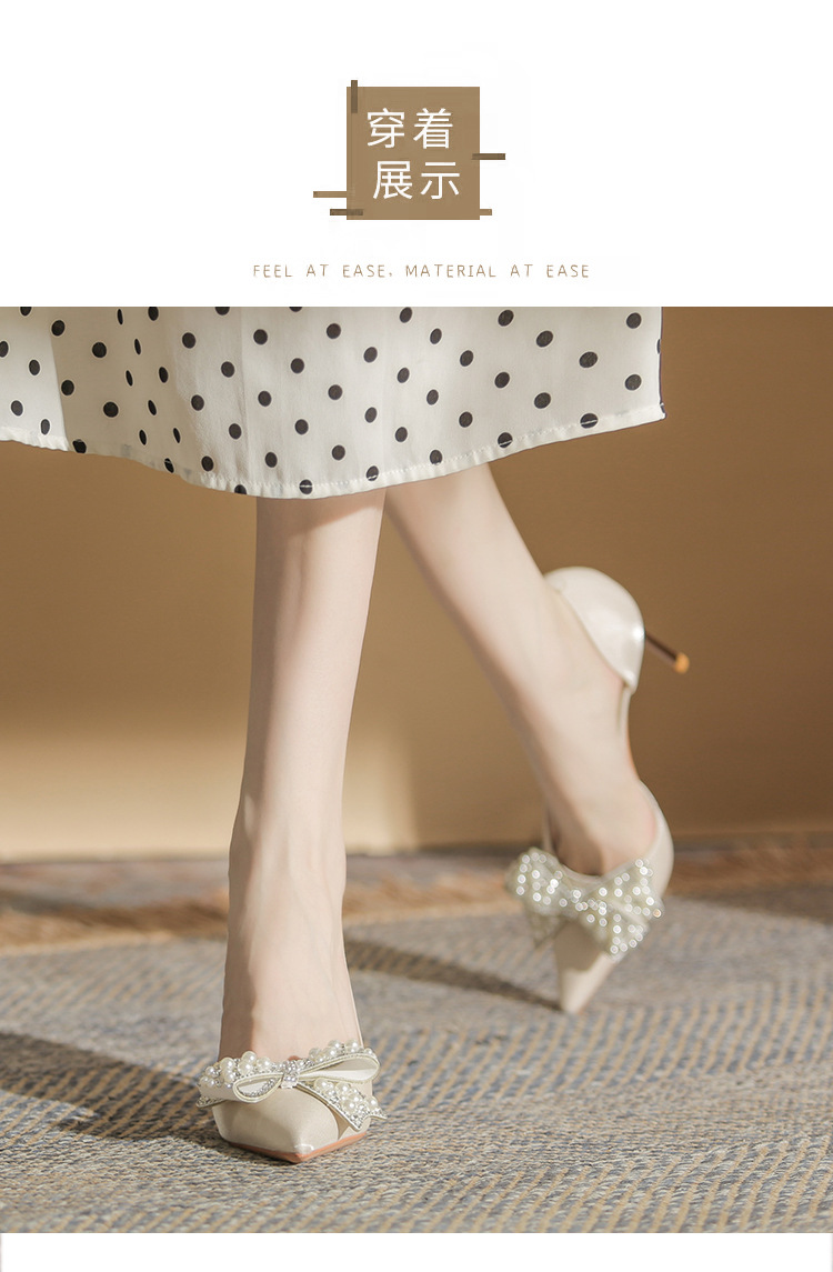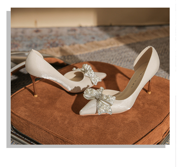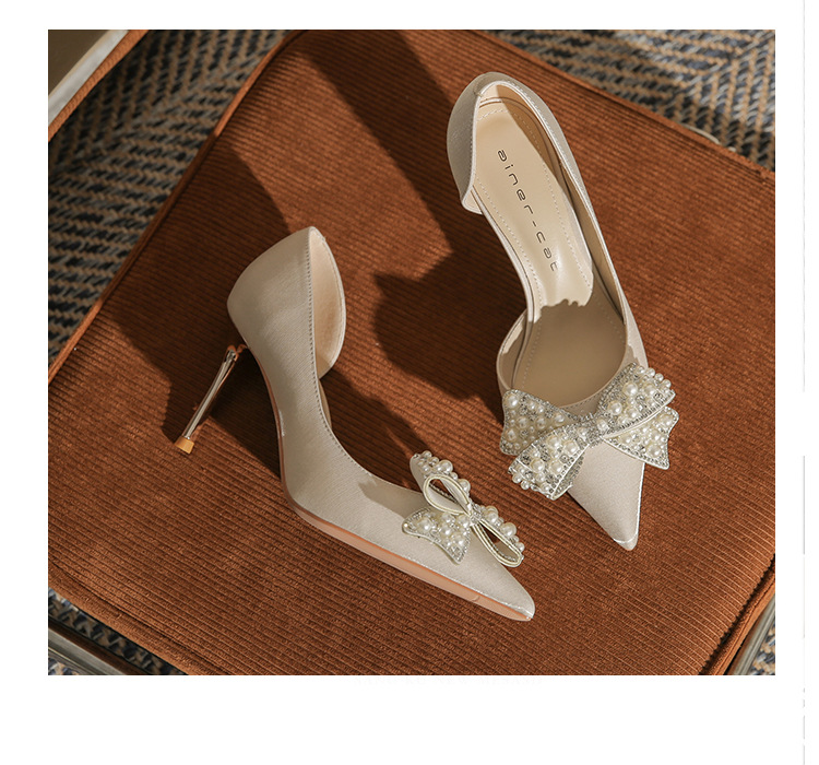 Đôi giày này có phần mũi nhọn và gót thon, tạo dáng thanh thoát. Mẫu mã mới với điểm nhấn là nơ và hạt ngọc tr, kết hợp thêm các chi tiết pha lê lấp lánh bên hông. Kiểu dáng phù hợp để đi trong các dịp đặc biệt. Sử dụng bằng cách mang vừa chân, kết hợp cùng trang phục dạo phố hoặc váy để tôn vẻ nữ tính. | Tên sản phẩm: Giày Cao Gót Nữ Thắt Nơ Bướm Gắn Đá Mũi Nhọn Gót Nhọn Dùng Trong Lễ Cưới - Giày Dép Nữ | Mã sản phẩm: A7762 - Giá: 910.000đ | Mã nhà sản xuất: HUDS-G03Hình ảnh sản phẩm