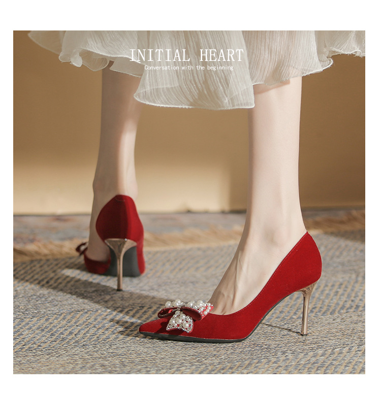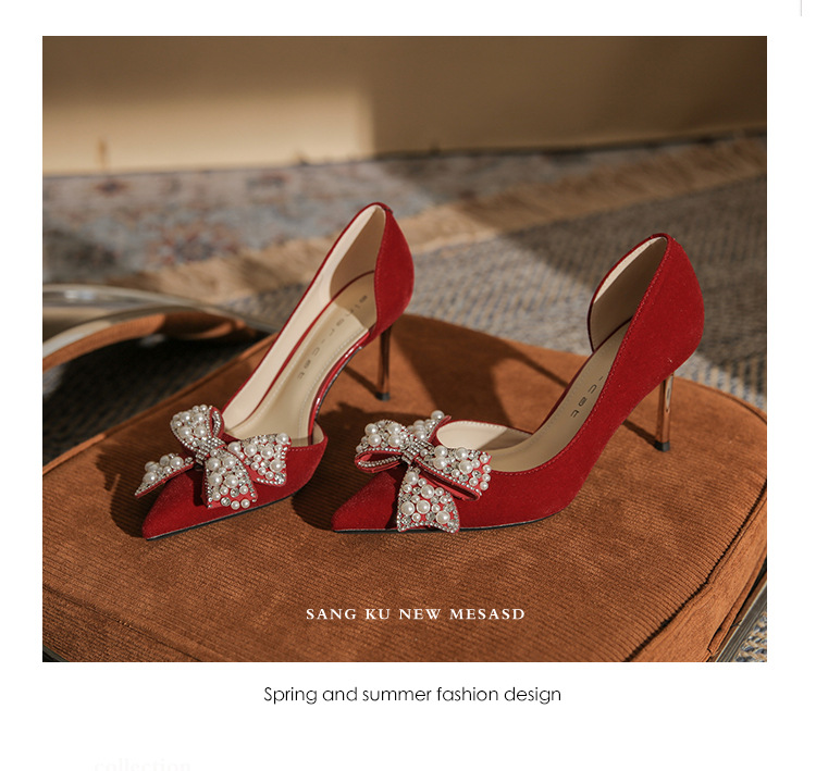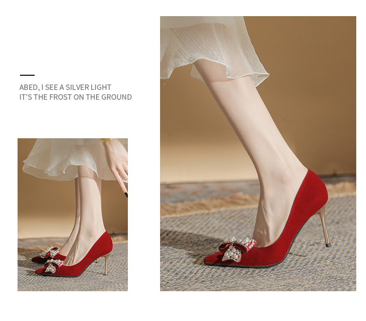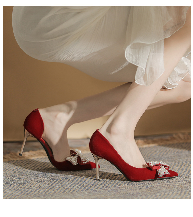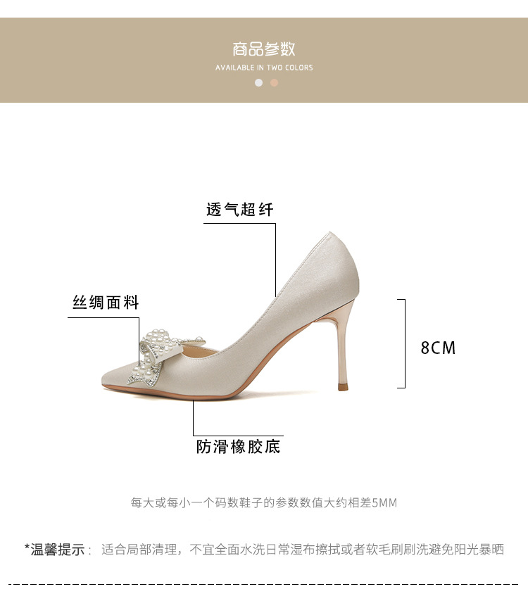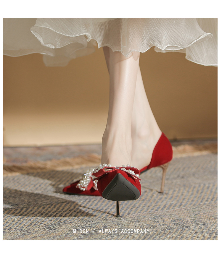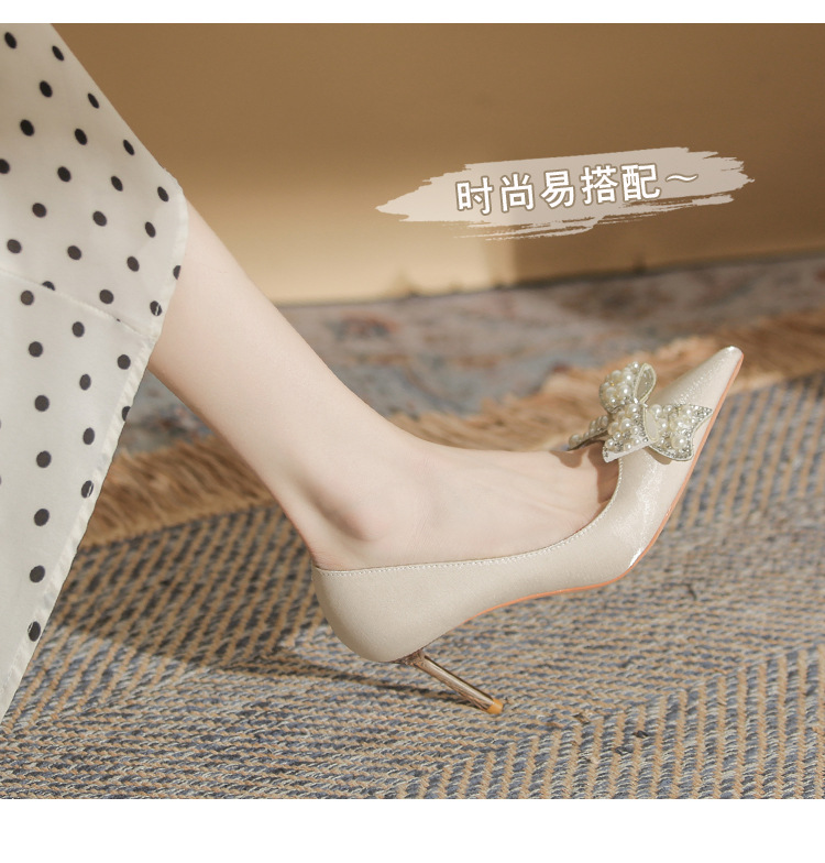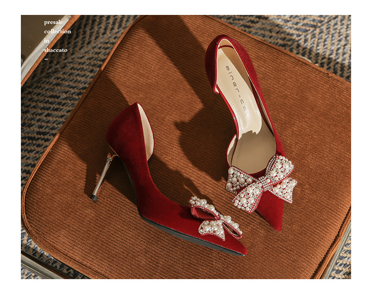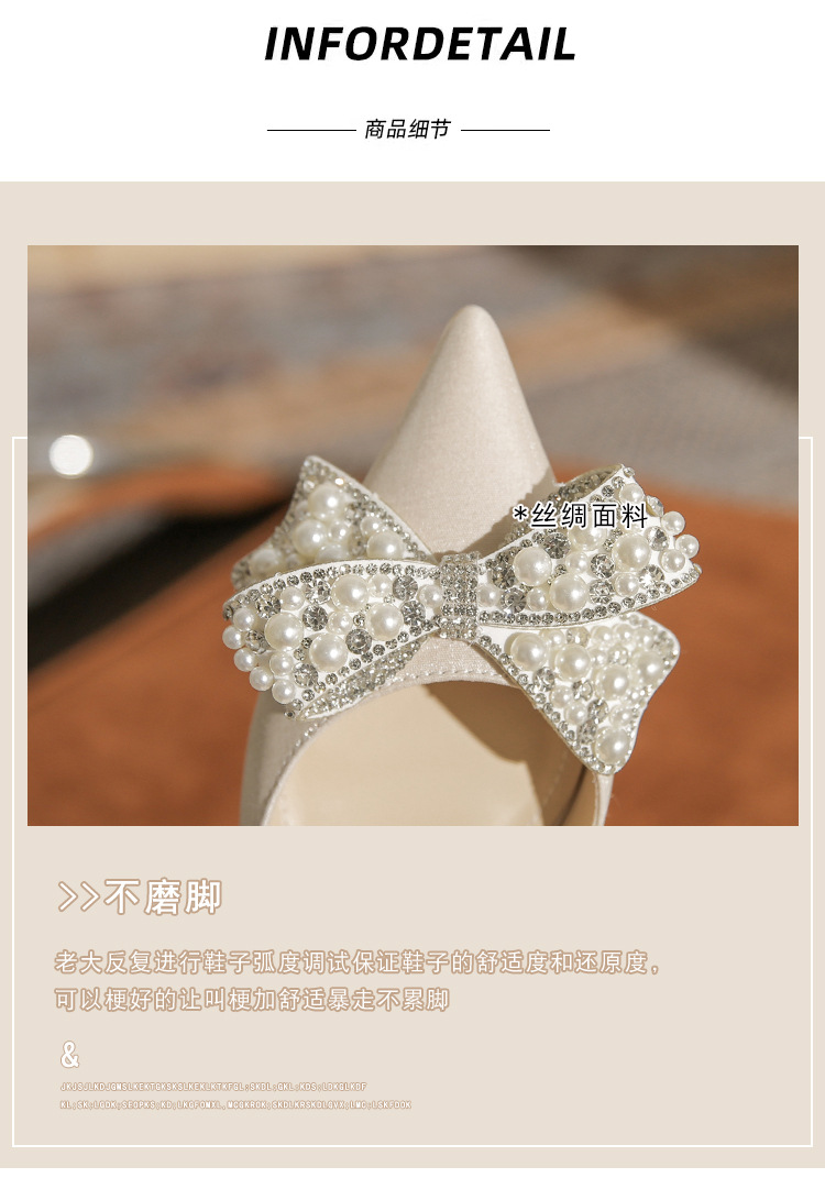 Đôi giày này có phần mũi nhọn và gót thon, tạo dáng thanh thoát. Mẫu mã mới với điểm nhấn là nơ và hạt ngọc tr, kết hợp thêm các chi tiết pha lê lấp lánh bên hông. Kiểu dáng phù hợp để đi trong các dịp đặc biệt. Sử dụng bằng cách mang vừa chân, kết hợp cùng trang phục dạo phố hoặc váy để tôn vẻ nữ tính. | Tên sản phẩm: Giày Cao Gót Nữ Thắt Nơ Bướm Gắn Đá Mũi Nhọn Gót Nhọn Dùng Trong Lễ Cưới - Giày Dép Nữ | Mã sản phẩm: A7762 - Giá: 910.000đ | Mã nhà sản xuất: HUDS-G03Hình ảnh sản phẩm