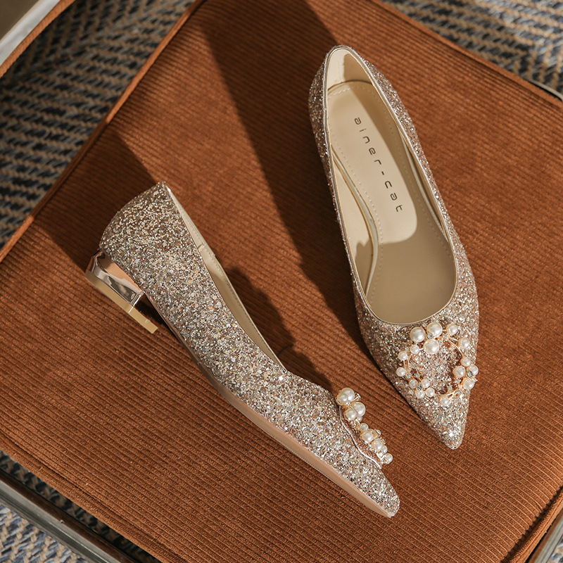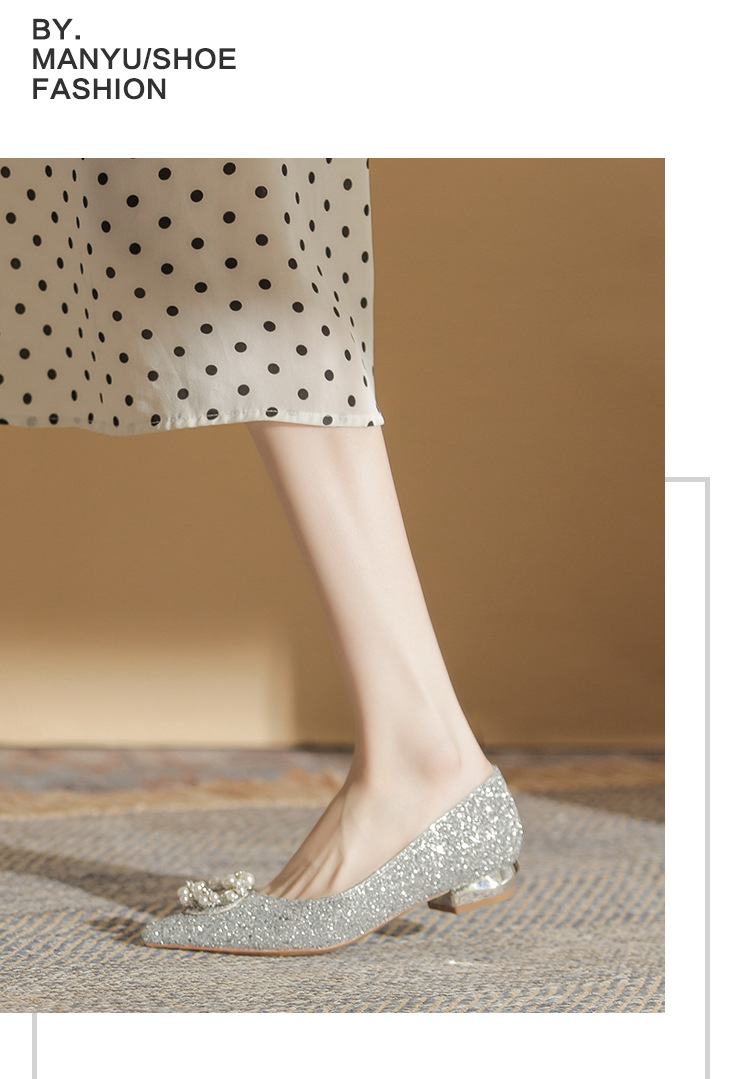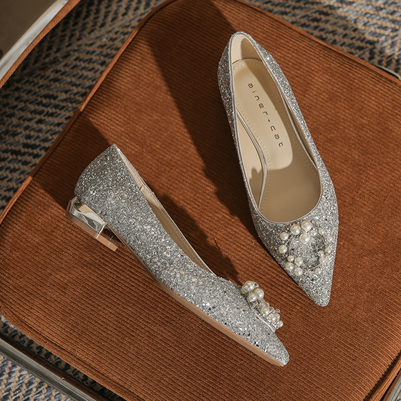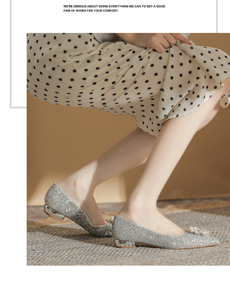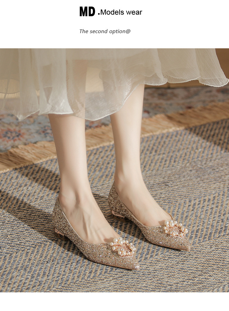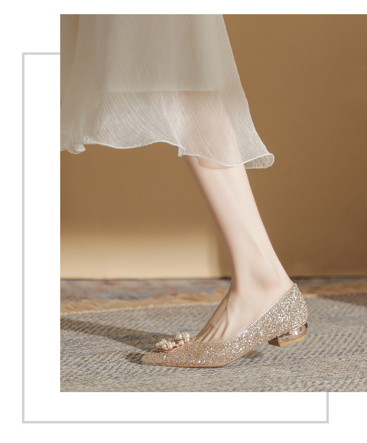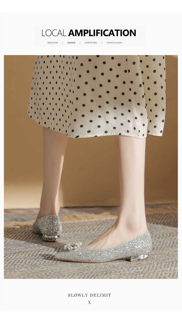 Đôi giày nữ với mũi nhọn thanh lịch, phối cùng đế bằng thấp và mảnh vững chắc. Kiểu dáng cổ thấp ôm gọn bàn chân, dễ dàng phối cùng nhiều trang phục khác nhau. Phần trang trí pha lê trong suốt tạo điểm nhấn tinh tế, phù hợp cho các dịp đặc biệt. Bạn chỉ cần xỏ chân vào và đi, rất tiện lợi và thoải mái cho những hoạt động thường ngày. | Tên sản phẩm: Giày Cao Gót Nữ Mũi Nhọn Gót Vuông Dùng Trong Lễ Cưới - Giày Dép Nữ | Mã sản phẩm: A7796 - Giá: 830.000đ | Mã nhà sản xuất: HUDS-G03Hình ảnh sản phẩm