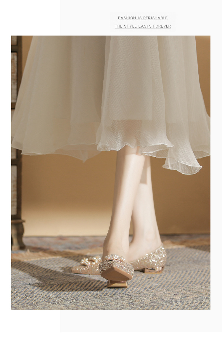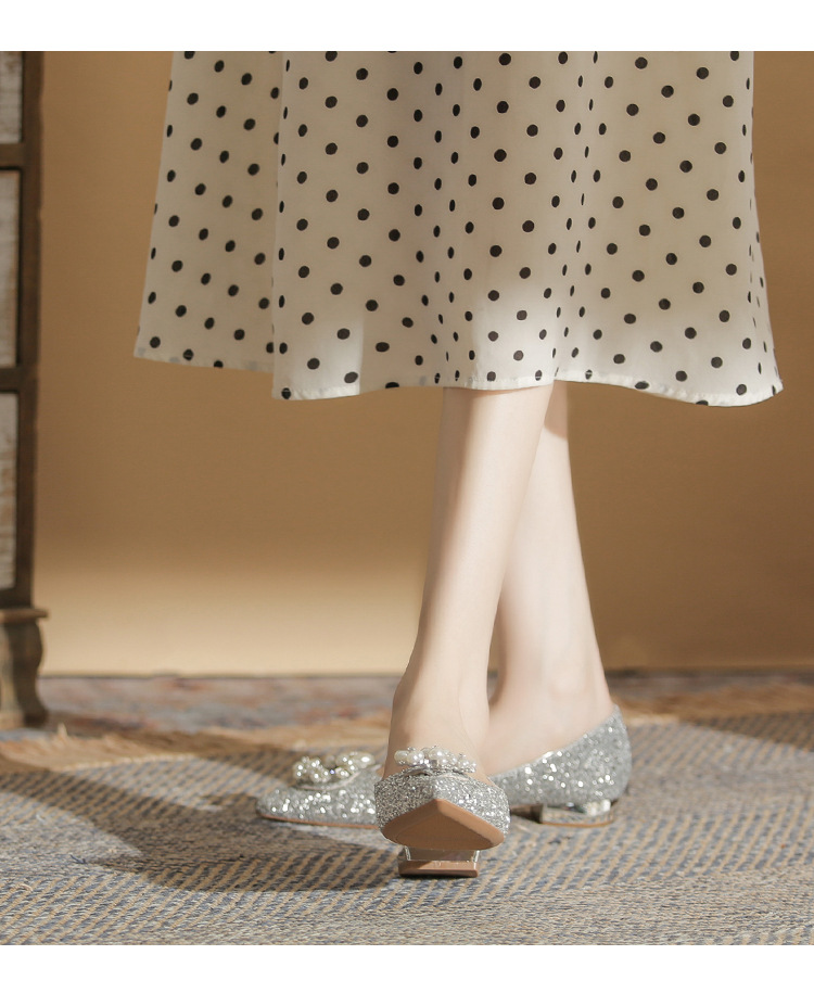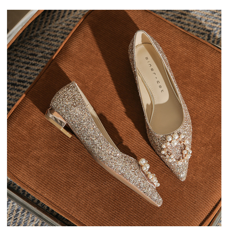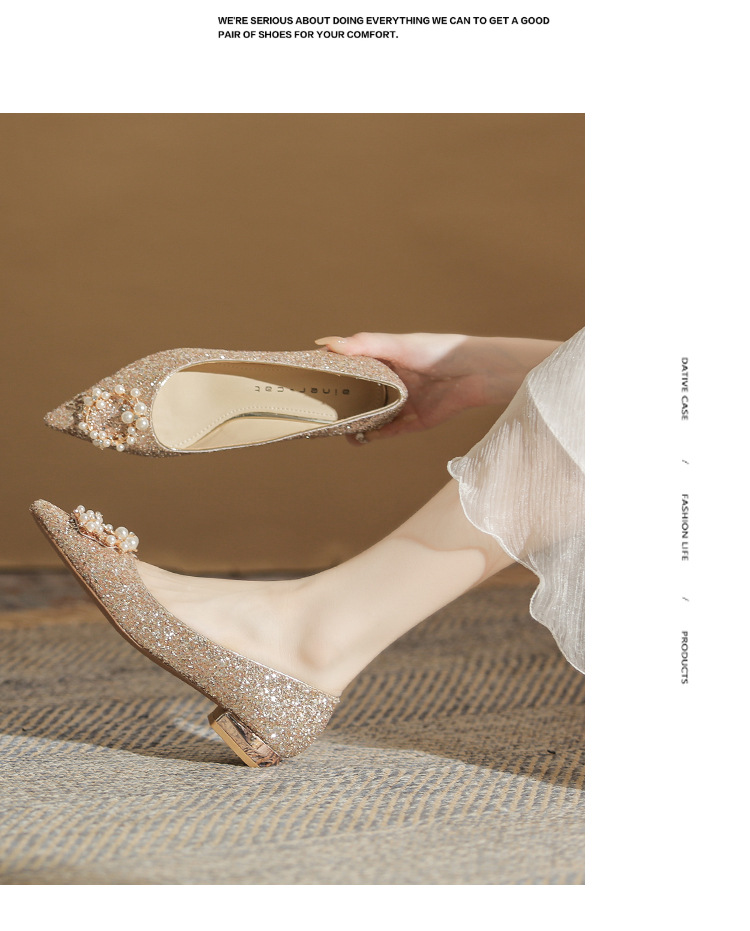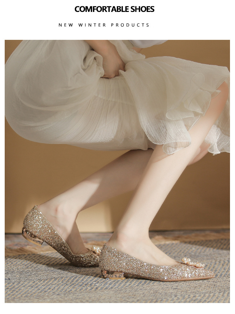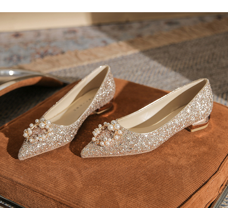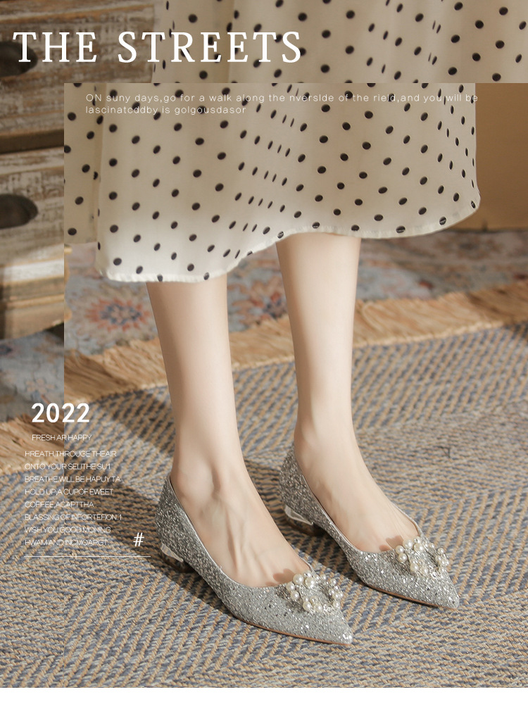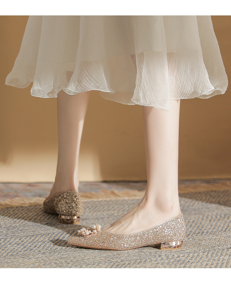 Đôi giày nữ với mũi nhọn thanh lịch, phối cùng đế bằng thấp và mảnh vững chắc. Kiểu dáng cổ thấp ôm gọn bàn chân, dễ dàng phối cùng nhiều trang phục khác nhau. Phần trang trí pha lê trong suốt tạo điểm nhấn tinh tế, phù hợp cho các dịp đặc biệt. Bạn chỉ cần xỏ chân vào và đi, rất tiện lợi và thoải mái cho những hoạt động thường ngày. | Tên sản phẩm: Giày Cao Gót Nữ Mũi Nhọn Gót Vuông Dùng Trong Lễ Cưới - Giày Dép Nữ | Mã sản phẩm: A7796 - Giá: 830.000đ | Mã nhà sản xuất: HUDS-G03Hình ảnh sản phẩm