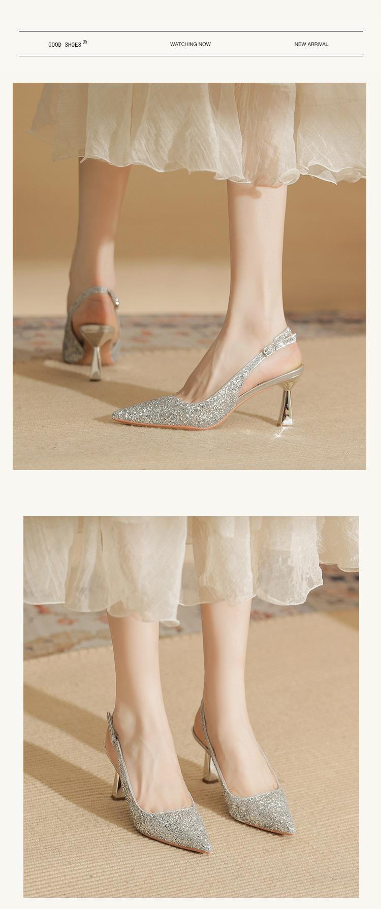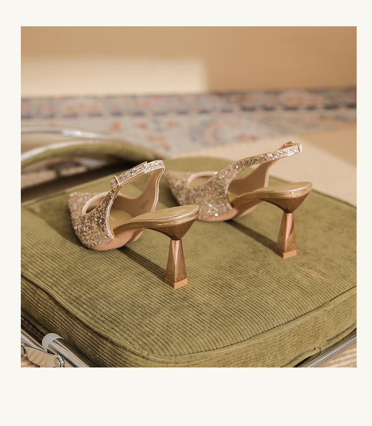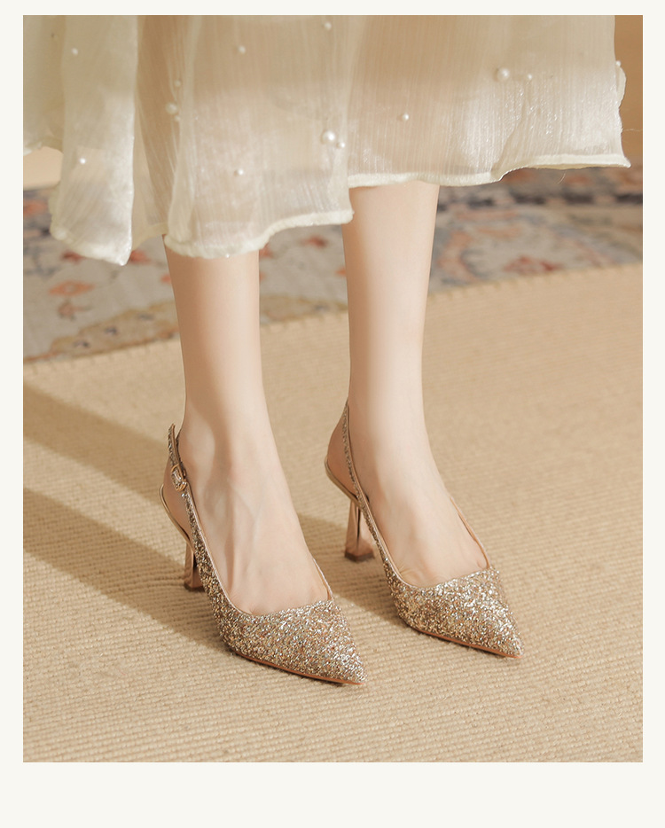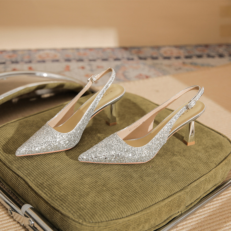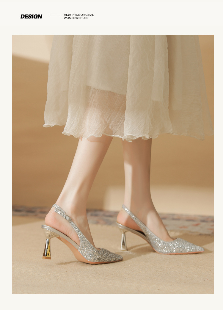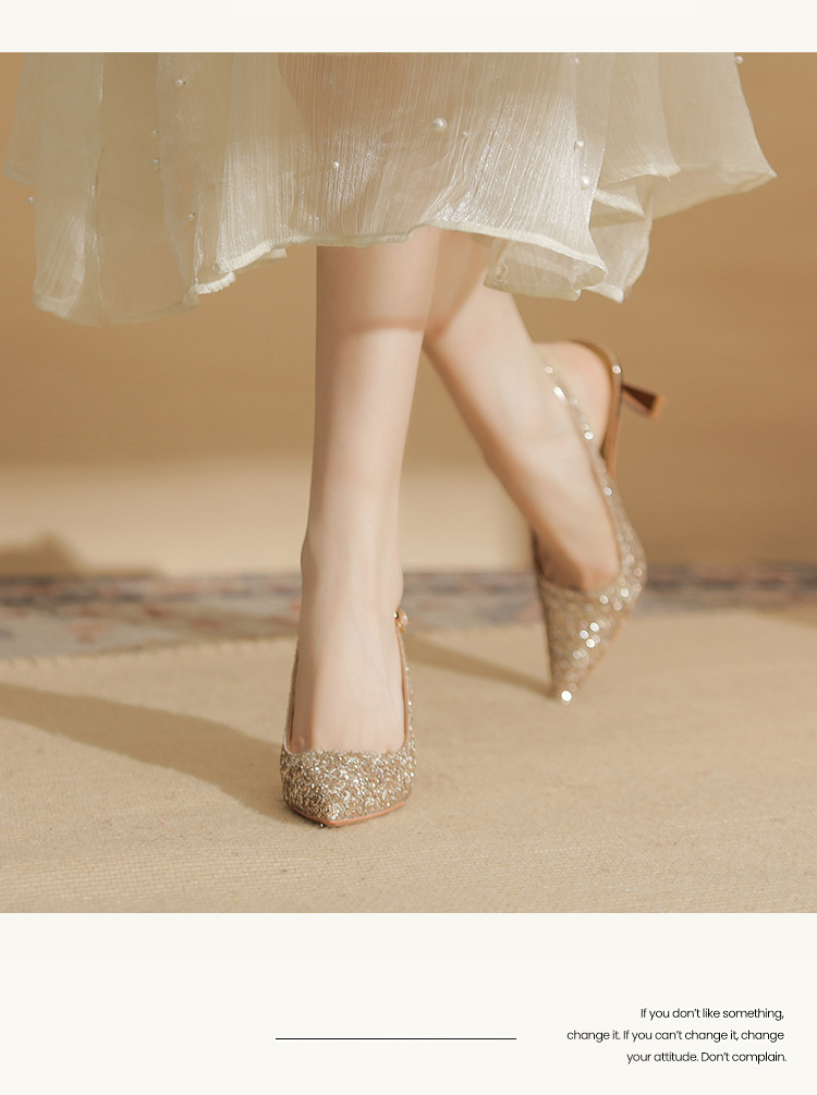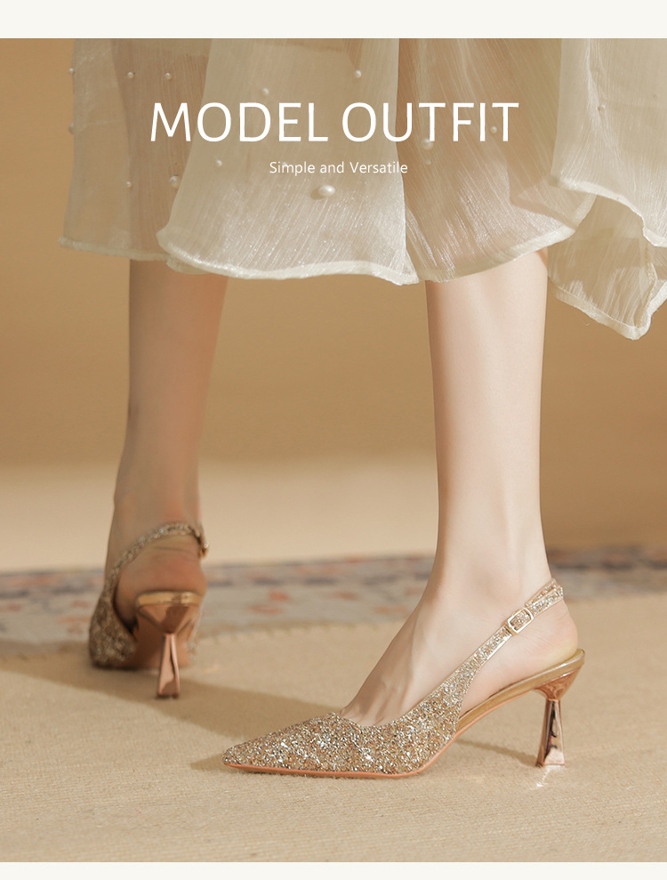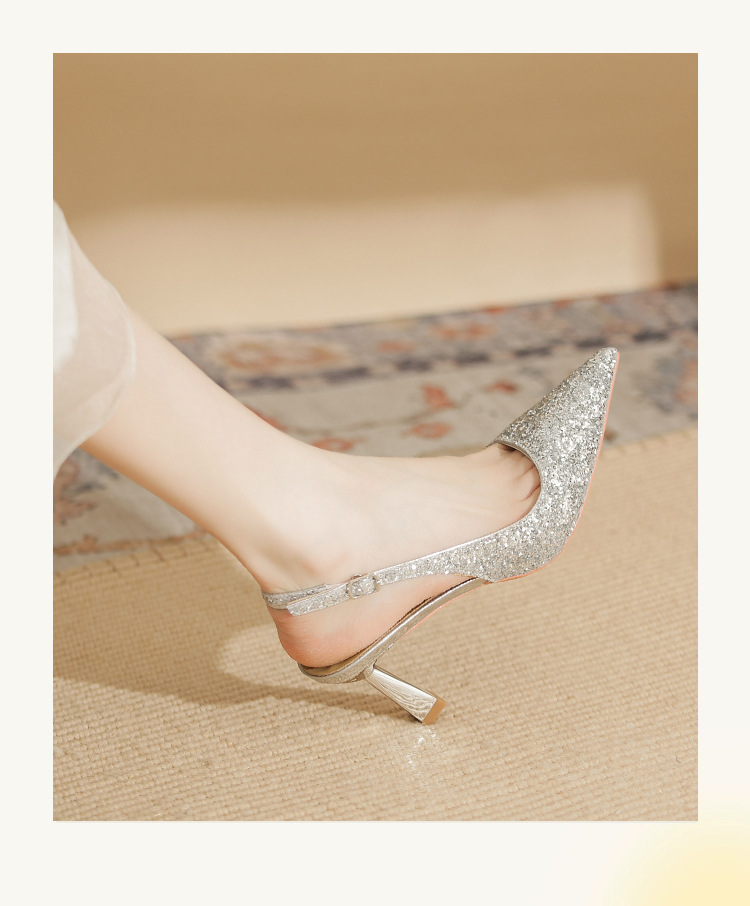 Đôi giày này có phần mũi nhọn và thiết kế hở gót, tạo nên vẻ thanh thoát. Sản phẩm sử dụng chất liệu da mềm mại, mang lại cảm giác dễ chịu khi mang. Kiểu dáng gót nhỏ kiểu cách, phù hợp để kết hợp với nhiều bộ trang phục khác nhau. Bạn có thể dùng nó để đi làm, dự tiệc hoặc trong những dịp quan trọng. Chỉ cần xỏ chân vào và cài qu là đã sẵn sàng để bước đi tự tin. | Tên sản phẩm: Giày Cao Gót Nữ Mũi Nhọn Gót Nhọn Dùng Trong Lễ Cưới - Giày Dép Nữ | Mã sản phẩm: A7811 - Giá: 830.000đ | Mã nhà sản xuất: HUDS-G03Hình ảnh sản phẩm