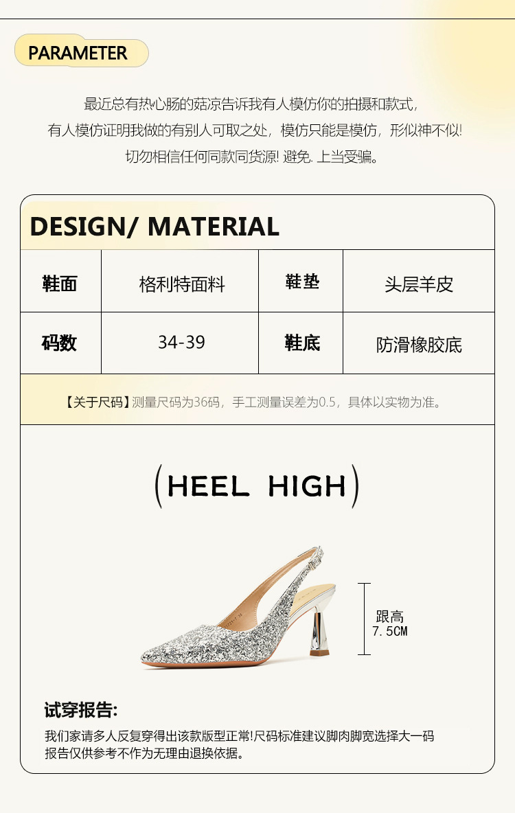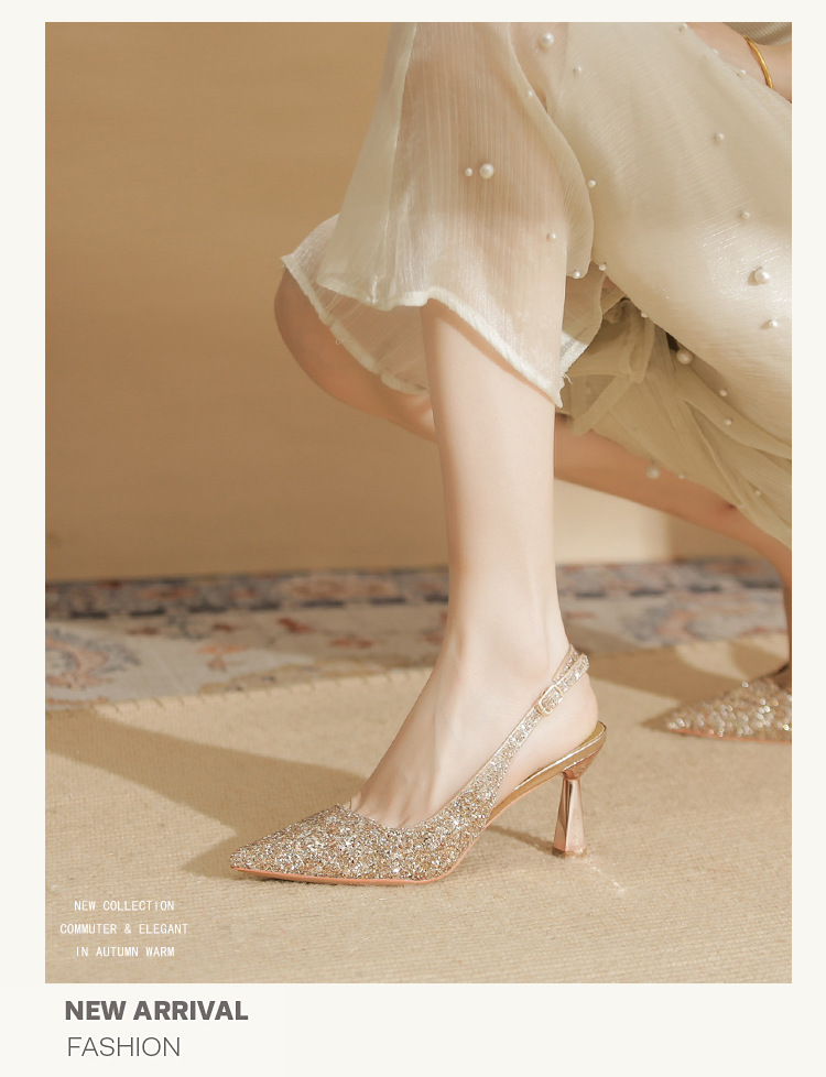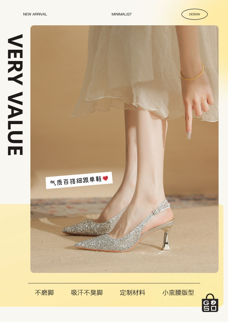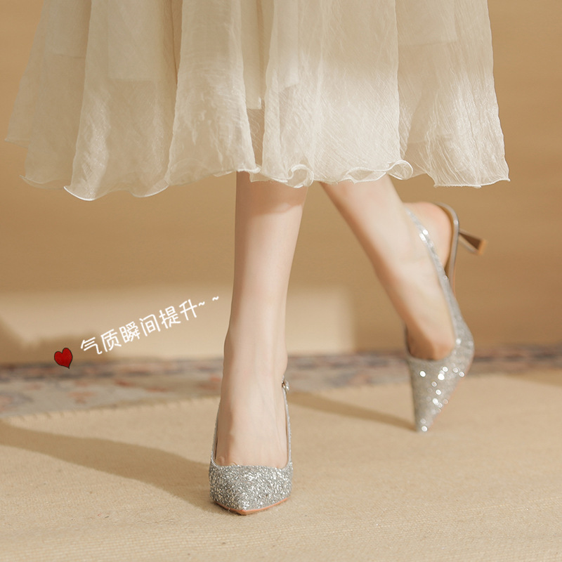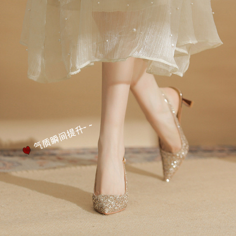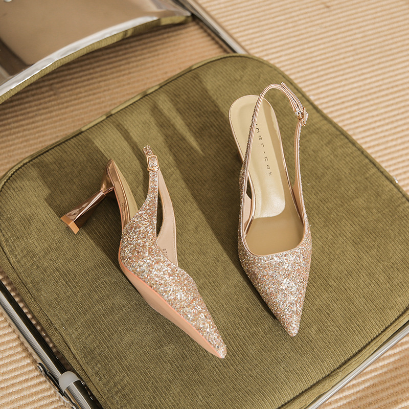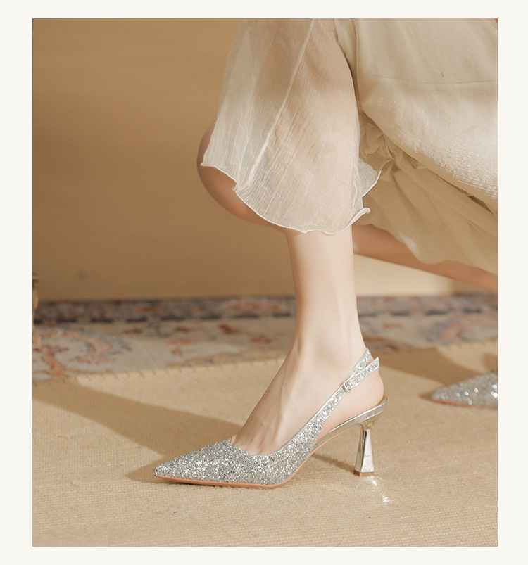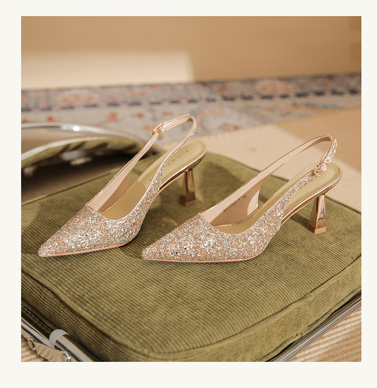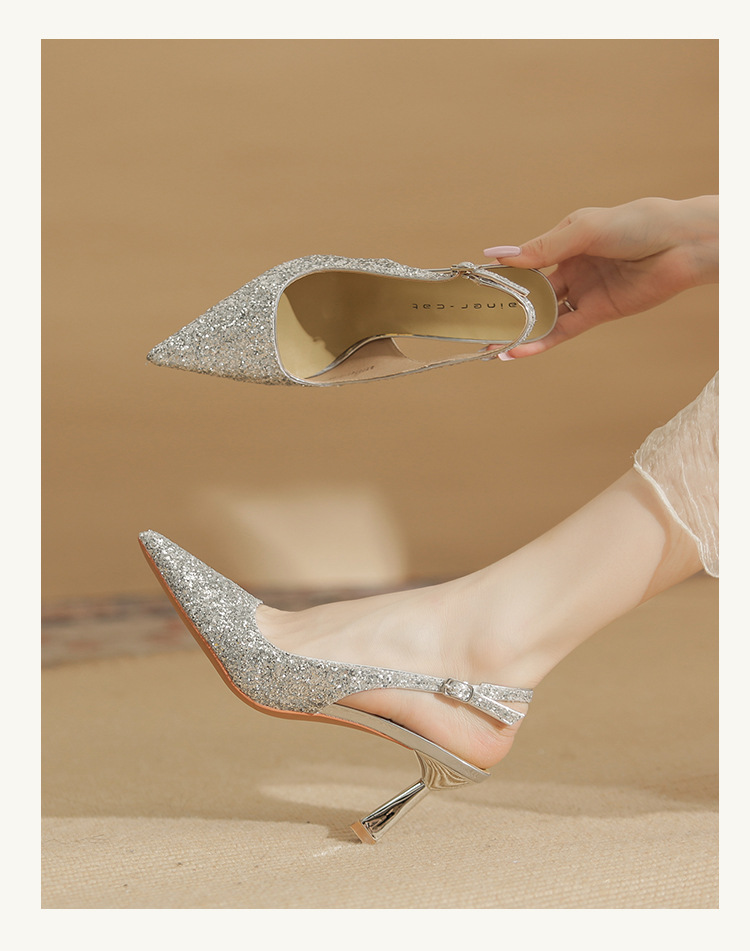Đôi giày này có phần mũi nhọn và thiết kế hở gót, tạo nên vẻ thanh thoát. Sản phẩm sử dụng chất liệu da mềm mại, mang lại cảm giác dễ chịu khi mang. Kiểu dáng gót nhỏ kiểu cách, phù hợp để kết hợp với nhiều bộ trang phục khác nhau. Bạn có thể dùng nó để đi làm, dự tiệc hoặc trong những dịp quan trọng. Chỉ cần xỏ chân vào và cài qu là đã sẵn sàng để bước đi tự tin. | Tên sản phẩm: Giày Cao Gót Nữ Mũi Nhọn Gót Nhọn Dùng Trong Lễ Cưới - Giày Dép Nữ | Mã sản phẩm: A7811 - Giá: 830.000đ | Mã nhà sản xuất: HUDS-G03Hình ảnh sản phẩm