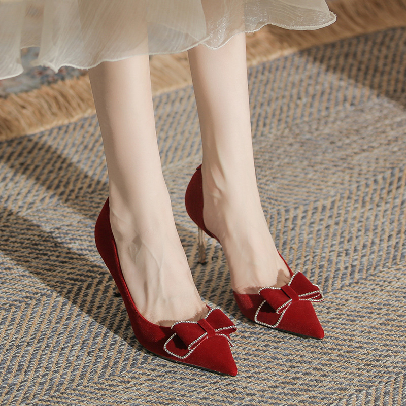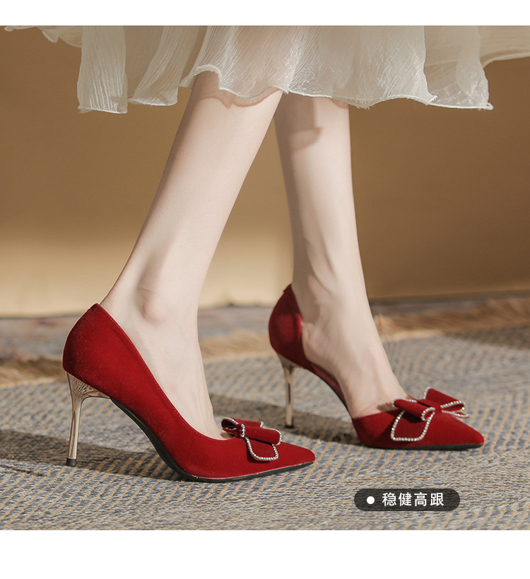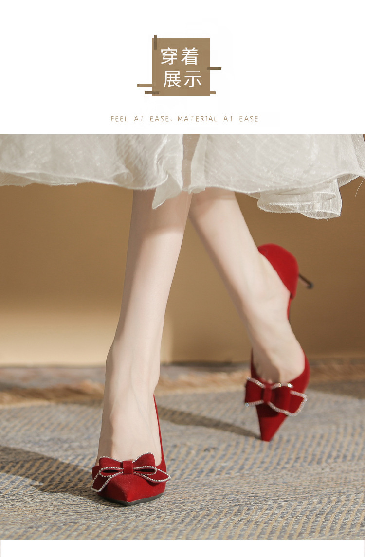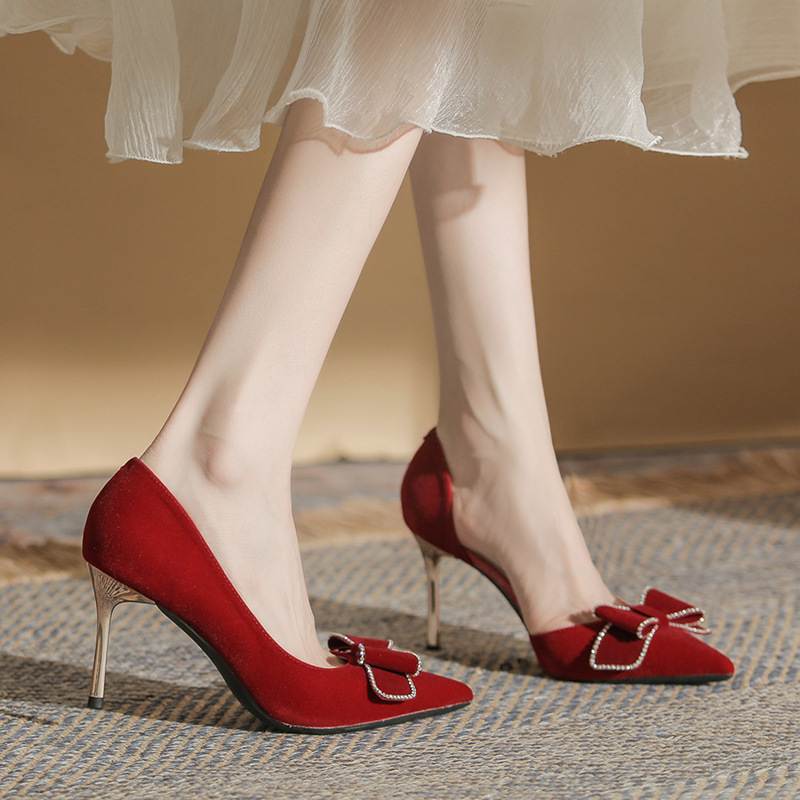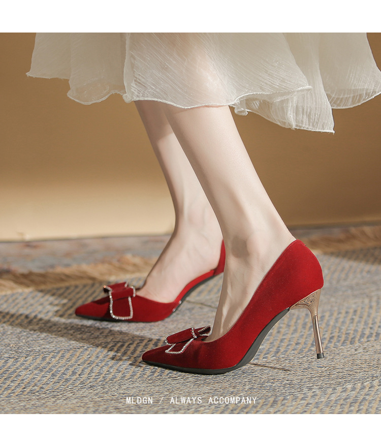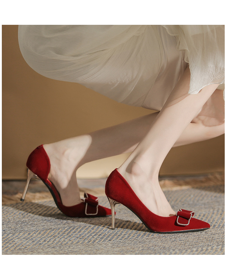 Giày cao gót dành cho nữ với thiết kế mũi nhọn thanh thoát và gót nhọn vững chãi. Phần cổ giày ôm sát, kết hợp khoét eo bên tinh tế, tôn dáng tối đa. Sản phẩm có màu đỏ rực rỡ, phù hợp để phối cùng áo dài hoặc trang phục dự tiệc. Chất liệu da mềm mại, đế cao vừa phải giúp bạn di chuyển thoải mái mà vẫn giữ được vẻ duyên dáng. Dễ dàng phối với nhiều kiểu trang phục khác nhau. | Tên sản phẩm: Giày Cao Gót Nữ Mũi Nhọn Gót Nhọn Dùng Trong Lễ Cưới - Giày Dép Nữ | Mã sản phẩm: A7814 - Giá: 840.000đ | Mã nhà sản xuất: HUDS-G03Hình ảnh sản phẩm