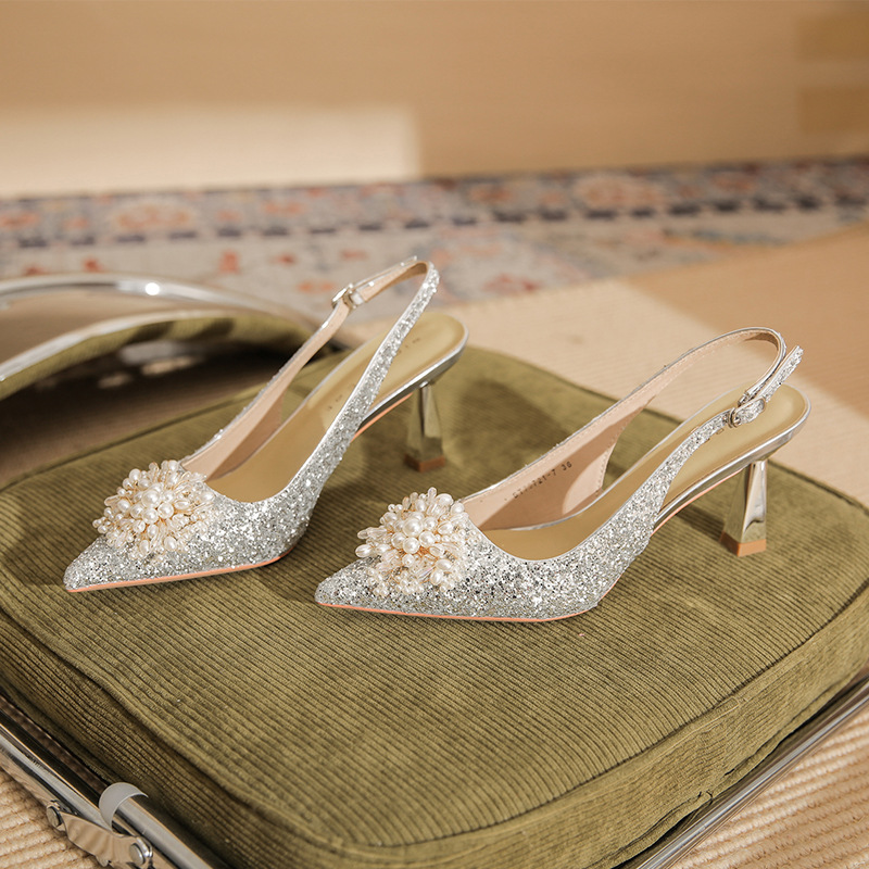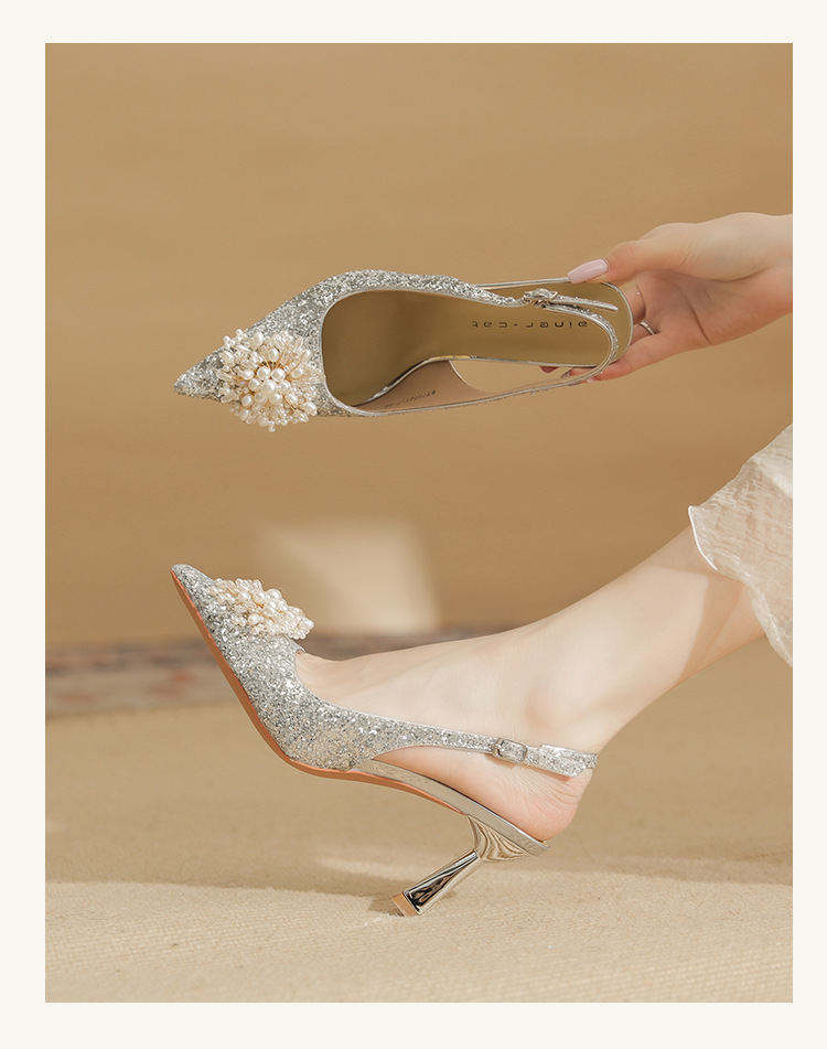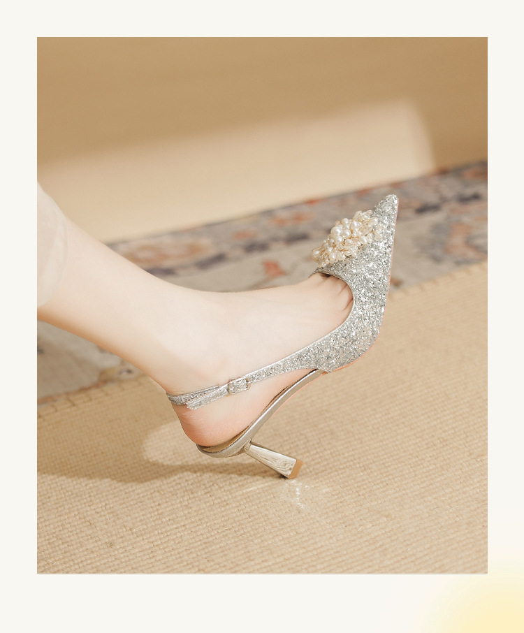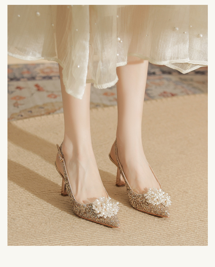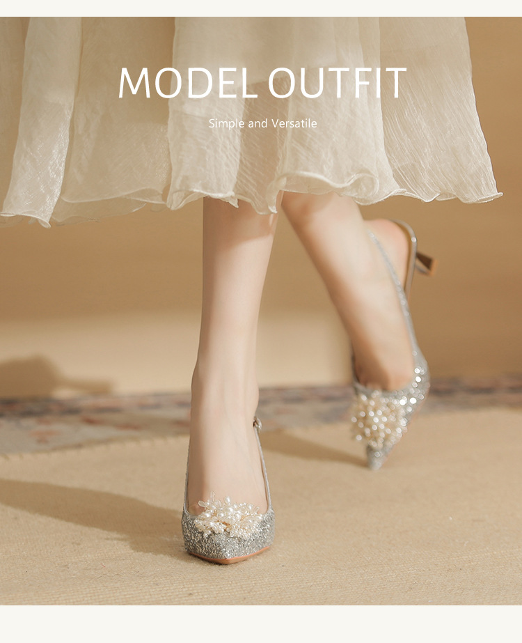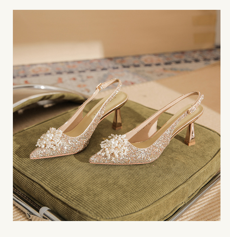 Đôi giày này có phần gót cao và mảnh, kiểu dáng mũi nhọn, là mẫu mới cho các dịp đặc biệt. Trên thân giày được điểm xuyết những hạt ngọc tr lấp lánh cùng nhiều miếng trang trí ánh sáng, tạo nên vẻ đẹp nổi bật và tinh tế. Chất liệu da mềm mại ôm chân một cách dễ chịu. Bạn có thể phối cùng váy dự tiệc hoặc trang phục đi làm để tôn lên sự tự tin và nét duyên dáng của mình. | Tên sản phẩm: Giày Cao Gót Nữ Mũi Nhọn Gót Nhọn Dùng Trong Lễ Cưới - Giày Dép Nữ | Mã sản phẩm: A7833 - Giá: 1.020.000đ | Mã nhà sản xuất: HUDS-G03Hình ảnh sản phẩm