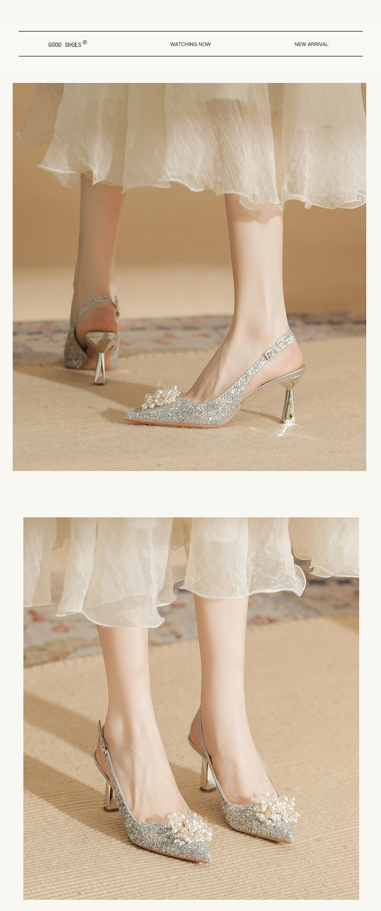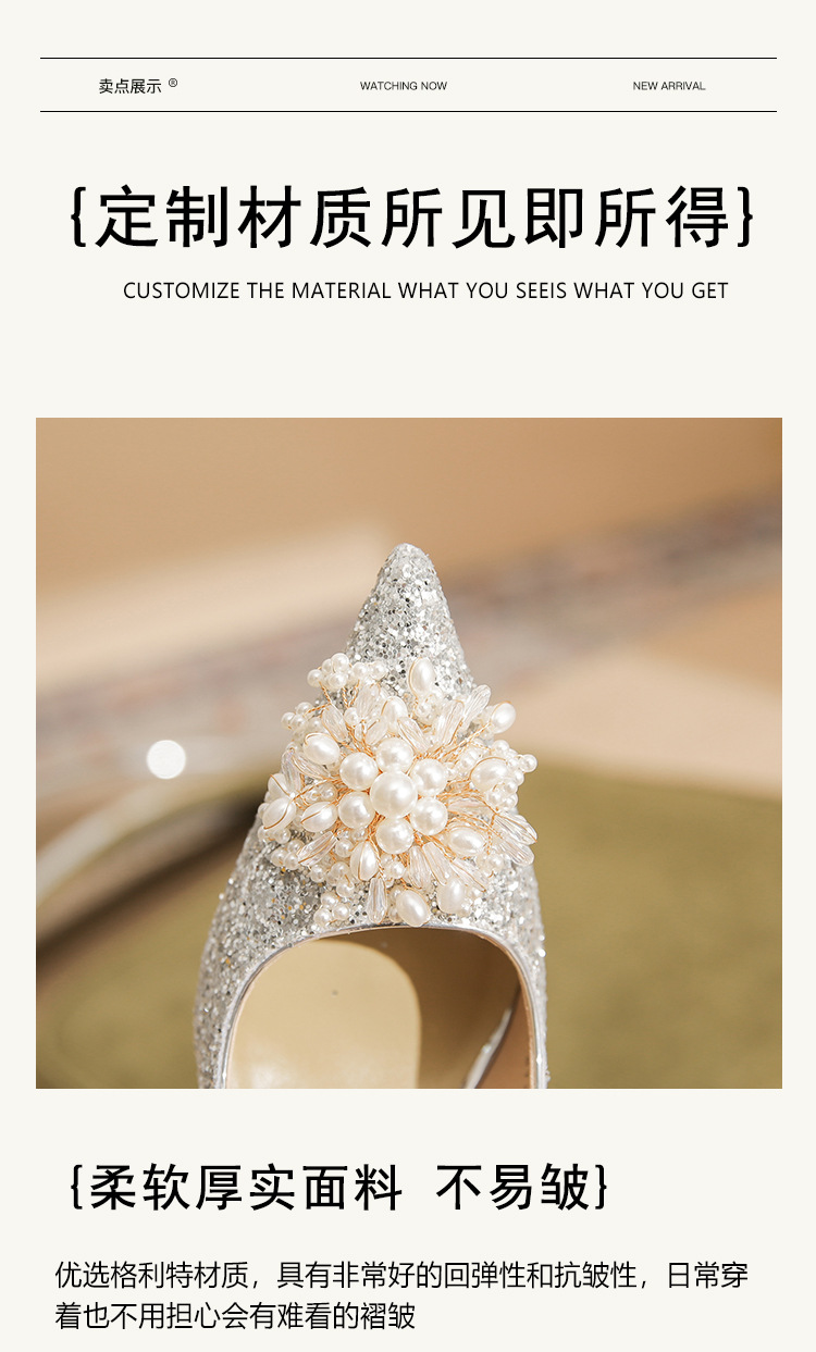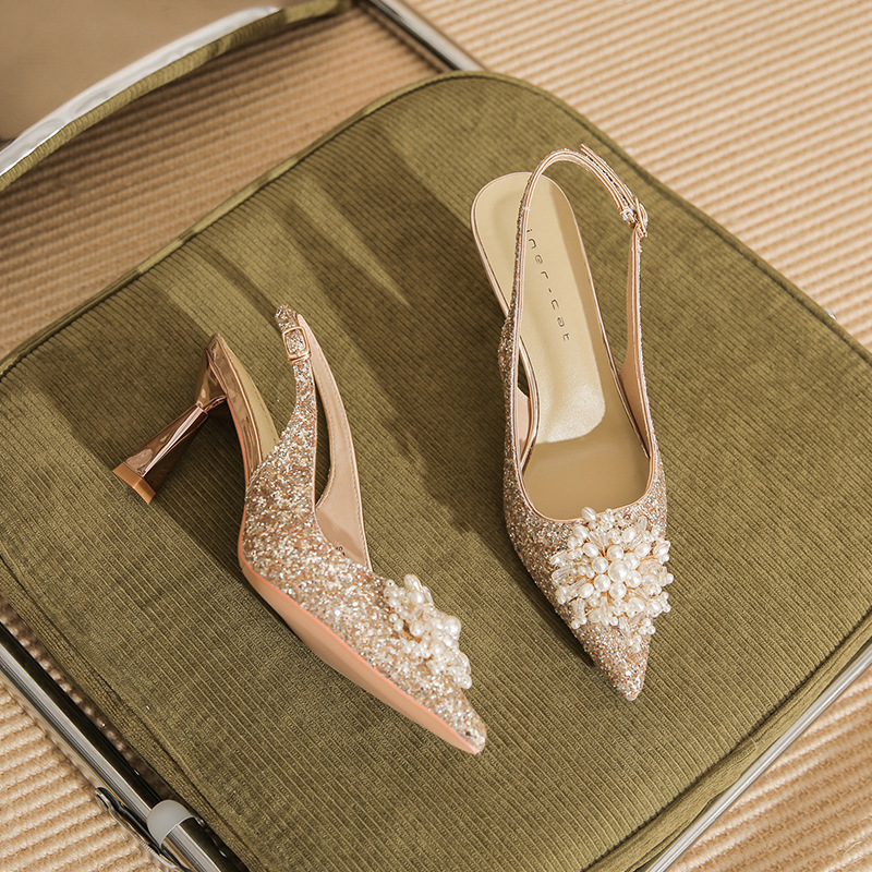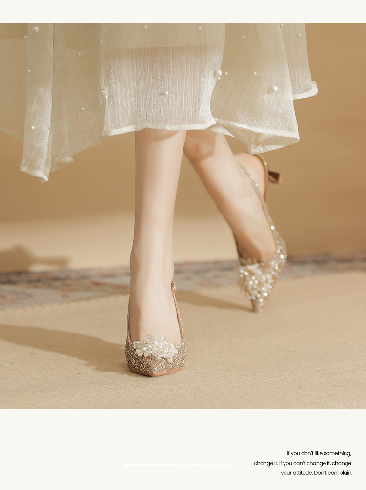 Đôi giày này có phần gót cao và mảnh, kiểu dáng mũi nhọn, là mẫu mới cho các dịp đặc biệt. Trên thân giày được điểm xuyết những hạt ngọc tr lấp lánh cùng nhiều miếng trang trí ánh sáng, tạo nên vẻ đẹp nổi bật và tinh tế. Chất liệu da mềm mại ôm chân một cách dễ chịu. Bạn có thể phối cùng váy dự tiệc hoặc trang phục đi làm để tôn lên sự tự tin và nét duyên dáng của mình. | Tên sản phẩm: Giày Cao Gót Nữ Mũi Nhọn Gót Nhọn Dùng Trong Lễ Cưới - Giày Dép Nữ | Mã sản phẩm: A7833 - Giá: 1.020.000đ | Mã nhà sản xuất: HUDS-G03Hình ảnh sản phẩm