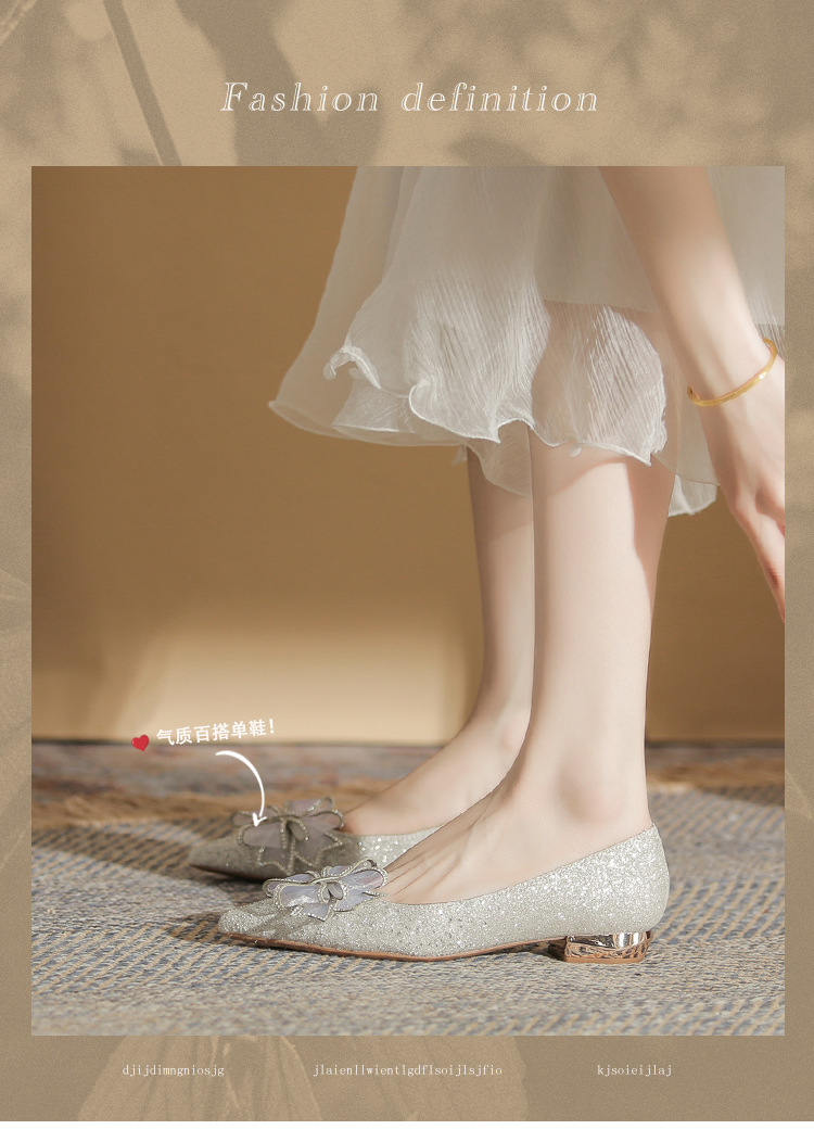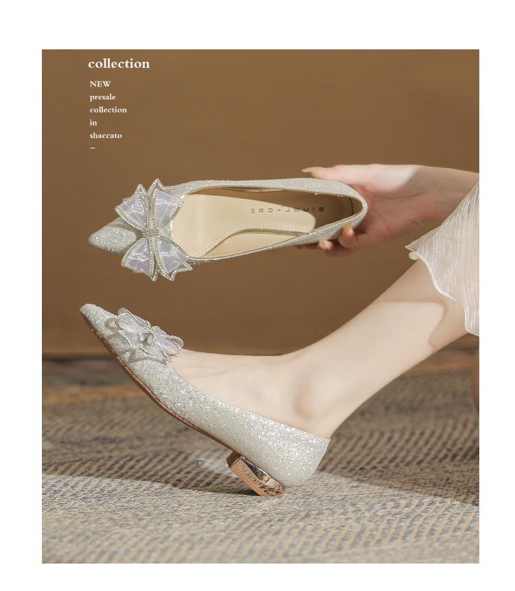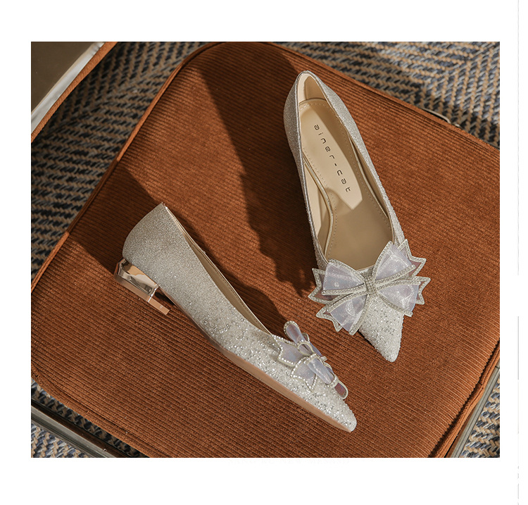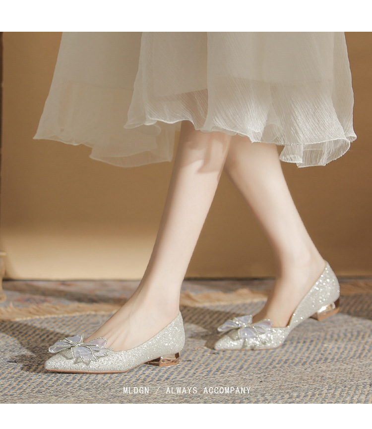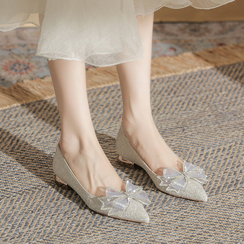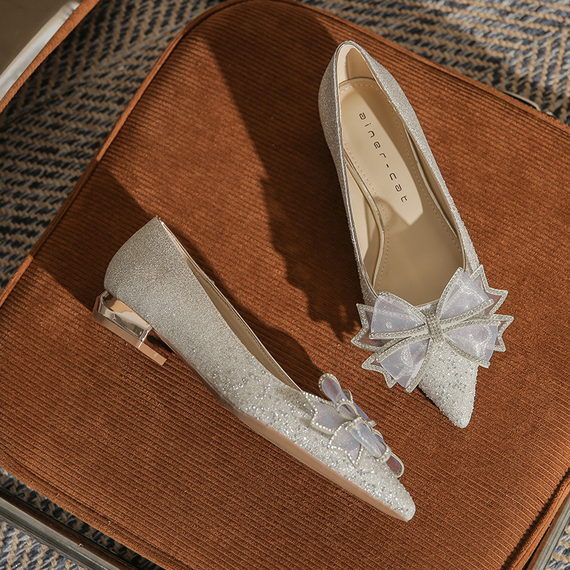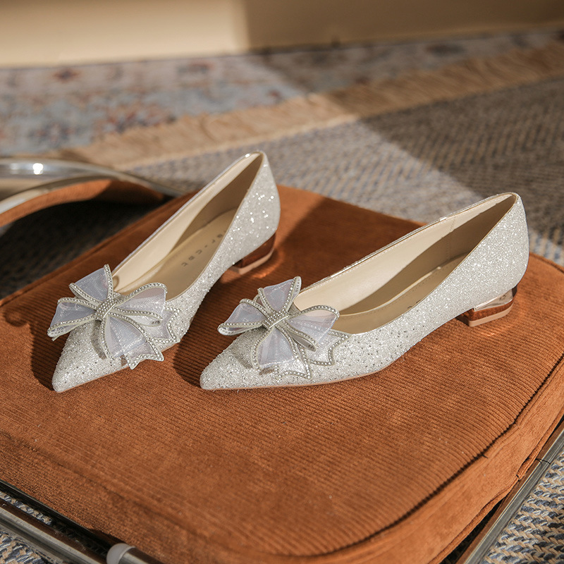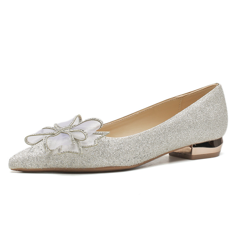 Đôi giày đế bằng dành cho nữ với thiết kế mũi nhọn thanh lịch. Sản phẩm có phần gót thấp vững chãi, giúp bạn di chuyển thoải mái cả ngày. Phần cổ giày được điểm xuyết bằng nơ thắt duyên dáng, kết hợp cùng các hạt ánh sáng lấp lánh tinh tế. Kiểu dáng cổ điển, dễ dàng phối hợp với nhiều trang phục khác nhau. Sử dụng phù hợp cho nhiều dịp như đi làm, dự tiệc hoặc trong những ngày trọng đại. | Tên sản phẩm: Giày Cao Gót Nữ Thắt Nơ Bướm Mũi Nhọn Gót Vuông Dùng Trong Lễ Cưới - Giày Dép Nữ | Mã sản phẩm: A7858 - Giá: 1.000.000đ | Mã nhà sản xuất: HUDS-G03Hình ảnh sản phẩm