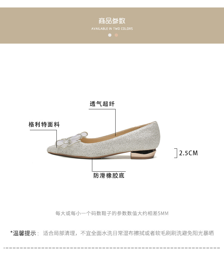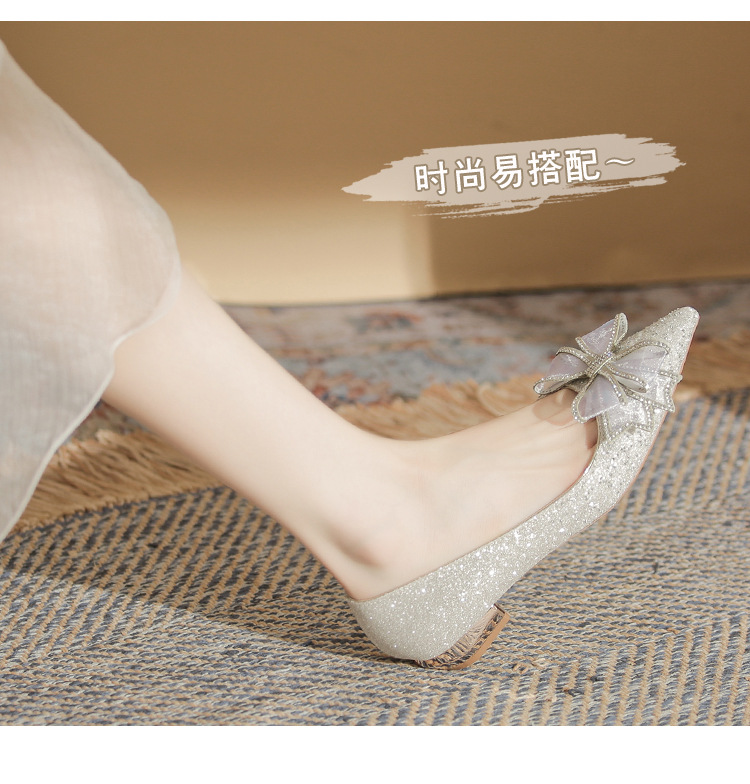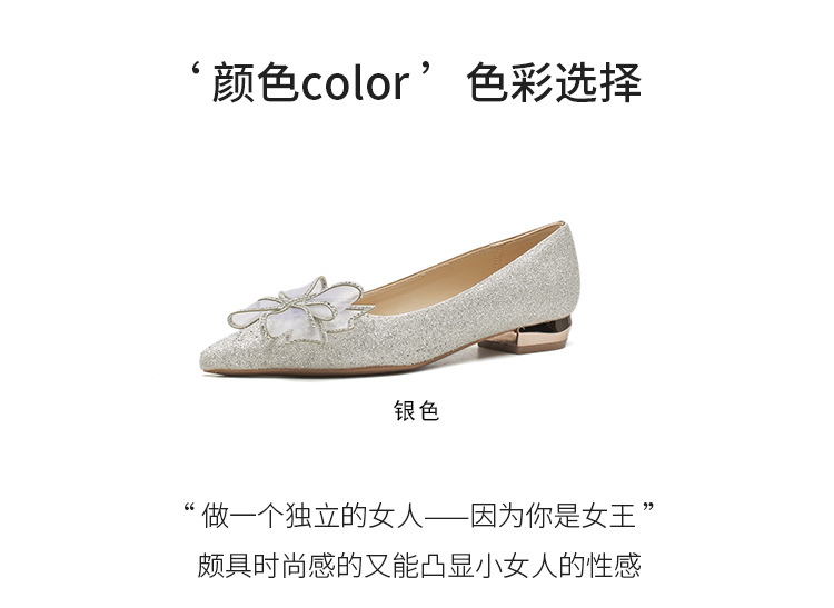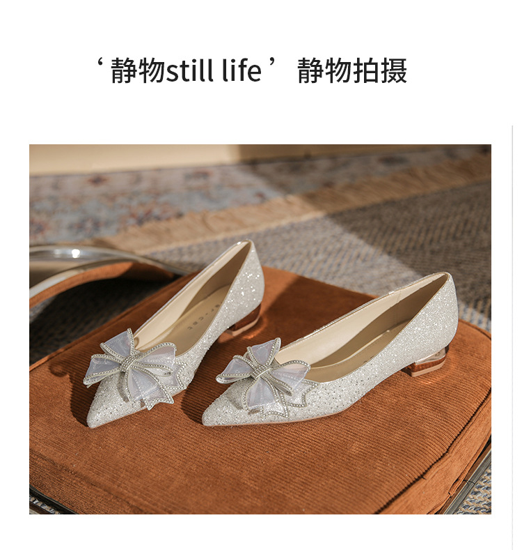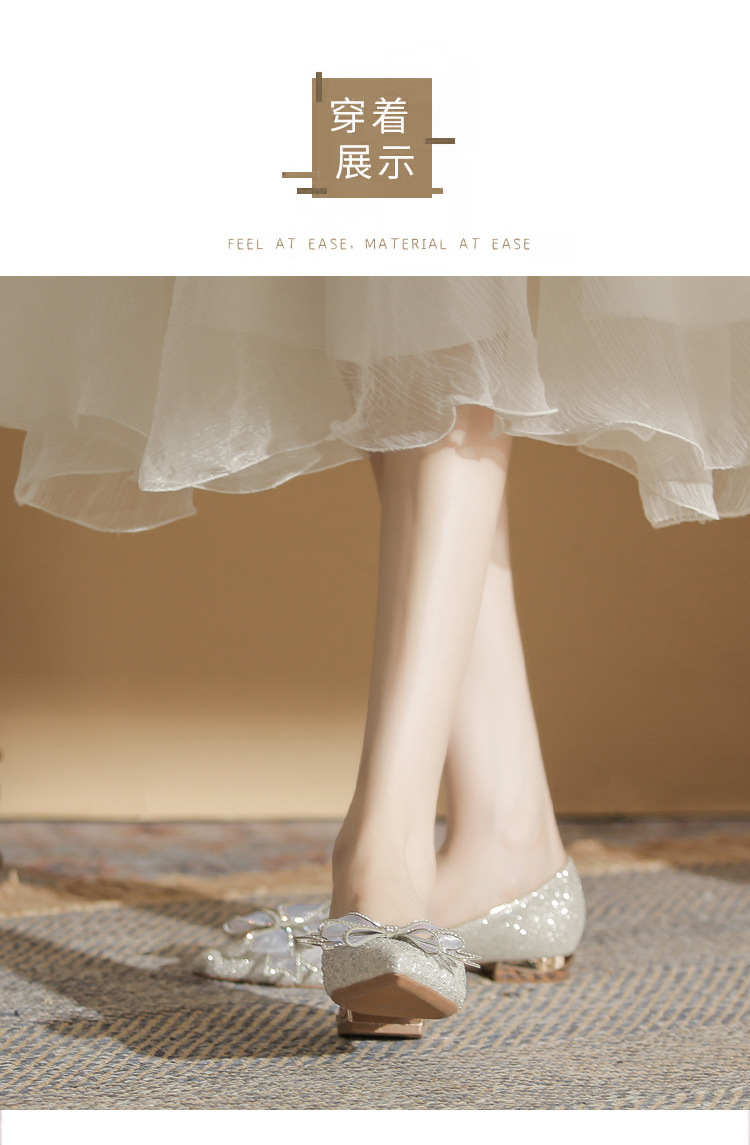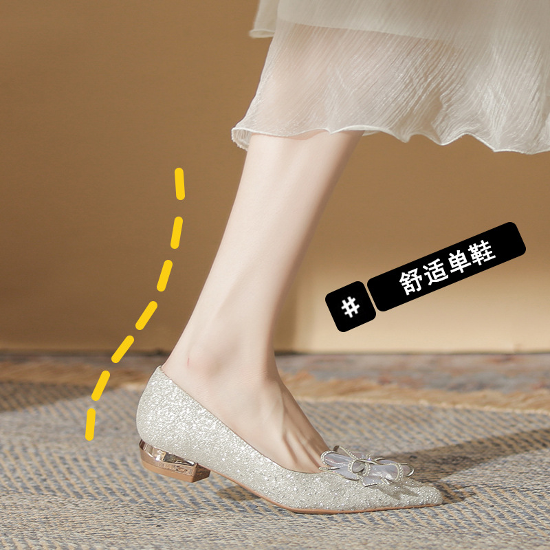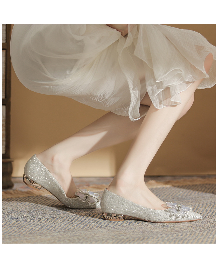 Đôi giày đế bằng dành cho nữ với thiết kế mũi nhọn thanh lịch. Sản phẩm có phần gót thấp vững chãi, giúp bạn di chuyển thoải mái cả ngày. Phần cổ giày được điểm xuyết bằng nơ thắt duyên dáng, kết hợp cùng các hạt ánh sáng lấp lánh tinh tế. Kiểu dáng cổ điển, dễ dàng phối hợp với nhiều trang phục khác nhau. Sử dụng phù hợp cho nhiều dịp như đi làm, dự tiệc hoặc trong những ngày trọng đại. | Tên sản phẩm: Giày Cao Gót Nữ Thắt Nơ Bướm Mũi Nhọn Gót Vuông Dùng Trong Lễ Cưới - Giày Dép Nữ | Mã sản phẩm: A7858 - Giá: 1.000.000đ | Mã nhà sản xuất: HUDS-G03Hình ảnh sản phẩm