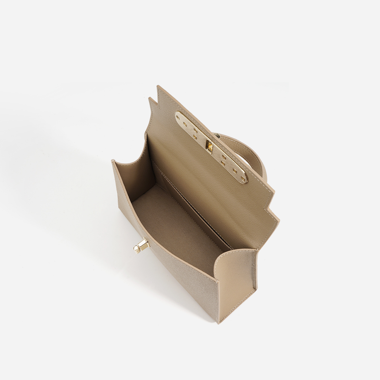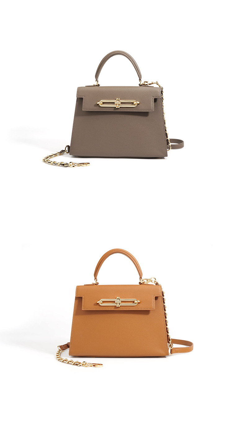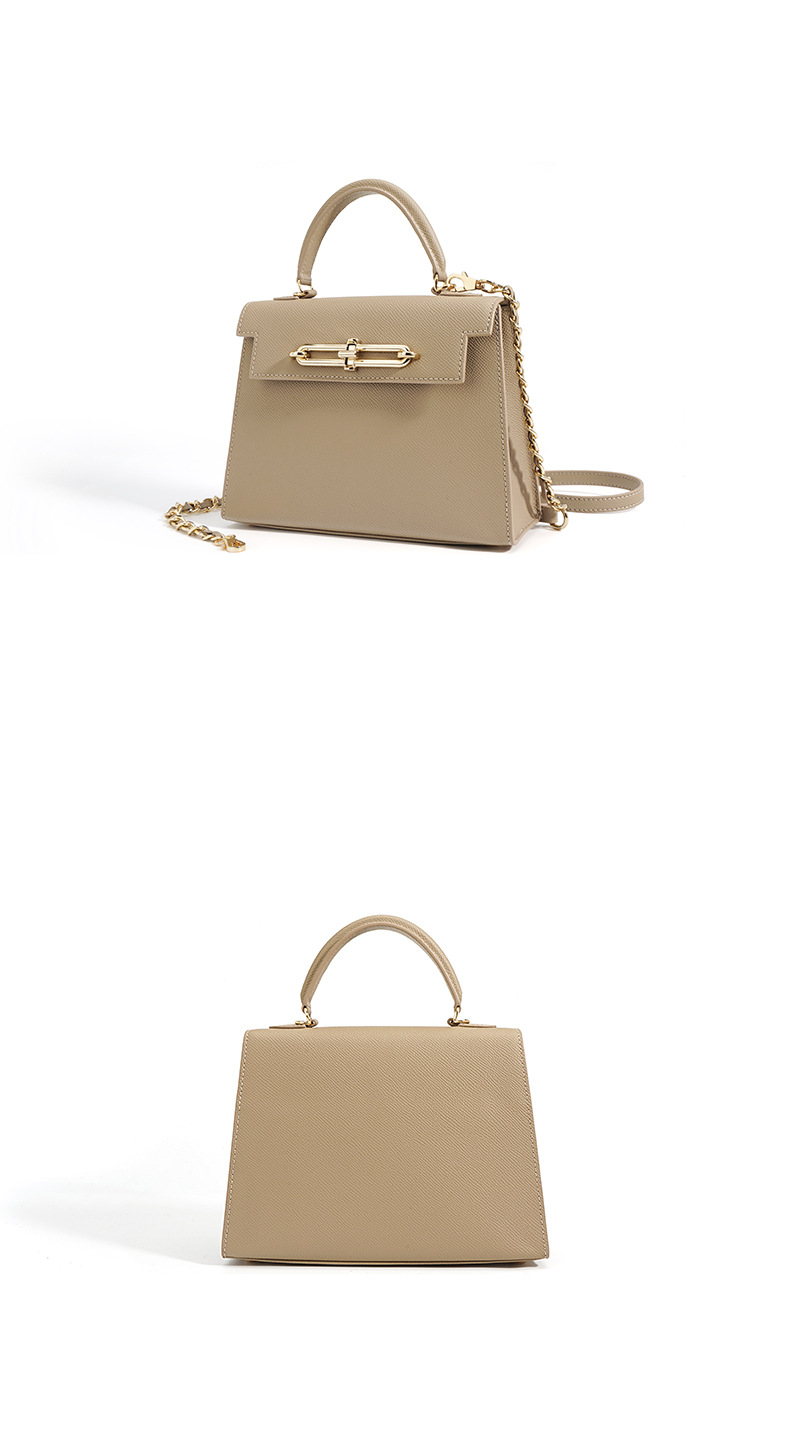 Túi xách tay dáng vuông vức, phù hợp cho việc đi làm hoặc dạo phố. Sản phẩm được làm từ chất liệu da bò mềm mại, có qu đeo tay và dây xích để mang v hoặc khoác chéo. Thiết kế có nắp gập với khóa cài tiện lợi, giúp bảo vệ các vật dụng bên trong một cách an toàn. Kích thước vừa phải, đựng vừa ví, điện thoại và một số đồ dùng cá nhân cần thiết. Dễ dàng phối hợp với nhiều trang phục khác nhau. | Tên sản phẩm: Túi Xách Nữ Chất Liệu Da Bò - Túi Ví Nữ | Mã sản phẩm: A7860 - Giá: 423.660.000đ | Mã nhà sản xuất: GUDEA-Hình ảnh sản phẩm