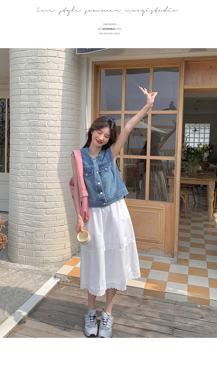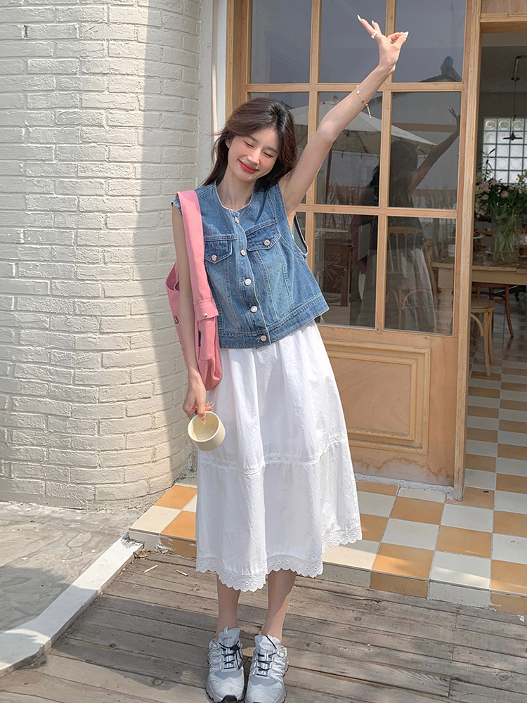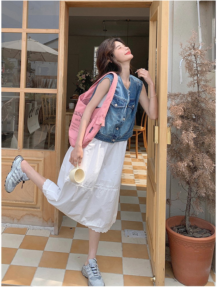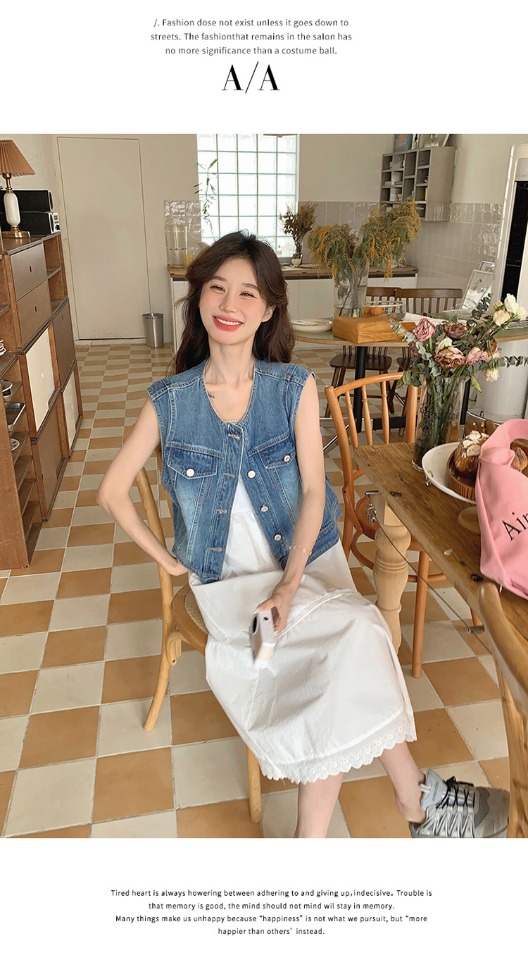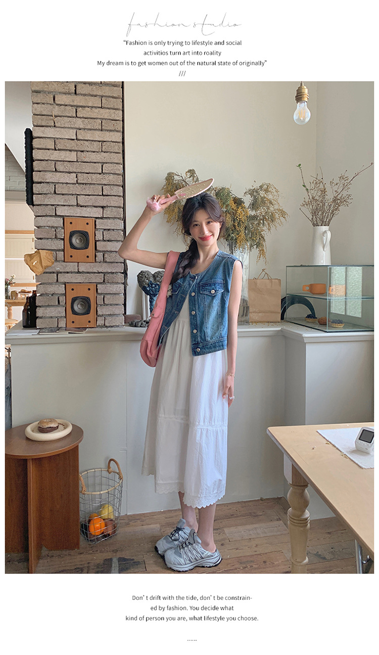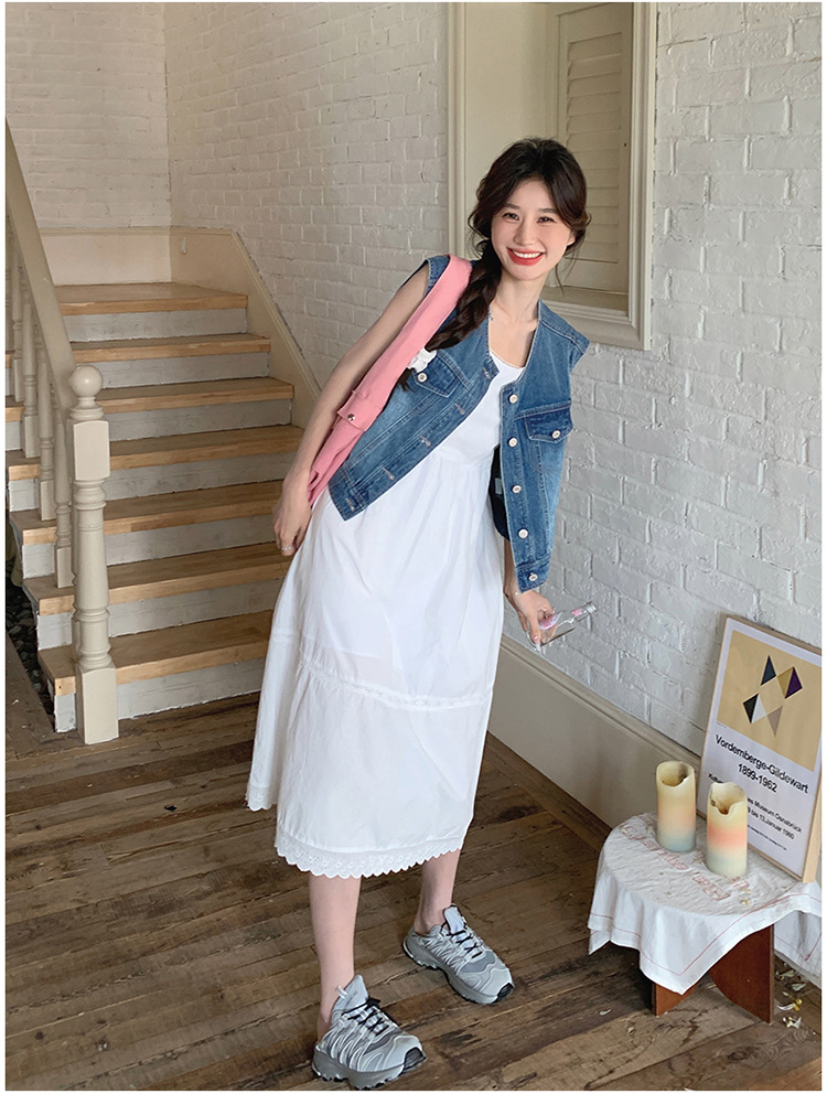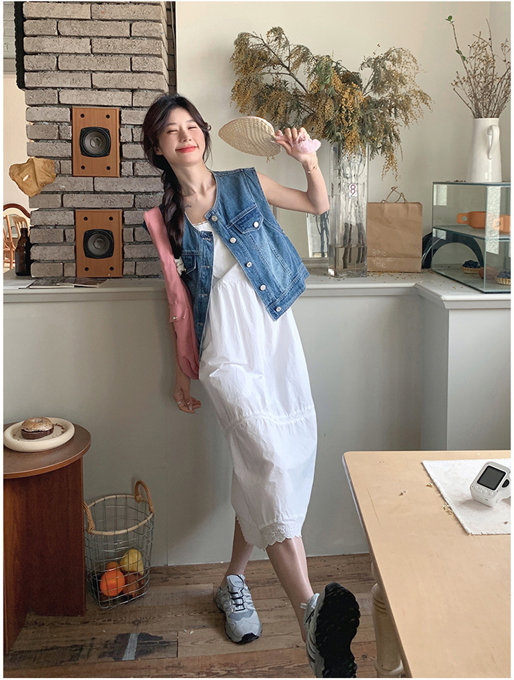 Bộ trang phục gồm áo khoác dáng veste và đầm hai dây, phù hợp cho mùa hè. Chất liệu vải dệt denim cho phần áo, tạo cảm giác thoải mái và dễ vận động. Đầm có thiết kế ôm nhẹ, giúp tôn dáng một cách tự nhiên. Có thể mặc riêng lẻ từng món hoặc kết hợp cùng nhau cho nhiều phong cách khác nhau. Màu sắc chủ đạo là trắng, dễ dàng phối đồ. | Tên sản phẩm: Áo Hai Dây Nữ Chất Liệu Jean Bò Hai Dây Hở Vai Trông Trẻ Hơn Tuổi Hàng Mùa Hè - Thời Trang Nữ | Mã sản phẩm: A7894 - Giá: 1.490.000đ | Mã nhà sản xuất: HADT-G04Hình ảnh sản phẩm