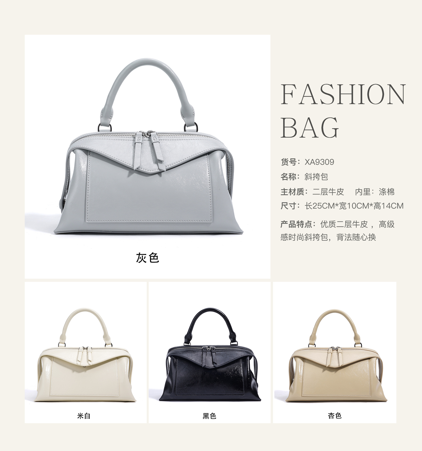 Chiếc túi xách tay này có kiểu dáng độc đáo như một chiếc bánh bao xinh xắn, được làm từ chất liệu da mềm mịn. Thiết kế đơn giản nhưng không kém phần tinh tế, dễ dàng phối hợp với nhiều trang phục. Bạn có thể xách tay một cách thanh lịch hoặc đeo chéo v một cách thoải mái và tiện lợi. Đây là người bạn đồng hành lý tưởng cho những hoạt động thường ngày, giúp bạn mang theo các vật dụng cá nhân một cách gọn gàng. | Tên sản phẩm: Túi Xách Nữ Chất Liệu Da Bò - Túi Ví Nữ | Mã sản phẩm: A7909 - Giá: 1.340.000đ | Mã nhà sản xuất: GUDEA-G04Hình ảnh sản phẩm