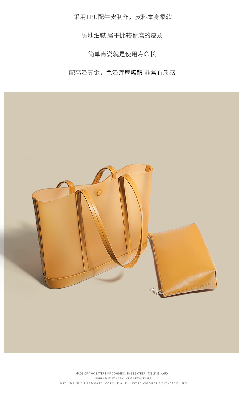 Túi xách lớn có kèm túi con nhỏ tiện lợi, được làm từ chất liệu da thật bền đẹp. Kiểu dáng túi tote hiện đại, phù hợp cho việc di chuyển hằng ngày hay đi làm. Thiết kế một qu đeo v chắc chắn, bên trong rộng rãi giúp đựng được nhiều vật dụng cá nhân như tài liệu, ví và các vật dụng cần thiết khác. Cách sử dụng đơn giản, bạn chỉ cần đeo v và sắp xếp đồ dùng gọn gàng bên trong. Đây là mẫu túi mới cho mùa xuân hè, mang đến vẻ ngoài năng động. | Tên sản phẩm: Túi Đeo Vai Nữ Chất Liệu Da Bò Hàng Mùa Hè - Túi Ví Nữ | Mã sản phẩm: A7929 - Giá: 990.000đ | Mã nhà sản xuất: GUDEA-G03Hình ảnh sản phẩm