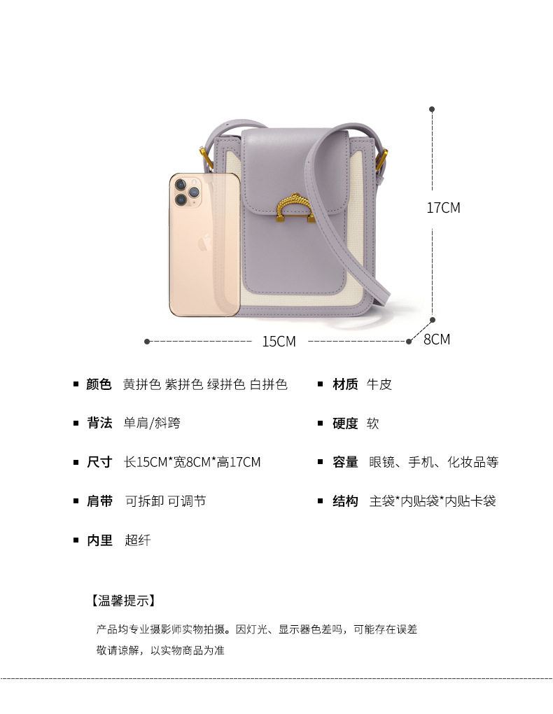 Chiếc túi điện thoại mới này có thiết kế ghép màu hiện đại, tạo điểm nhấn nổi bật. Phong cách đơn giản với những tông màu ngọt ngào, nhẹ nhàng. Dáng túi vuông nhỏ gọn, dễ dàng đeo chéo người hoặc khoác v một cách tiện lợi. Túi vừa vặn để đựng điện thoại, một ít thẻ và vật dụng cá nhân thiết yếu. Chỉ cần cho đồ dùng vào và kéo khóa lại là bạn đã có thể mang theo mọi lúc. | Tên sản phẩm: Túi Xách Nữ Hàng Mùa Xuân Thu Đông - Túi Ví Nữ | Mã sản phẩm: A7939 - Giá: 880.000đ | Mã nhà sản xuất: GUDEA-G03Hình ảnh sản phẩm