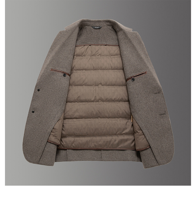 Áo khoác nam hai mặt với lòng áo bằng lông vũ có thể tháo rời. Chất liệu chính là dạ len ấm áp, phối hợp cùng lớp lót lông vũ dày dặn bên trong giúp giữ nhiệt tốt. Kiểu dáng kết hợp giữa đi làm và dạo phố, lịch sự nhưng vẫn thoải mái. Có thể mặc nguyên chiếc như áo khoặc tách rời hai lớp để phối đồ linh hoạt theo thời tiết. | Tên sản phẩm: Áo Vest Nam Vest Dày Ấm Hàng Mùa Xuân Thu Đông - Thời Trang Nam | Mã sản phẩm: A8075 - Giá: 2.870.000đ | Mã nhà sản xuất: WATYM-G06Hình ảnh sản phẩm