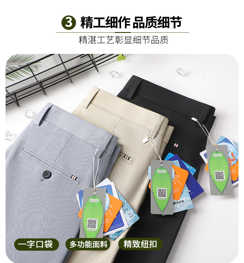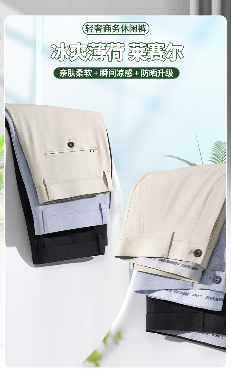 Chiếc quần tây dành cho nam giới này được dệt từ sợi mát lạnh, mang đến cảm giác mềm mại, thoáng khí và dễ chịu cho những ngày hè. Chất vải co giãn nhẹ tạo form dáng thẳng ôn vừa vặn, phù hợp cho công sở hay những dịp cần sự chỉn chu. Sản phẩm có khả năng chống nắng và hạn chế vi khuẩn. Bạn có thể giặt như quần áo thông thường và là ủi ở nhiệt độ phù hợp. | Tên sản phẩm: Quần Nam Dáng Ôm Hàng Mùa Hè - Thời Trang Nam | Mã sản phẩm: A8084 - Giá: 1.190.000đ | Mã nhà sản xuất: WATYM-G04Hình ảnh sản phẩm