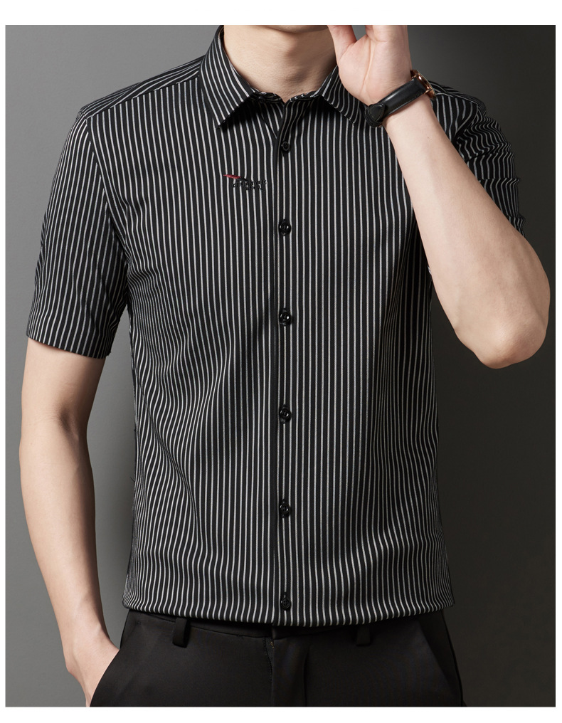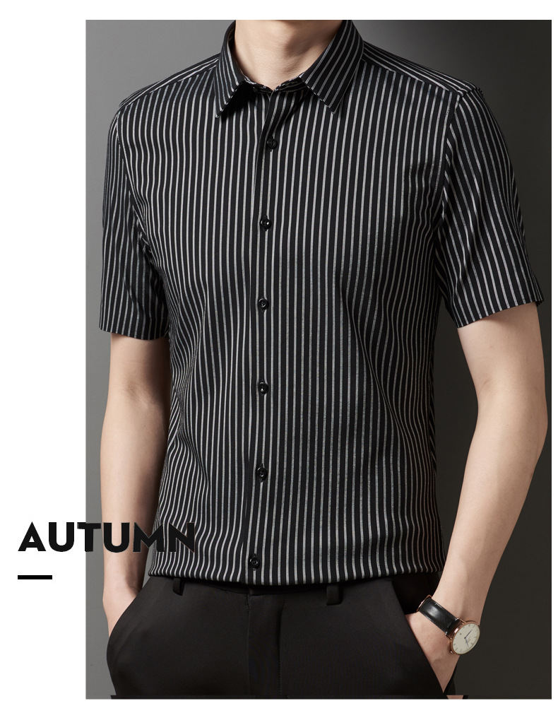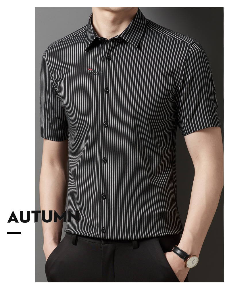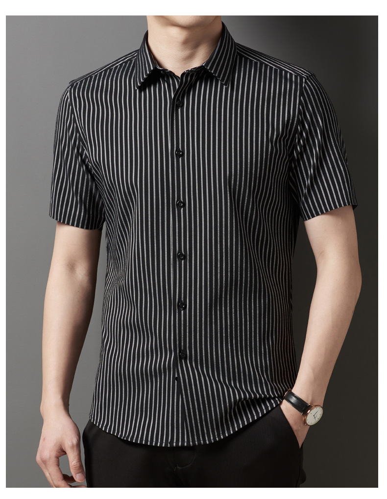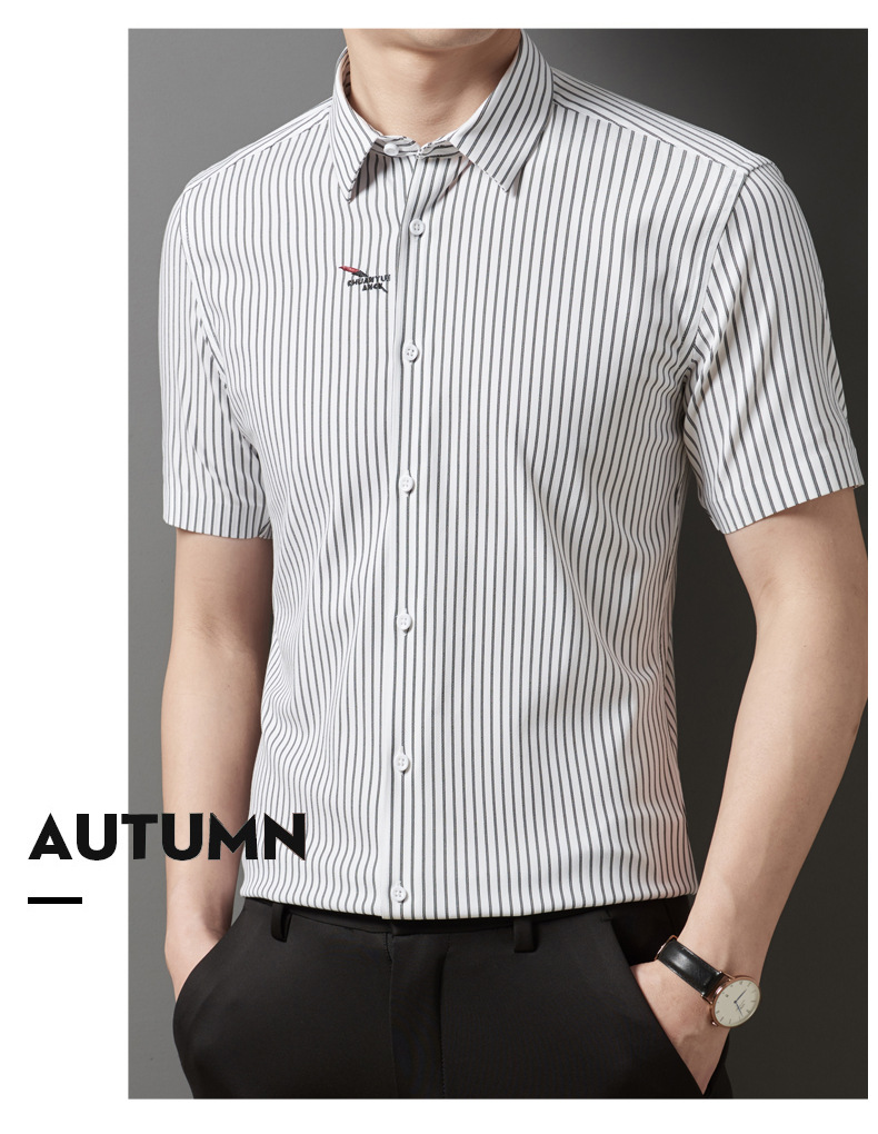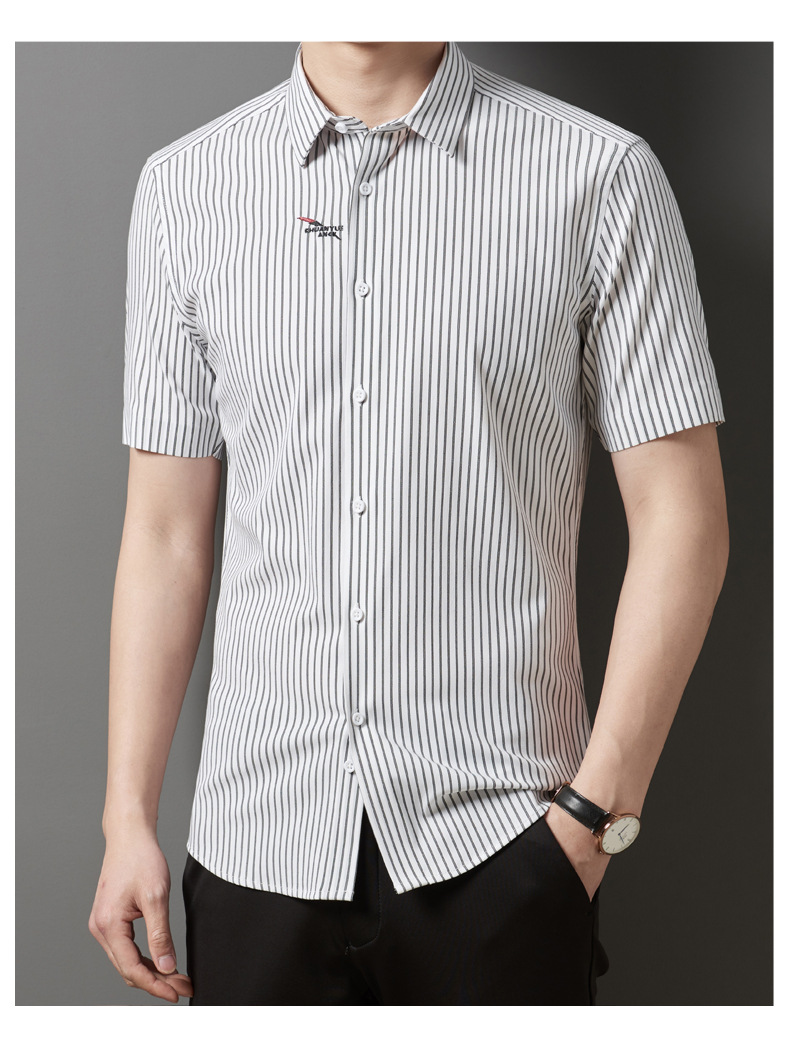 Áo sơ mi ngắn tay dành cho nam, kiểu dáng cổ bẻ với họa tiết sọc trên nền vải mềm mại. Sản phẩm được làm từ chất liệu thoáng mát, phù hợp cho mùa hè. Đường may được xử lý một cách tinh tế, tạo cảm giác liền mạch và thoải mái khi mặc. Bạn có thể dễ dàng phối cùng quần tây hoặc quần short để tạo phong cách thư giãn hàng ngày. | Tên sản phẩm: Áo Sơ Mi Nam Ngắn Tay Kín Cổ Hàng Mùa Hè - Thời Trang Nam | Mã sản phẩm: A8131 - Giá: 900.000đ | Mã nhà sản xuất: WATYM-G03Hình ảnh sản phẩm