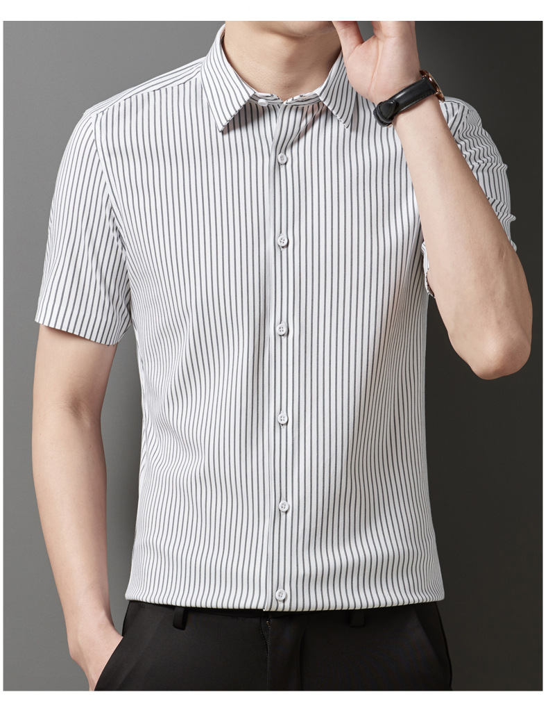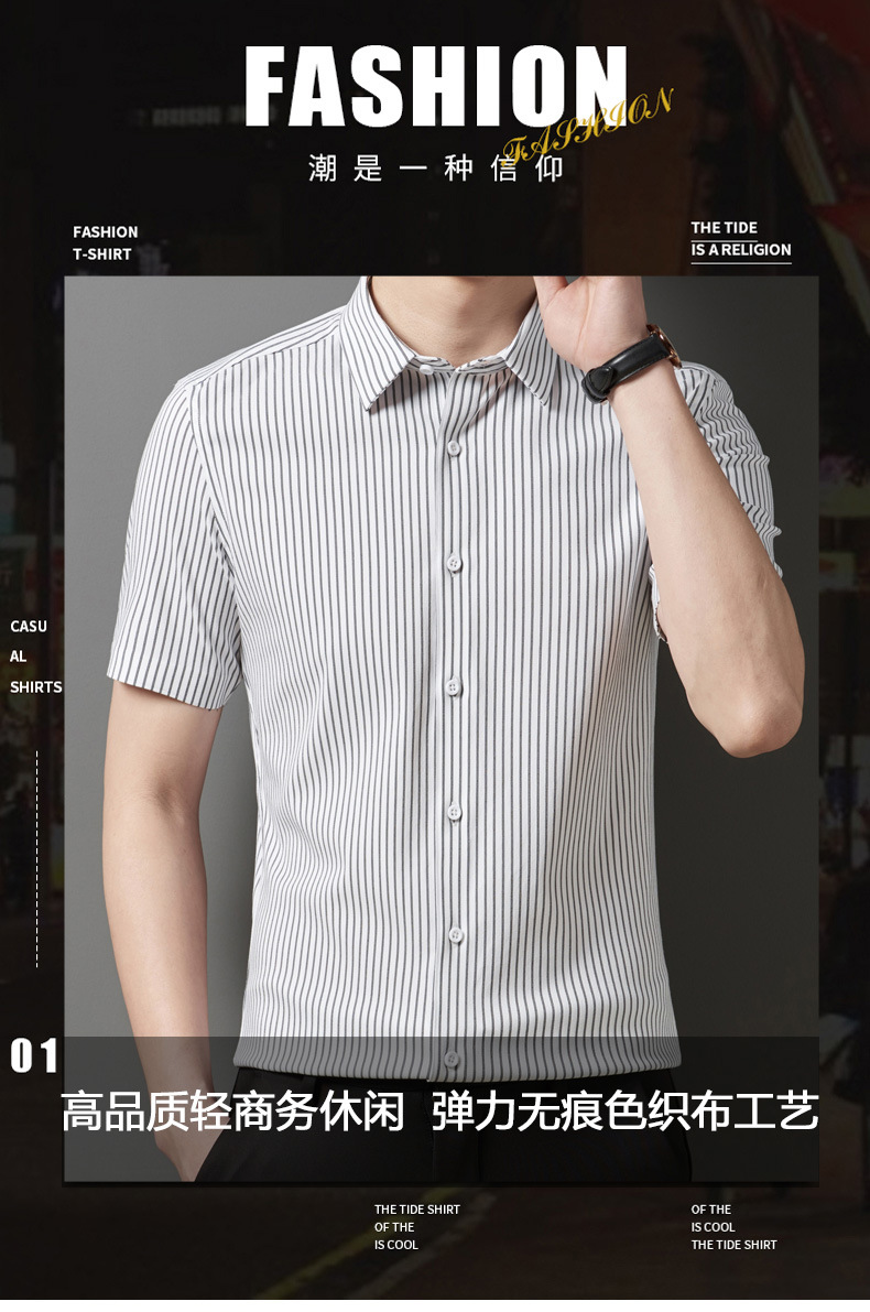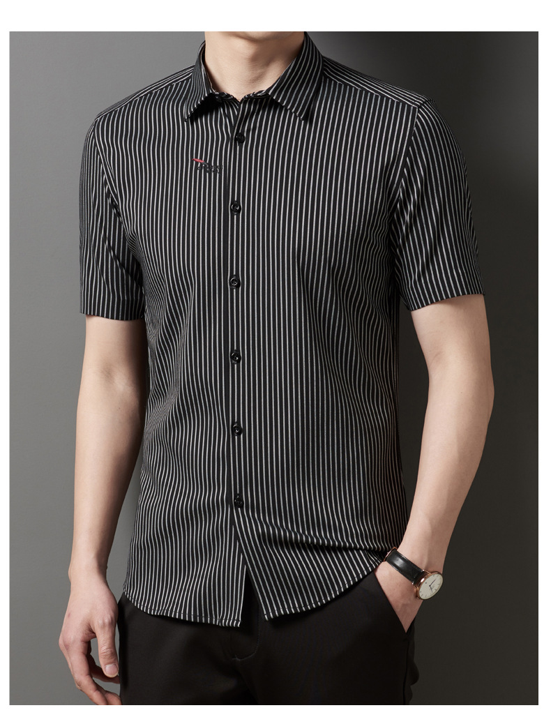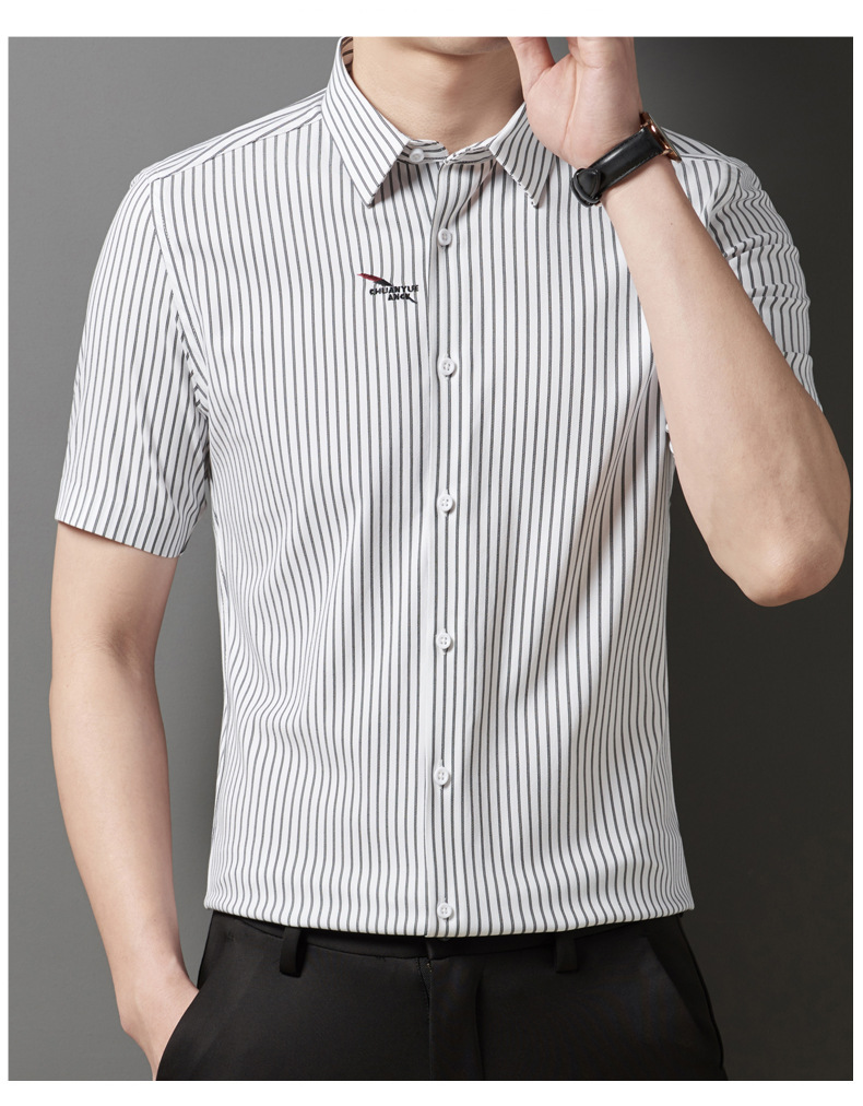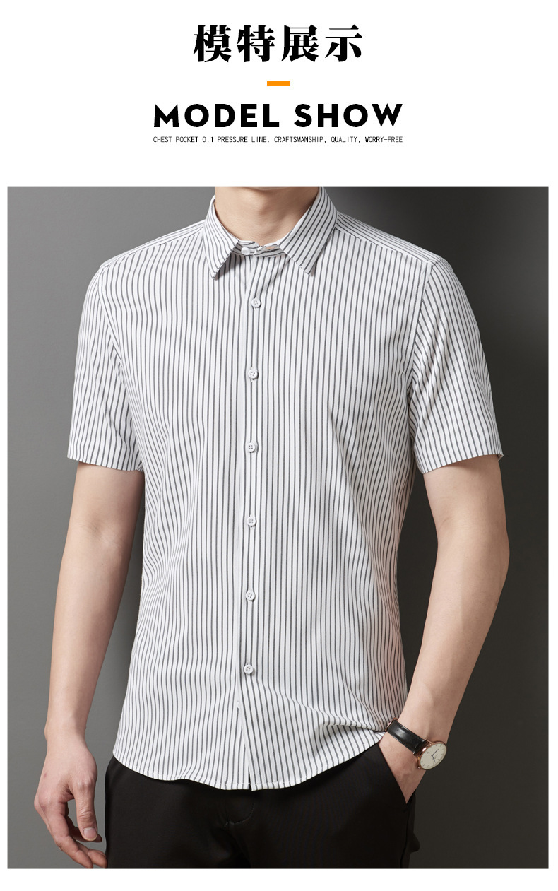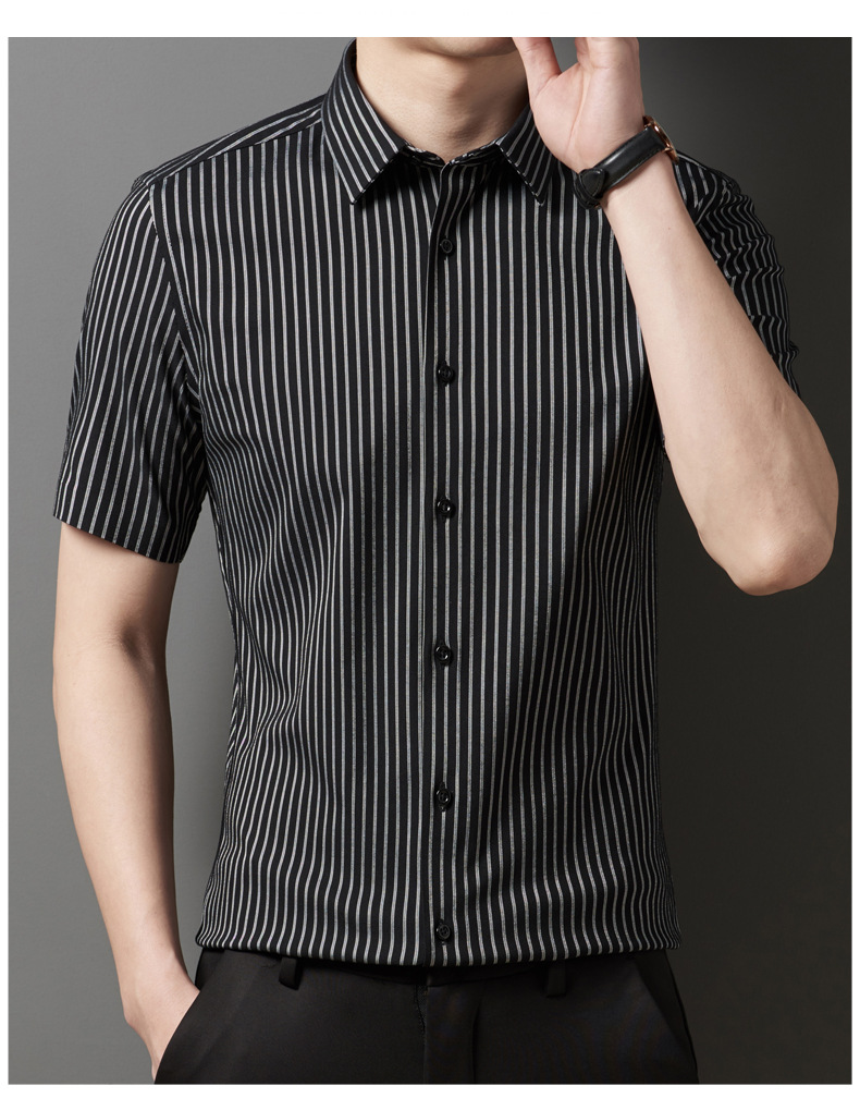 Áo sơ mi ngắn tay dành cho nam, kiểu dáng cổ bẻ với họa tiết sọc trên nền vải mềm mại. Sản phẩm được làm từ chất liệu thoáng mát, phù hợp cho mùa hè. Đường may được xử lý một cách tinh tế, tạo cảm giác liền mạch và thoải mái khi mặc. Bạn có thể dễ dàng phối cùng quần tây hoặc quần short để tạo phong cách thư giãn hàng ngày. | Tên sản phẩm: Áo Sơ Mi Nam Ngắn Tay Kín Cổ Hàng Mùa Hè - Thời Trang Nam | Mã sản phẩm: A8131 - Giá: 900.000đ | Mã nhà sản xuất: WATYM-G03Hình ảnh sản phẩm