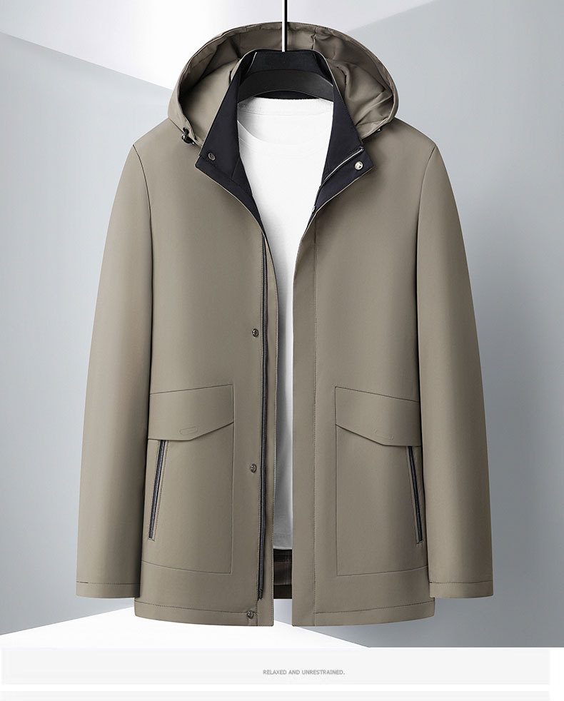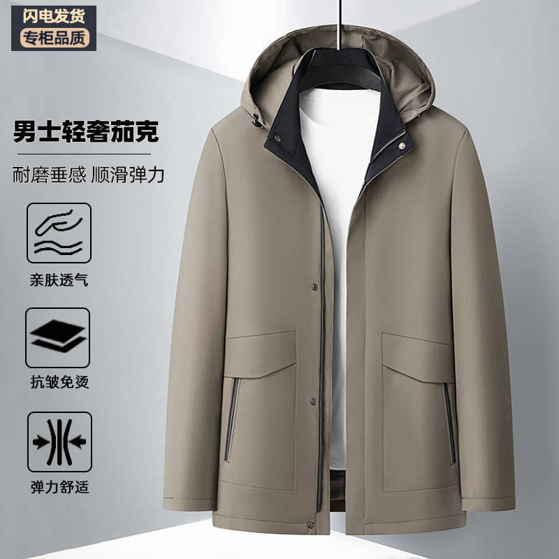 Áo khoác nhẹ dành cho nam, thiết kế dáng rộng rãi thoải mái, phù hợp cho các bậc cha, chú mặc trong tiết trời xuân và thu. Sản phẩm có mũ trùm đầu có thể tháo rời một cách tiện lợi. Kiểu dáng kết hợp giữa đi làm và đi chơi, dễ dàng phối cùng nhiều trang phục khác. Cách sử dụng đơn giản, mặc như các loại áo khoác thông thường, giúp giữ ấm và che nắng mưa nhẹ nhàng. | Tên sản phẩm: Áo Khoác Nam Hàng Mùa Xuân Thu Đông Trung Niên - Thời Trang Nam | Mã sản phẩm: A8148 - Giá: 1.380.000đ | Mã nhà sản xuất: WATYM-G04Hình ảnh sản phẩm