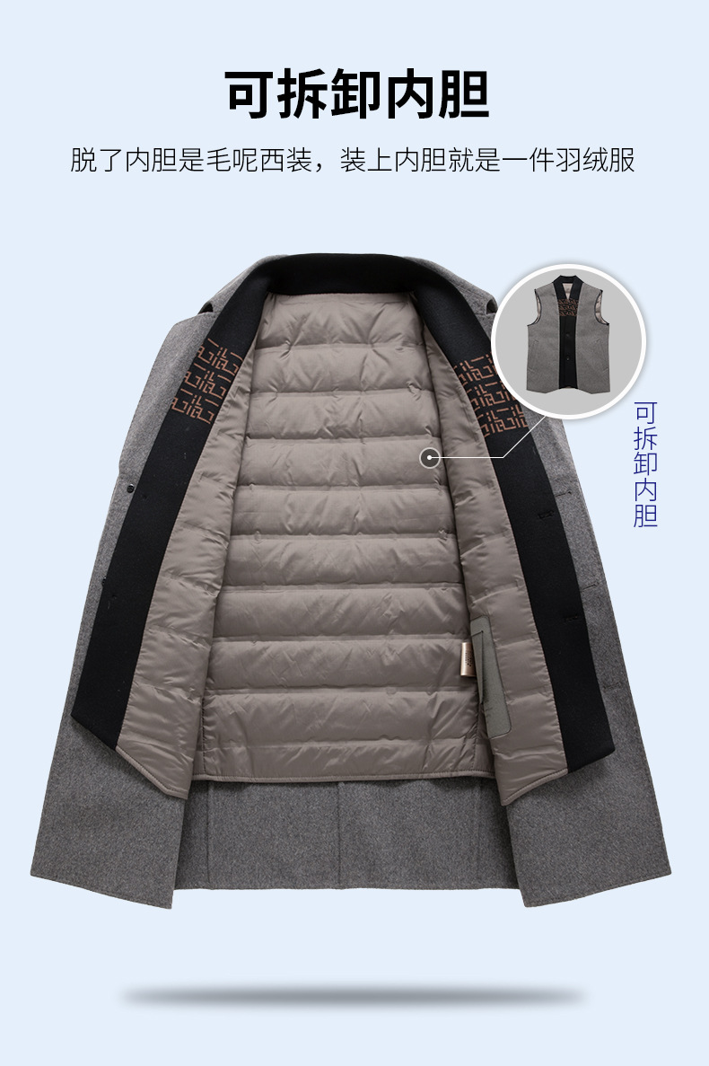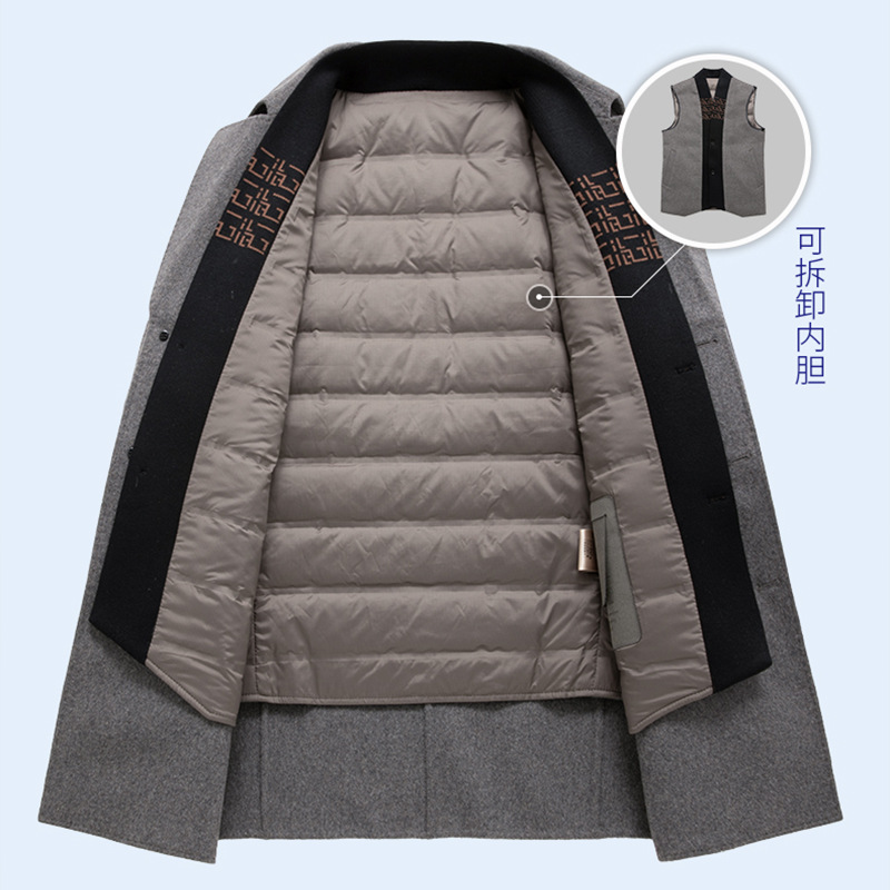 Áo khoác dành cho nam, kiểu dáng dài vừa phải, có hai lớp vải len ấm áp. Đặc biệt, phần áo lót bên trong có thể tháo rời dễ dàng, giúp mặc được nhiều dịp khác nhau. Kiểu áo này phù hợp với dáng người trung niên, mang phong cách thoải mái cho những lúc đi làm hoặc sinh hoạt hằng ngày. Chỉ cần mặc như áo khoác thông thường, lớp lót bên trong giúp giữ nhiệt tốt khi trời lạnh. | Tên sản phẩm: Áo Khoác Nam Dày Ấm Trung Niên - Thời Trang Nam | Mã sản phẩm: A8182 - Giá: 3.520.000đ | Mã nhà sản xuất: WATYM-G06Hình ảnh sản phẩm