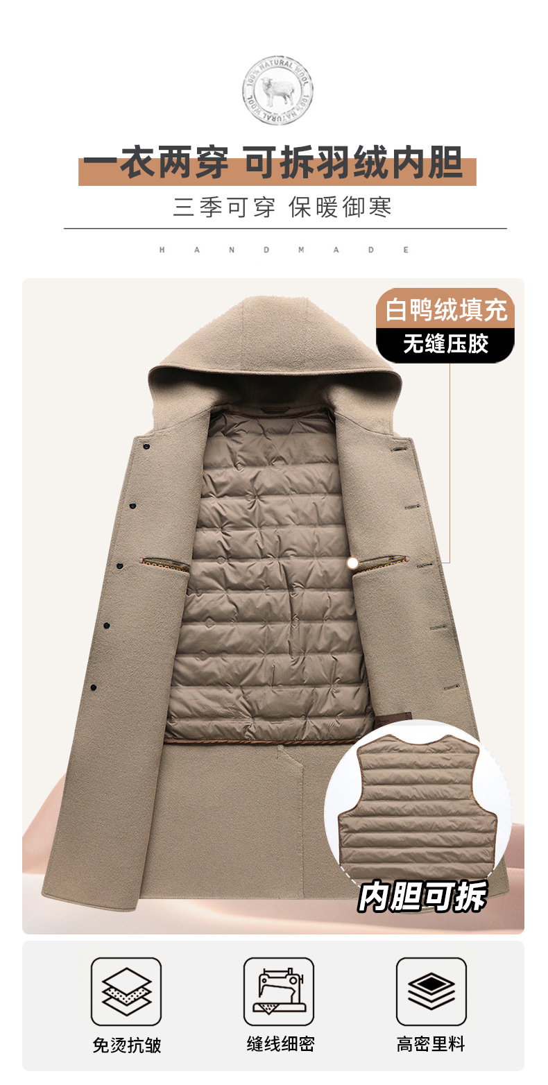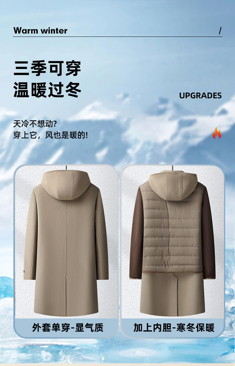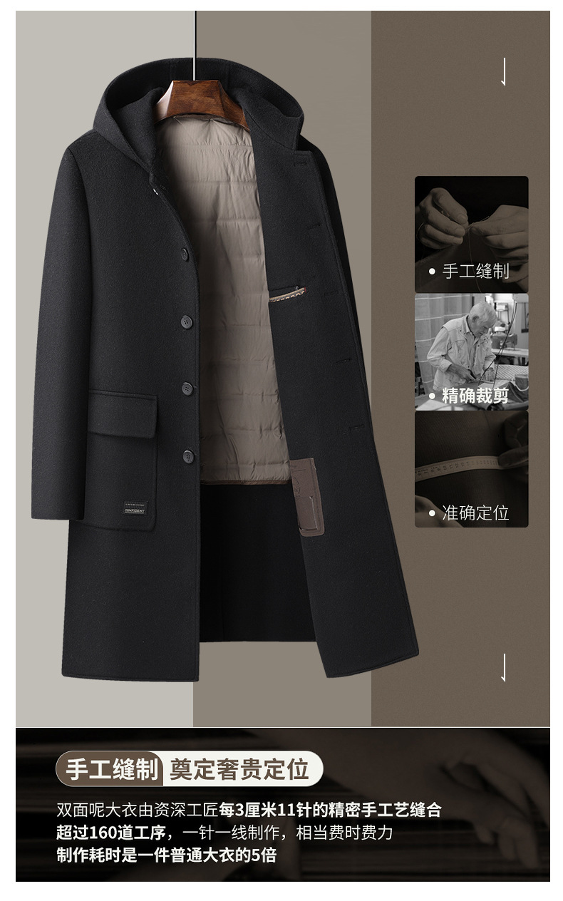 Áo khoác dài hai mặt có mũ dành cho mùa thu đông, được làm hoàn toàn từ chất liệu len tự nhiên. Bên trong áo có lớp áo lót bằng lông vũ giúp giữ ấm hiệu quả. Kiểu dáng dáng dài phù hợp mặc ngoài cùng, vừa tạo dáng thanh lịch vừa chắn gió tốt. Sản phẩm có thể mặc hai mặt linh hoạt, dễ dàng phối với nhiều trang phục khác nhau. Chỉ cần khoác ngoài như các loại áo khoác thông thường là đã có ngay vẻ ngoài chỉn chu. | Tên sản phẩm: Áo Gió Nam Mũ Liền Hàng Mùa Xuân Thu Đông - Thời Trang Nam | Mã sản phẩm: A8213 - Giá: 3.500.000đ | Mã nhà sản xuất: SUDIN-G06Hình ảnh sản phẩm