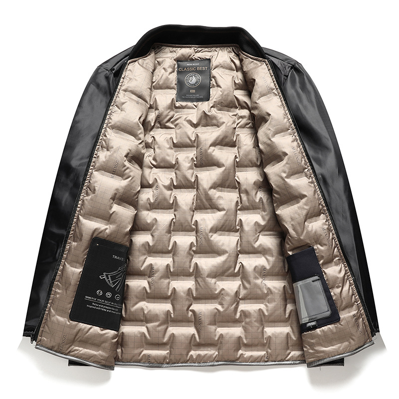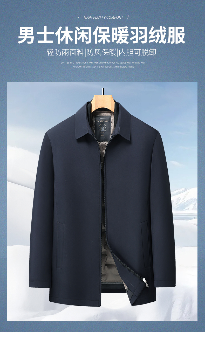 Áo khoác dành cho nam, kiểu dáng công sở lịch sự, phù hợp cho mùa thu đông. Đặc điểm nổi bật là lớp áo lót bên trong có thể tháo rời một cách dễ dàng. Áo được lấp đầy bằng chất liệu lông vũ tự nhiên của loài vịt, đạt chuẩn chất lượng mới, giữ ấm hiệu quả. Bề mặt áo làm từ loại vải mềm mại như lụa, mang lại cảm giác dễ chịu khi mặc. Có thể kết hợp mặc nguyên chiếc hoặc chỉ dùng lớp áo ngoài tùy theo thời tiết. | Tên sản phẩm: Áo Khoác Nam Hàng Mùa Xuân Thu Đông Trung Niên - Thời Trang Nam | Mã sản phẩm: A8225 - Giá: 2.020.000đ | Mã nhà sản xuất: SUDIN-G05Hình ảnh sản phẩm