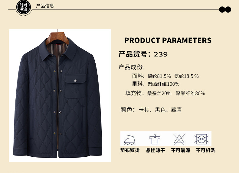Áo khoác mùa lạnh dành cho nam, được làm từ chất liệu mềm mại và ấm áp, kết hợp giữa sợi tự nhiên và sợi tổng hợp nhẹ. Kiểu dáng trẻ trung, năng động, phù hợp cho nhiều dịp mặc thường ngày. Sản phẩm có khả năng giữ nhiệt tốt, mang lại cảm giác dễ chịu khi mặc. Bạn có thể mặc trực tiếp bên ngoài áo thun hoặc áo len trong những ngày tiết trời se lạnh. | Tên sản phẩm: Áo Khoác Dày Nam Chất Liệu Lụa Tơ Tằm Hàng Mùa Xuân Thu Đông Trung Niên - Thời Trang Nam | Mã sản phẩm: A8244 - Giá: 1.440.000đ | Mã nhà sản xuất: SUDIN-G04Hình ảnh sản phẩm