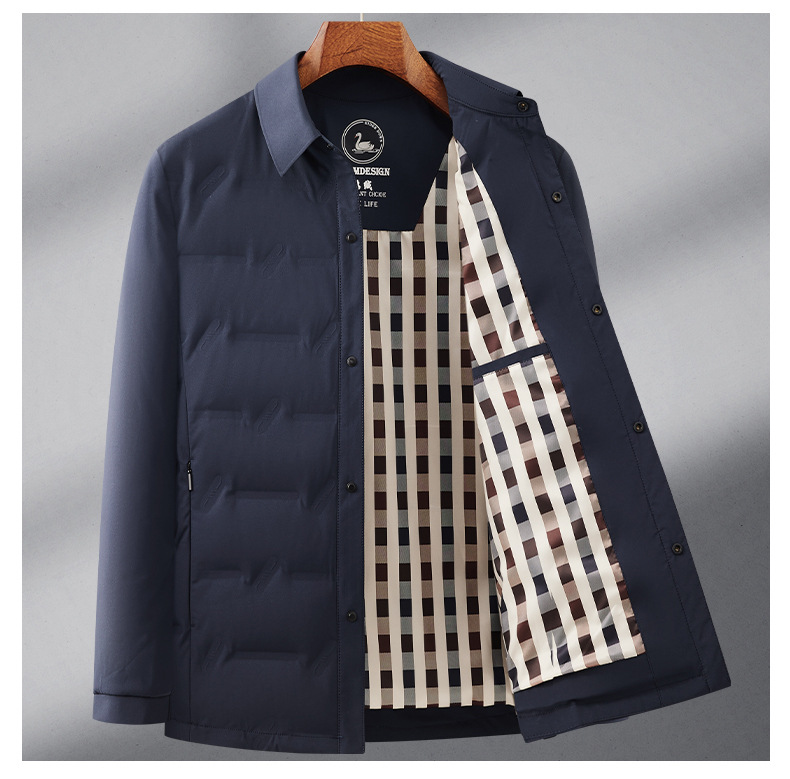 Áo khoác dành cho nam, có lớp lông vũ nhẹ, phù hợp cho thời tiết se lạnh của mùa thu và đông. Kiểu dáng kết hợp giữa đi làm và dạo phố, lịch sự nhưng vẫn thoải mái. Sản phẩm giữ ấm tốt nhờ lớp lông vũ bên trong. Có thể mặc trực tiếp hoặc phối cùng áo thun, áo len bên trong. Dễ dàng phối đồ với quần âu hoặc quần jeans để tạo nên vẻ ngoài chỉn chu. | Tên sản phẩm: Áo Khoác Nam Hàng Mùa Xuân Thu Đông Trung Niên - Thời Trang Nam | Mã sản phẩm: A8298 - Giá: 1.490.000đ | Mã nhà sản xuất: SUDIN-G04Hình ảnh sản phẩm