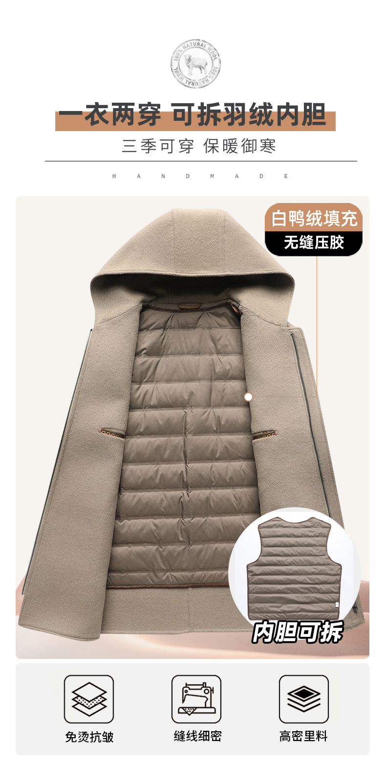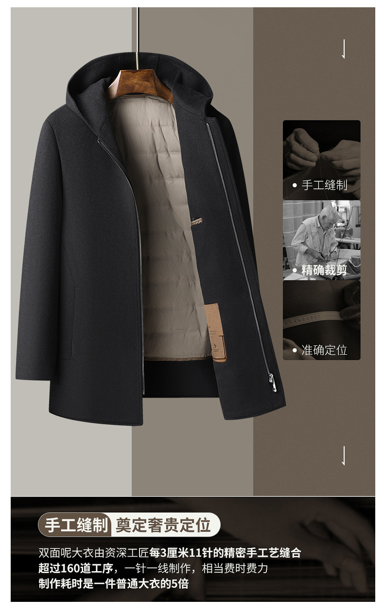 Áo khoác nam dáng dài có mũ, thiết kế hai mặt đều có thể mặc được, rất tiện lợi. Bên trong được lót bằng lớp lông vũ trắng của vịt, giữ ấm tốt cho những ngày thu đông. Chất liệu chính từ sợi lông cừu tự nhiên, mang lại cảm giác mềm mại và ấm áp. Bạn có thể phối cùng áo thun và quần jeans để tạo vẻ ngoài năng động, hoặc mặc với áo len và quần âu cho những dịp cần chỉn chu hơn. | Tên sản phẩm: Áo Gió Nam Mũ Liền Hàng Mùa Xuân Thu Đông - Thời Trang Nam | Mã sản phẩm: A8333 - Giá: 3.400.000đ | Mã nhà sản xuất: SUDIN-G06Hình ảnh sản phẩm