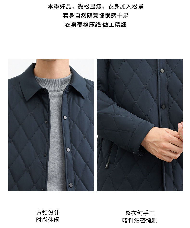 Áo khoác giữ ấm dáng dài cho nam, có cổ bẻ, phù hợp cho các bố và các anh trung niên. Sản phẩm được làm từ chất liệu bông kết hợp tơ tằm tự nhiên, mang lại cảm giác mềm mại, ấm áp và thoáng khí. Kiểu dáng thời trang, dễ mặc cho các sinh hoạt hằng ngày. Có thể kết hợp cùng quần âu hoặc quần jeans để tạo vẻ lịch sự và thoải mái. Giữ ấm tốt cho những ngày thu đông se lạnh. | Tên sản phẩm: Áo Khoác Dày Nam Chất Liệu Lụa Tơ Tằm Kín Cổ Hàng Mùa Xuân Thu Đông Trung Niên - Thời Trang Nam | Mã sản phẩm: A8337 - Giá: 1.620.000đ | Mã nhà sản xuất: SUDIN-G05Hình ảnh sản phẩm