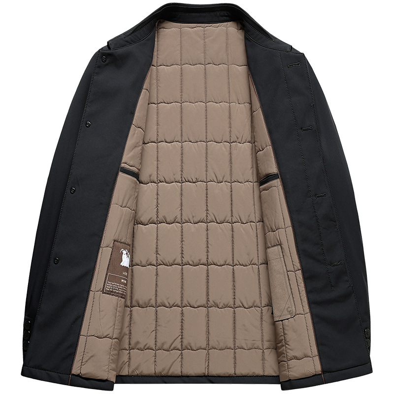 Áo khoác mùa lạnh dành cho nam, có cổ bẻ tạo phong cách làm việc nhã nhặn. Sản phẩm được làm từ chất liệu giữ ấm tốt, phù hợp mặc trong tiết trời thu đông. Kiểu dáng thoải mái, dễ kết hợp với nhiều loại trang phục khác nhau. Có thể mặc trực tiếp hoặc phối cùng áo thun bên trong. Sản phẩm thích hợp cho các hoạt động thường ngày, đi làm hoặc dạo phố. | Tên sản phẩm: Áo Khoác Dày Nam Chất Liệu Vải Bông Kín Cổ Hàng Mùa Xuân Thu Đông Trung Niên - Thời Trang Nam | Mã sản phẩm: A8361 - Giá: 1.240.000đ | Mã nhà sản xuất: SUDIN-G04Hình ảnh sản phẩm