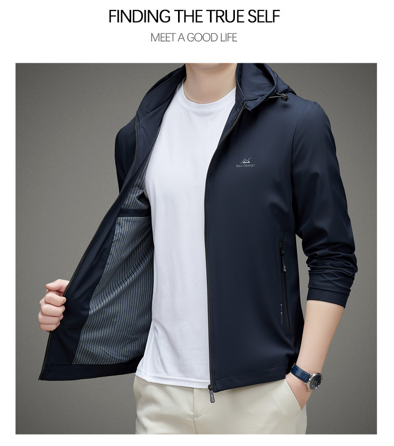 Áo khoác nam có mũ dành cho tiết trời mùa xuân và thu. Kiểu dáng thể thao năng động với thiết kế màu trơn dễ dàng phối cùng nhiều trang phục. Chất liệu nhẹ nhàng, thoáng mát, mang lại sự thoải mái khi mặc trong những ngày se lạnh. Sản phẩm có túi phía trước tiện lợi và dây kéo chắc chắn. Có thể mặc làm áo khoác đi làm, đi chơi hay tập thể dục hằng ngày. | Tên sản phẩm: Áo Khoác Nam Mũ Liền Hàng Mùa Xuân Thu Đông - Thời Trang Nam | Mã sản phẩm: A8394 - Giá: 1.070.000đ | Mã nhà sản xuất: SUDIN-G03Hình ảnh sản phẩm