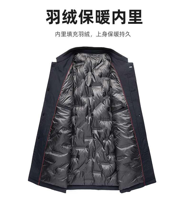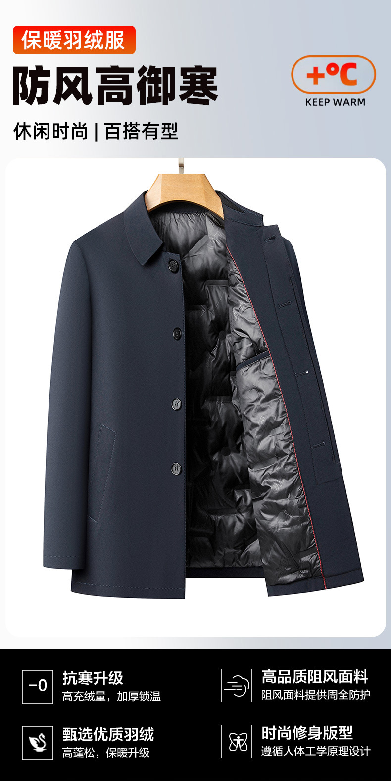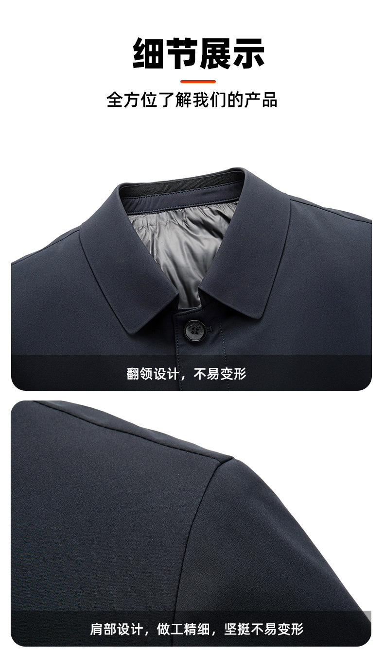 Áo khoác dáng dài dành cho nam, có cổ bẻ, kiểu dáng đơn giản và thoải mái. Sản phẩm sử dụng chất liệu lông vũ nhẹ, giữ ấm tốt mà không gây cảm giác nặng nề. Thiết kế phù hợp cho công việc và cả những lúc thư giãn. Bạn có thể mặc trực tiếp bên ngoài áo thun hoặc áo sơ mi, phối cùng quần âu hoặc quần kaki trong những ngày thu đông. | Tên sản phẩm: Áo Khoác Nam Kín Cổ Hàng Mùa Xuân Thu Đông - Thời Trang Nam | Mã sản phẩm: A8414 - Giá: 1.640.000đ | Mã nhà sản xuất: SUDIN-G05Hình ảnh sản phẩm